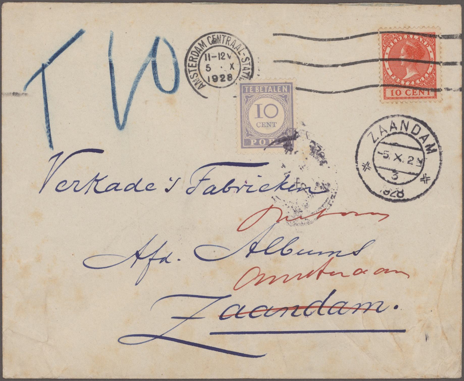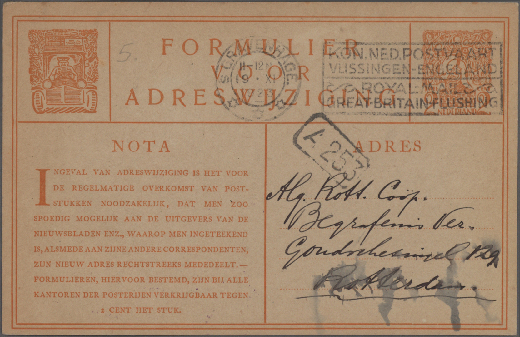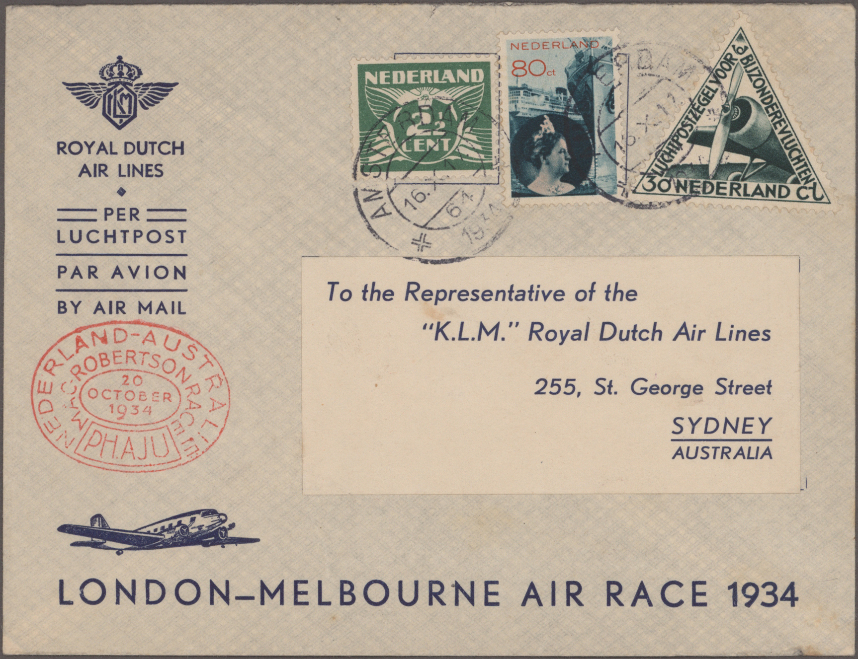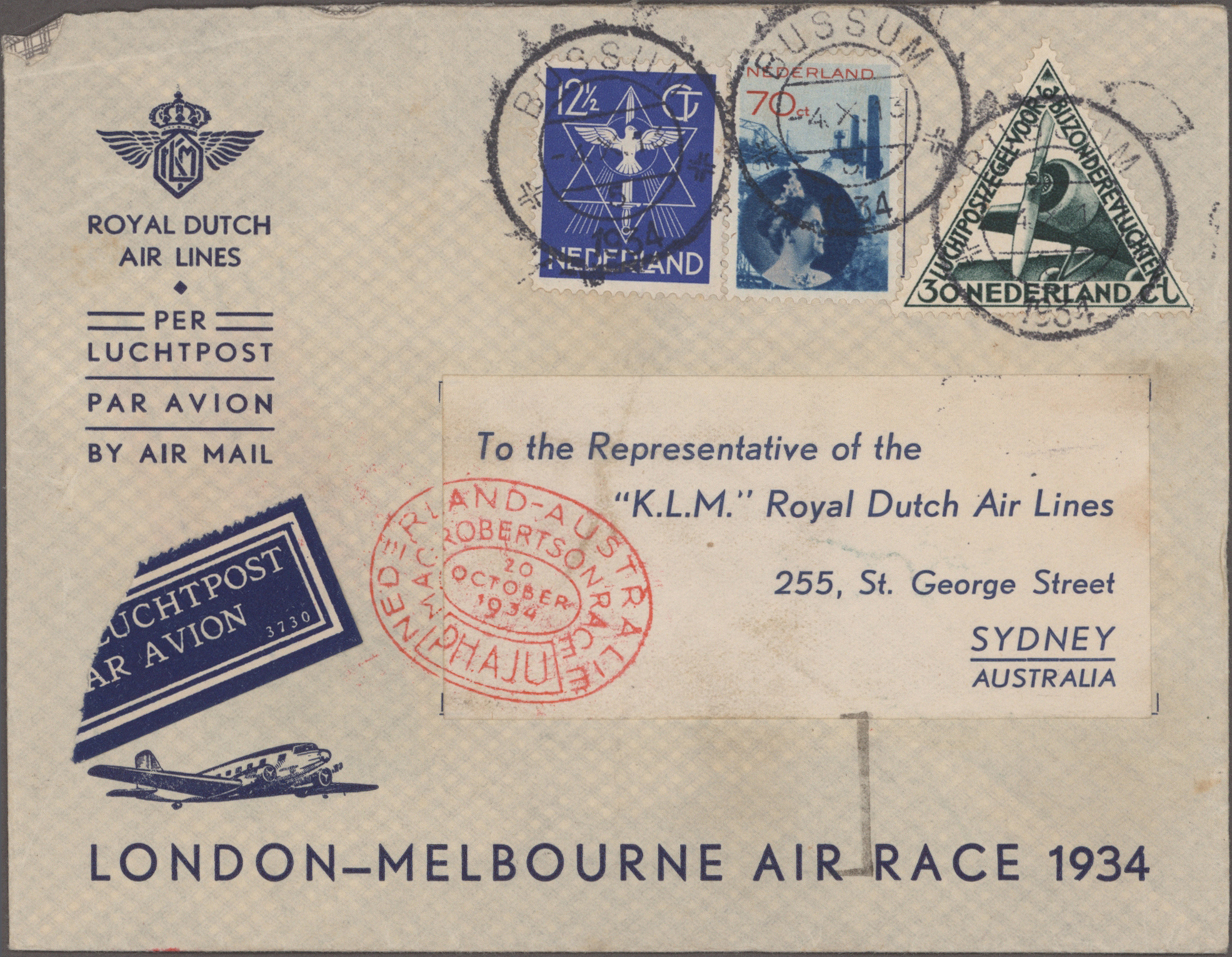 1929/1930, CONFÉRENCE DE LA HAYE 1929 and CONFÉRENCE DE LA HAYE 1929-1930, two different commemorative circular date stamps on ttl 3 service letters and one picture card with certain range of Wilhelmina definitives and Voor het kind semi-postals, despatched by various members of the British and French delegations with proper cachets BRITISH DELEGATION THE HAGUE (Den Haag) resp. DÉLÉGATION FRANCAISE to UK, France, Belgium and domestical. Scarce items.