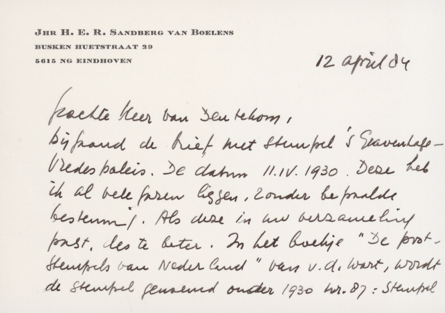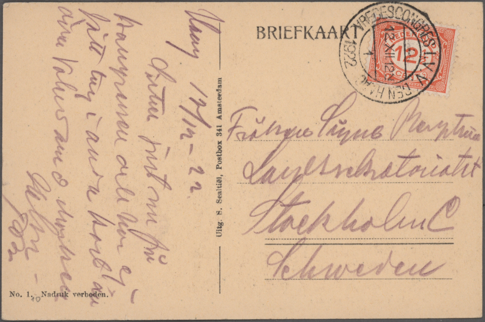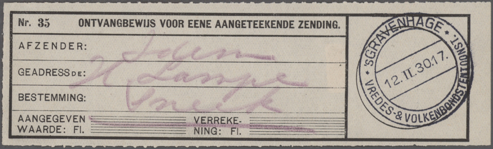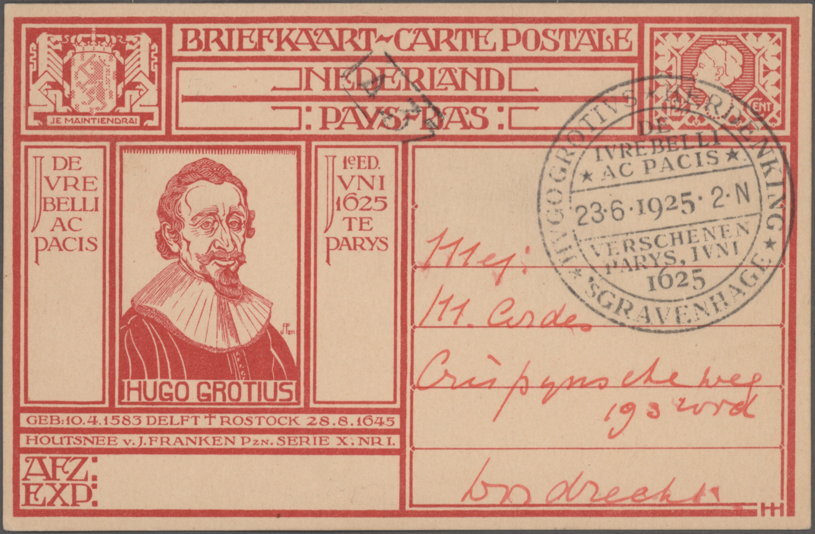 1922-1950, Völkerbund / Société des Nations / League of Nations: Topical collection of Dutch commemorative cancel 's-Gravenhage VREDENSPALEIS, dto. GRAVELIJKE ZALE and dto. HUGO GROTIUS on letters and post cards, majority of which sent "on service"/ commercially used from The Hague (Den Haag), some letters with pre-printed sender's address "SOCIETE DES NATIONS" or "Cour permanente de justice internationale / Permanent court of international justice". Throughout items hard to find, scarce.