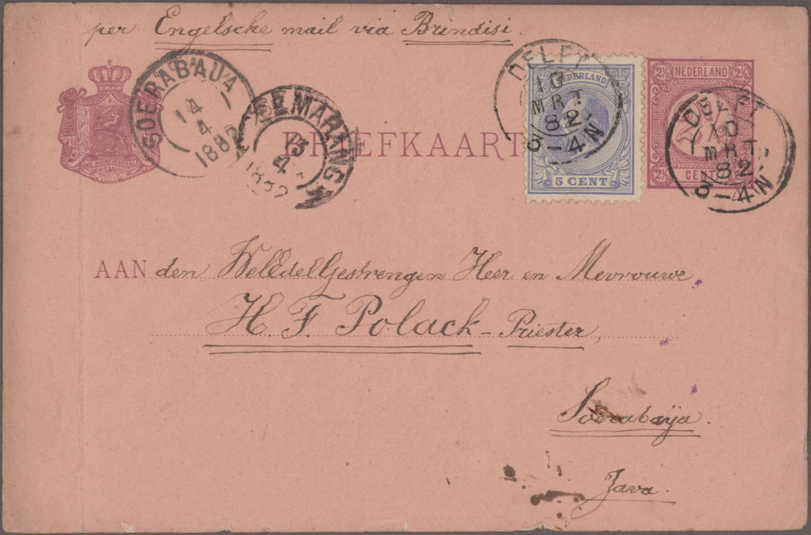 1877/1957, Netherlands/colonies, holding of apprx. 140 covers/cards/stationeries/ppc with plenty of interesting material, some better f.d.c., nice section advertisement covers/cards, good part airmails incl. special flights etc. Nice lot of postal history!