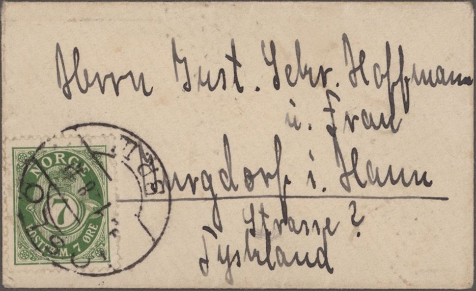 1907/1911, assortment of seven covers/cards bearing frankings of 1907+1910 issues, incl. four ppc, and 1910 1per. brown-carmine single franking on registered cover.