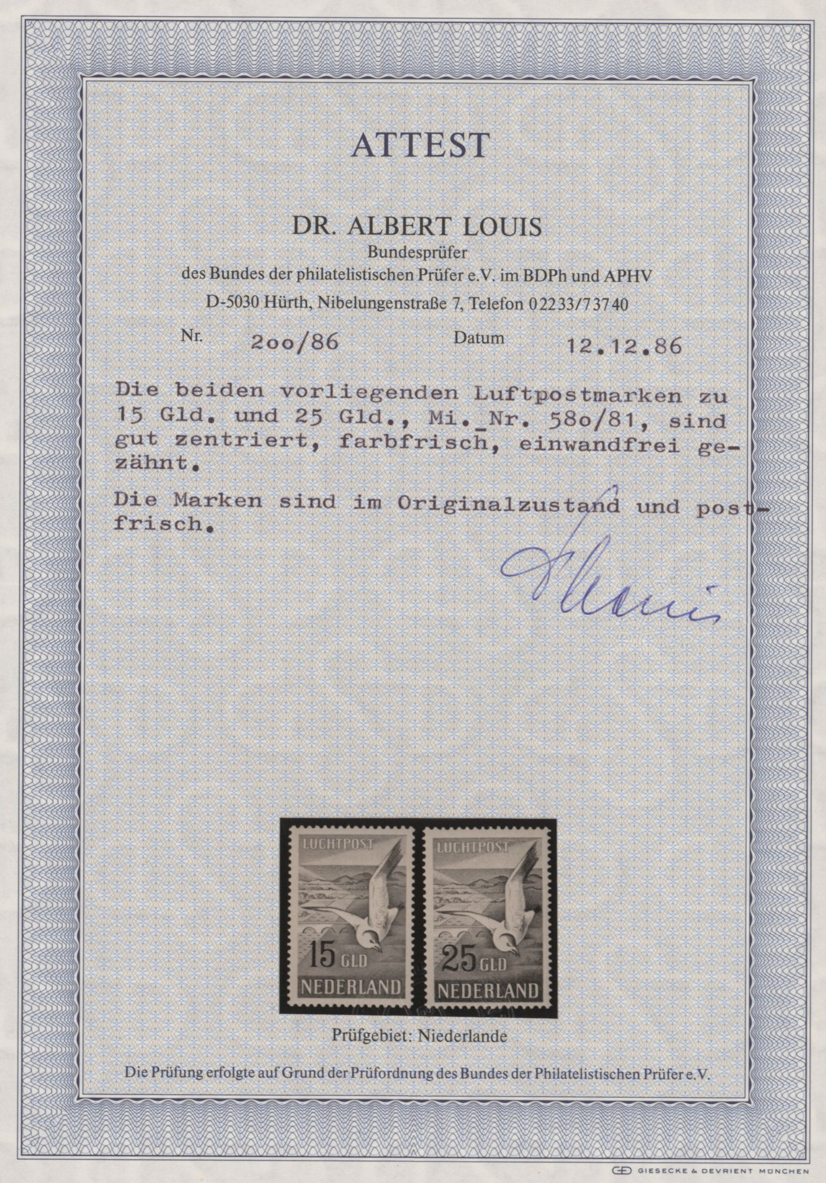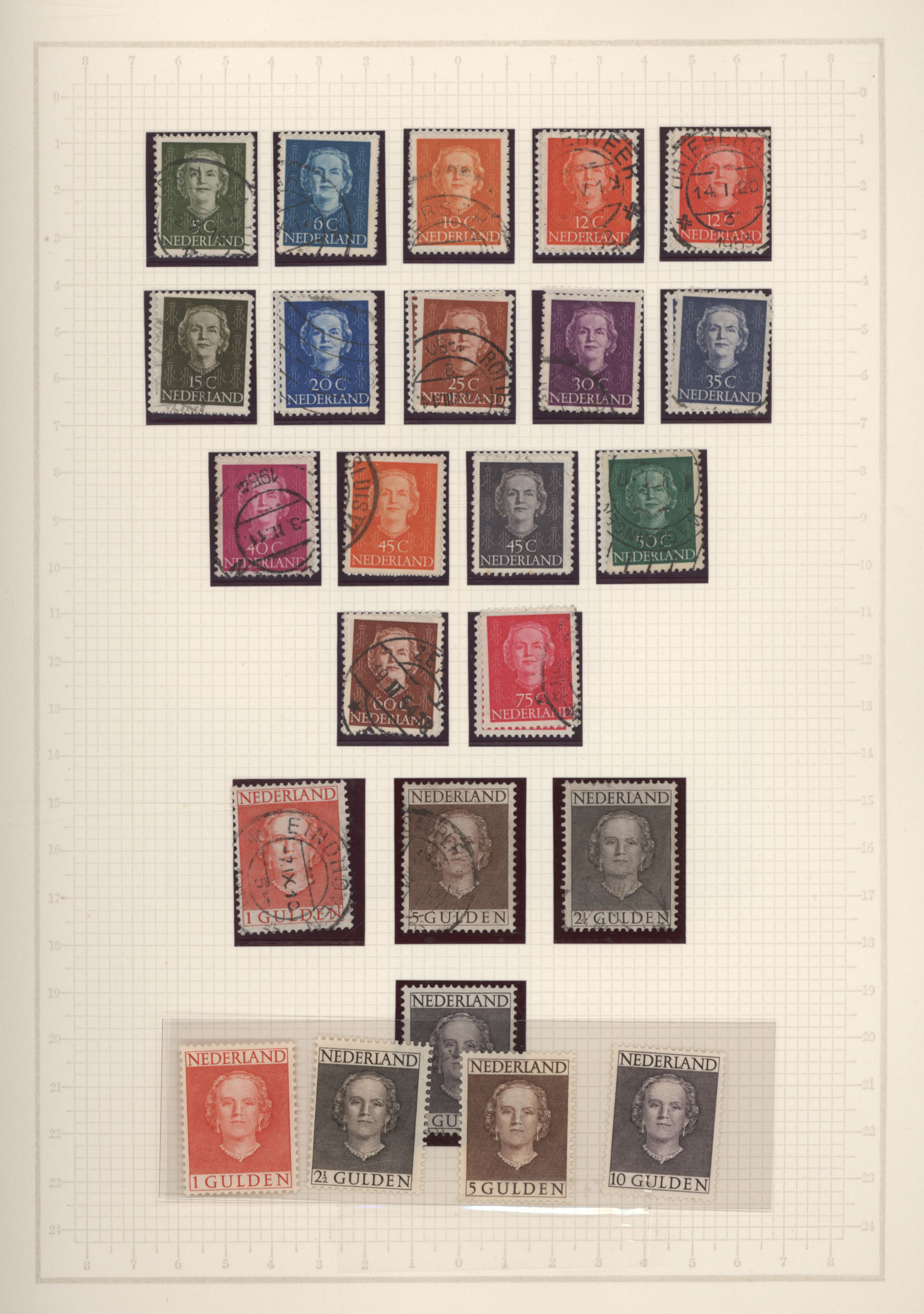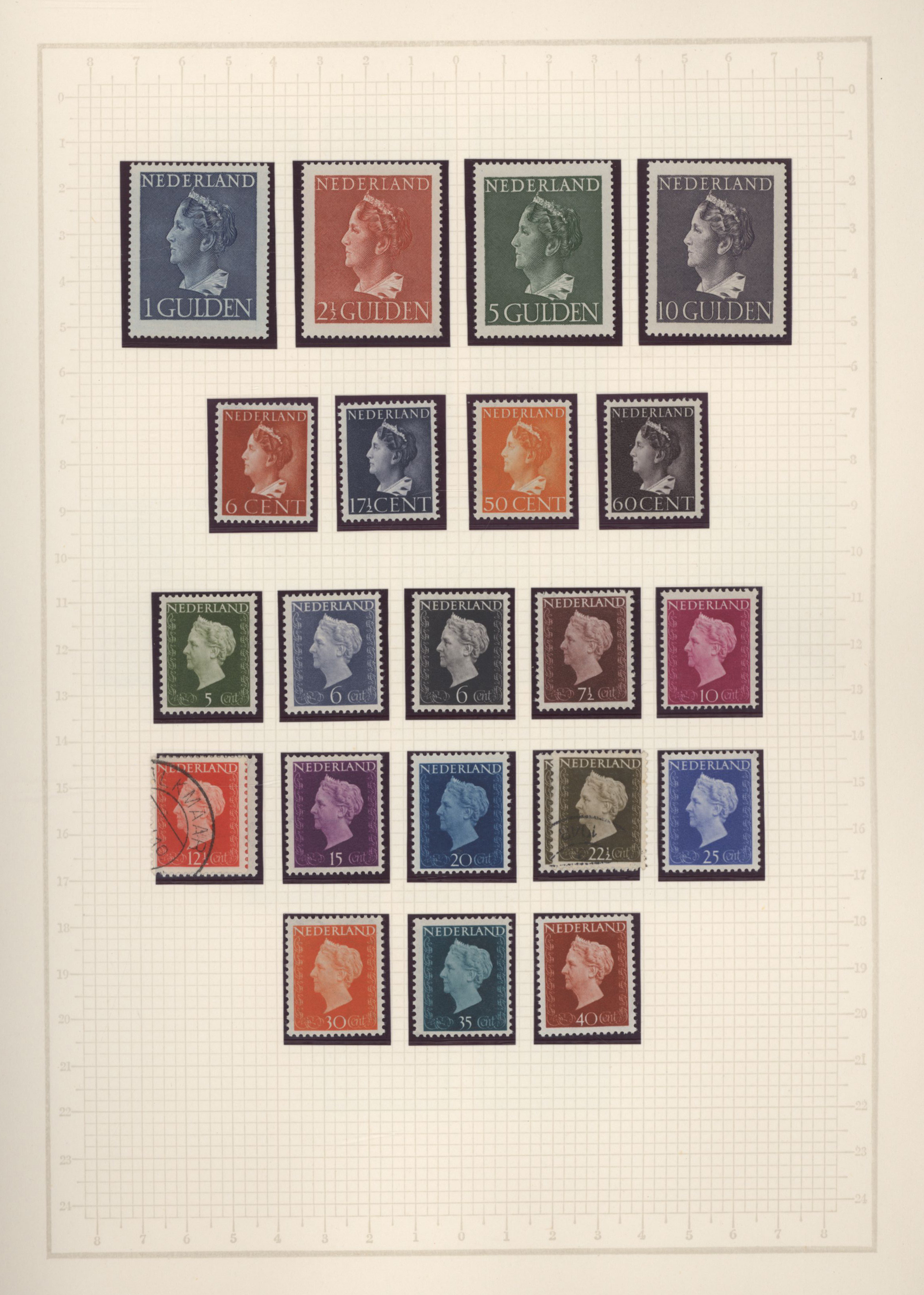 1945-2000, nice collection in mint never hinged condition on album pages including high values 1-10 hfl Wilhelmina definitives, 15 and 25 hfl Air Mails and 1-10 hfl Juliana definitives, all in perfect MNH state accompanied with certificates by BPP expert Dr. Albert Louis (1987, 1996). Also containing miniature sheets, se-tenants and stamps booklets (some portion of which however in CTO condition).