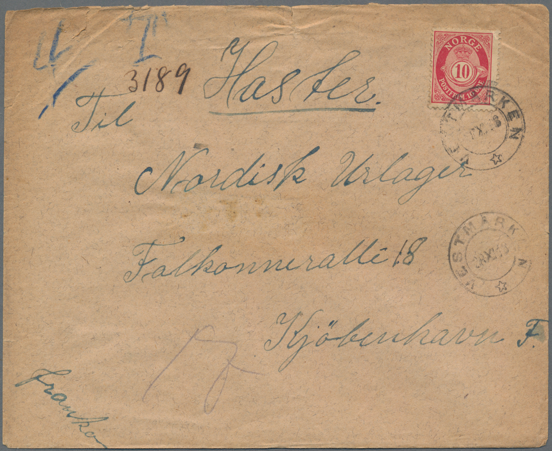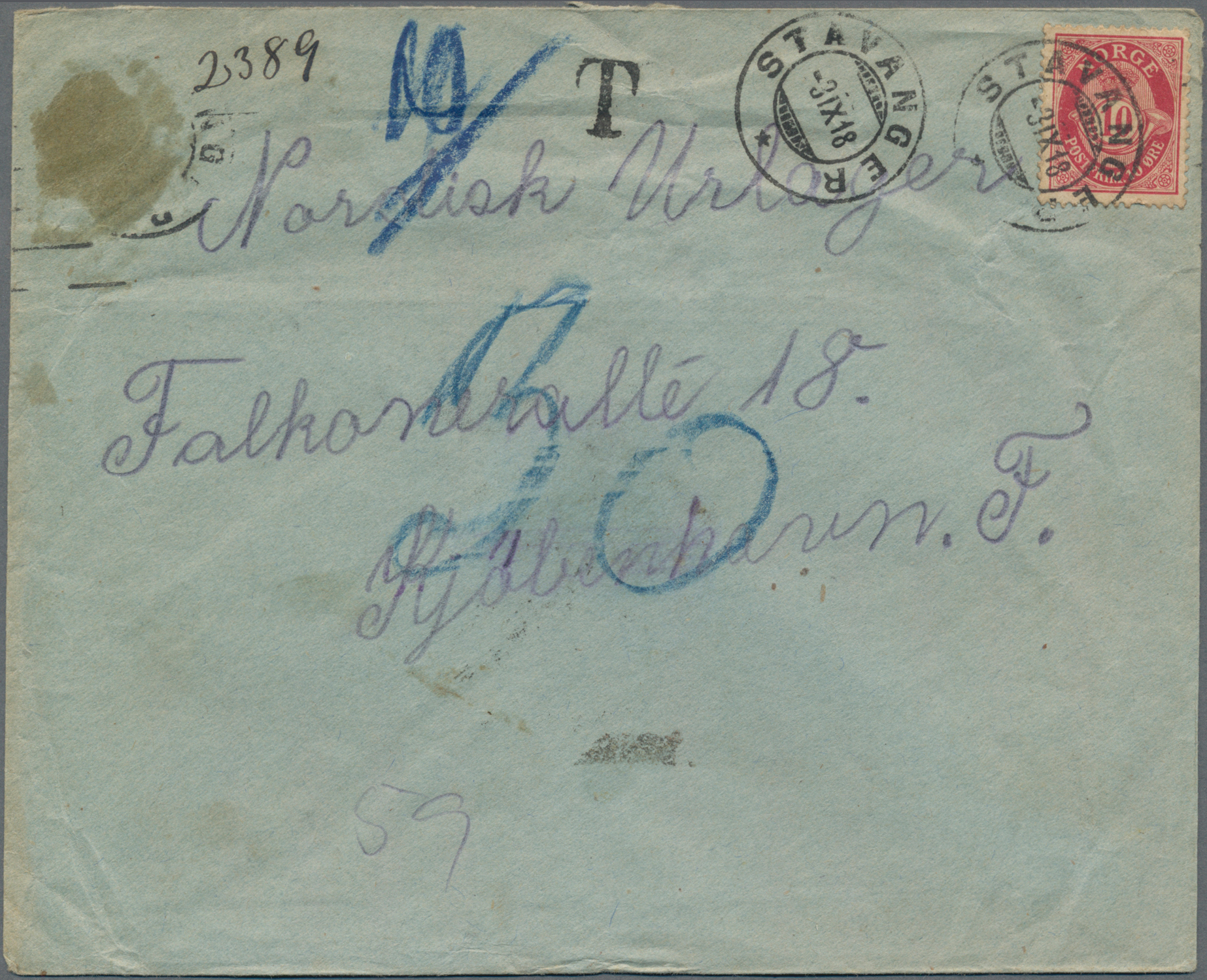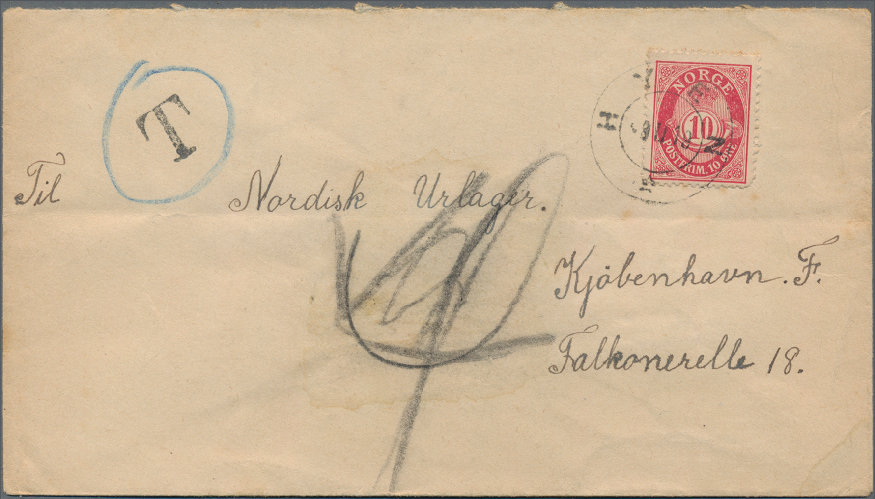 1915/1920, lot of 16 commercial covers to Denmark incl. insufficiently paid with "T" markings. Interesting postal history lot of "12ö. special rate" period!