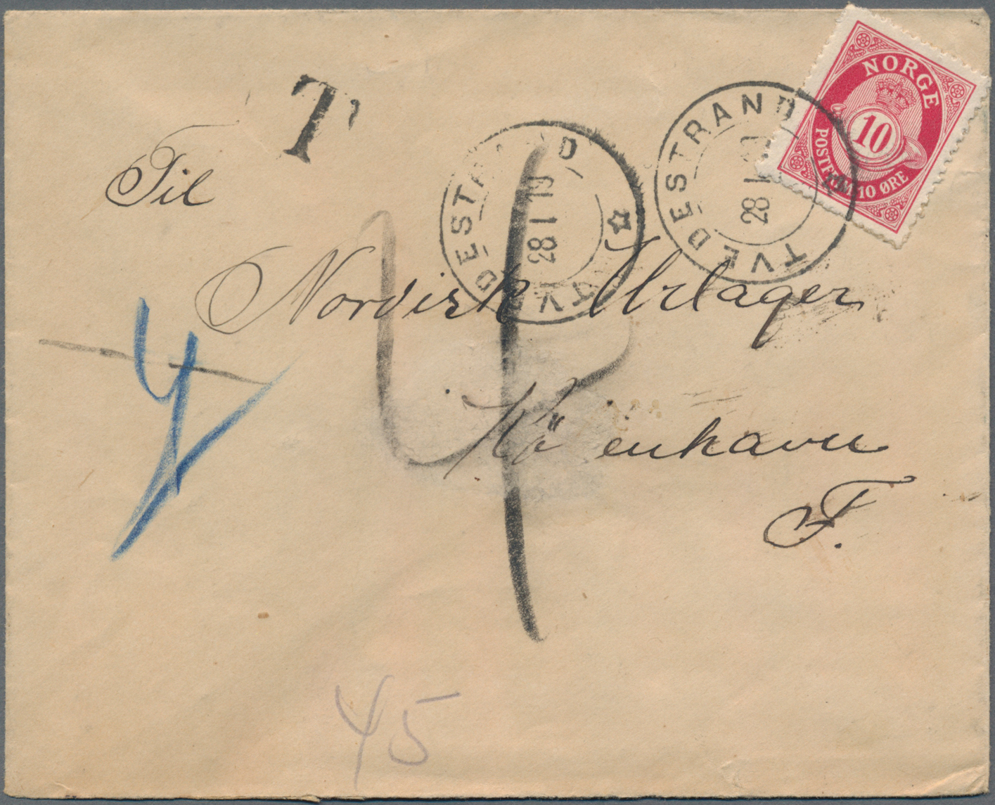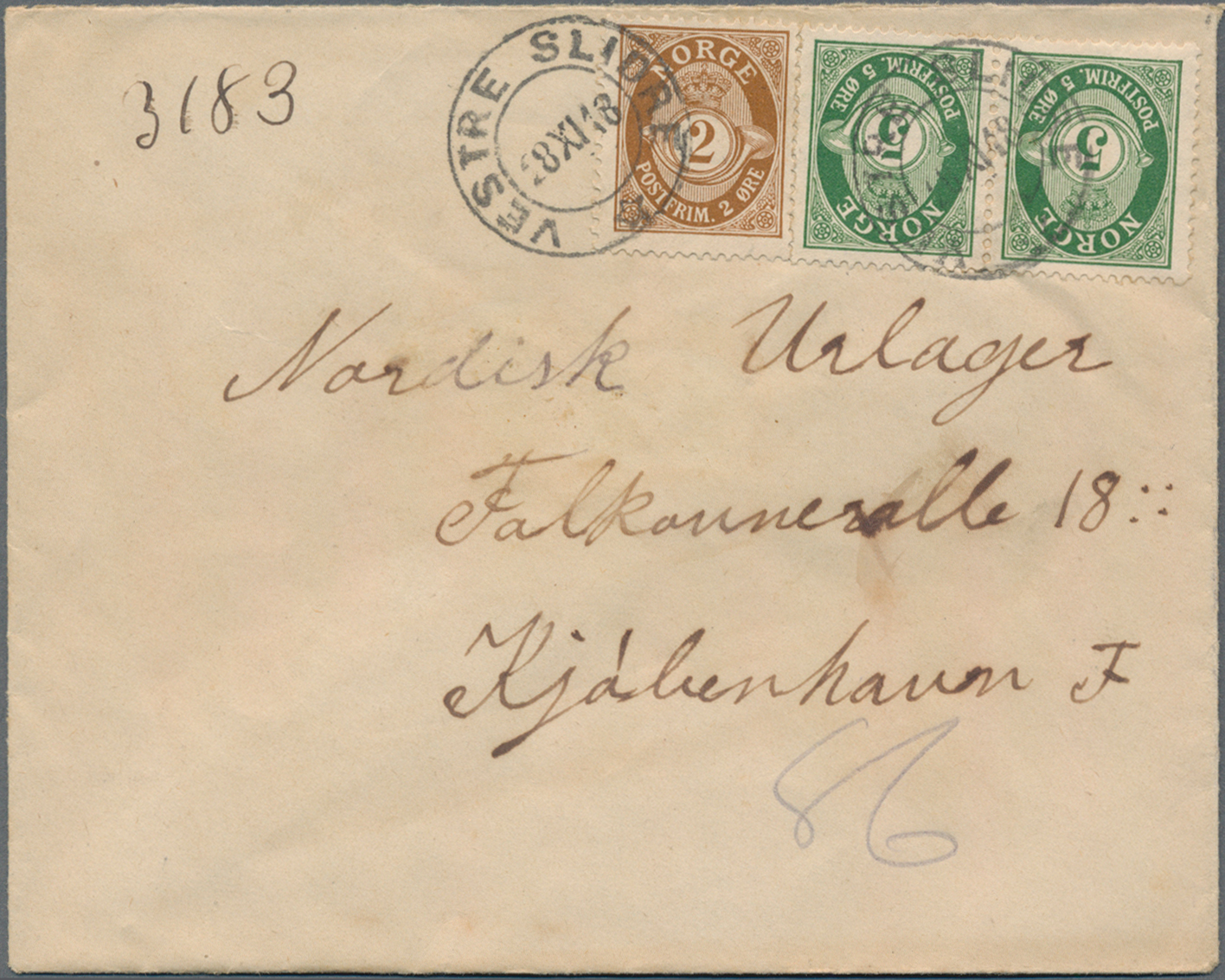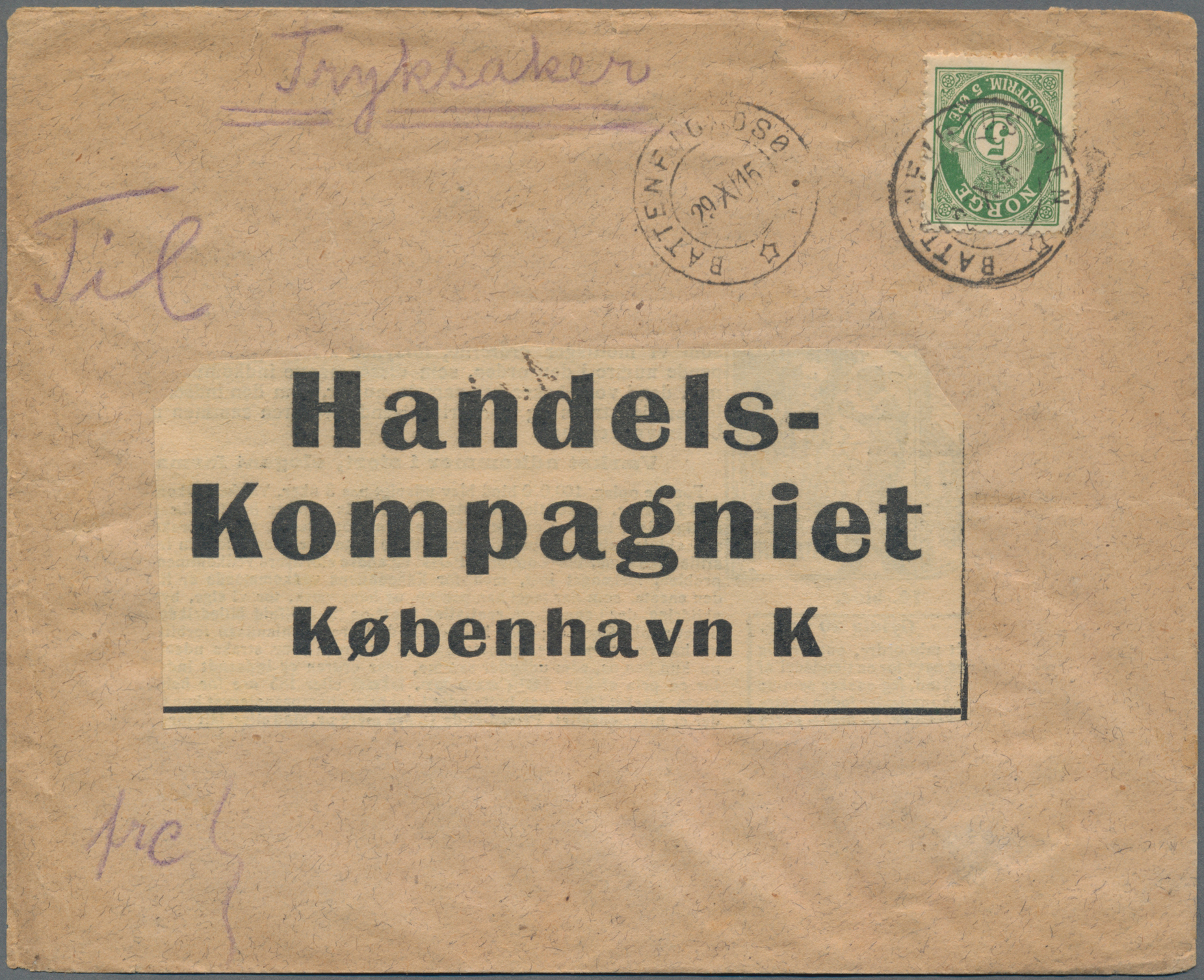 1915/1920, lot of 16 commercial covers to Denmark incl. insufficiently paid with "T" markings. Interesting postal history lot of "12ö. special rate" period!