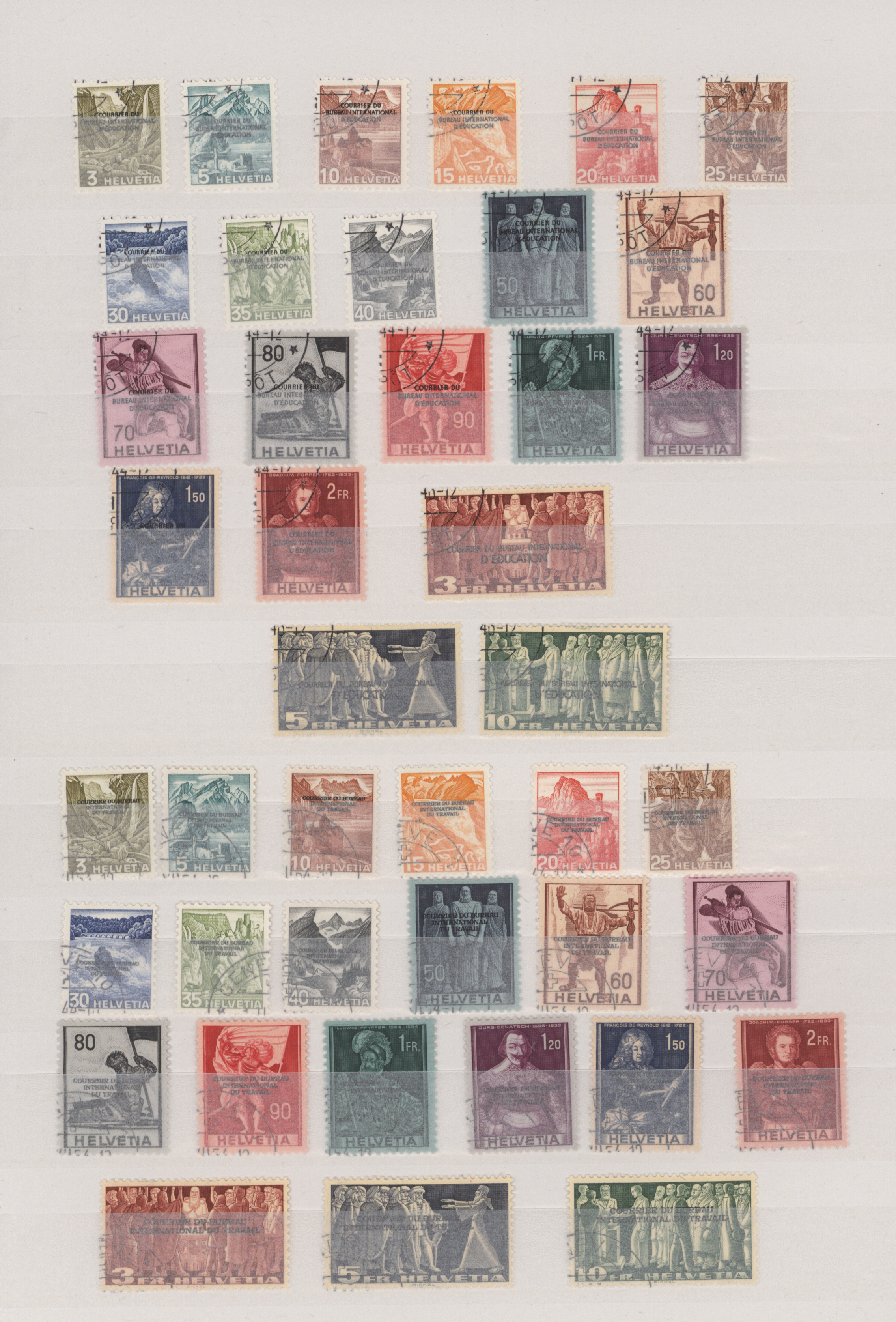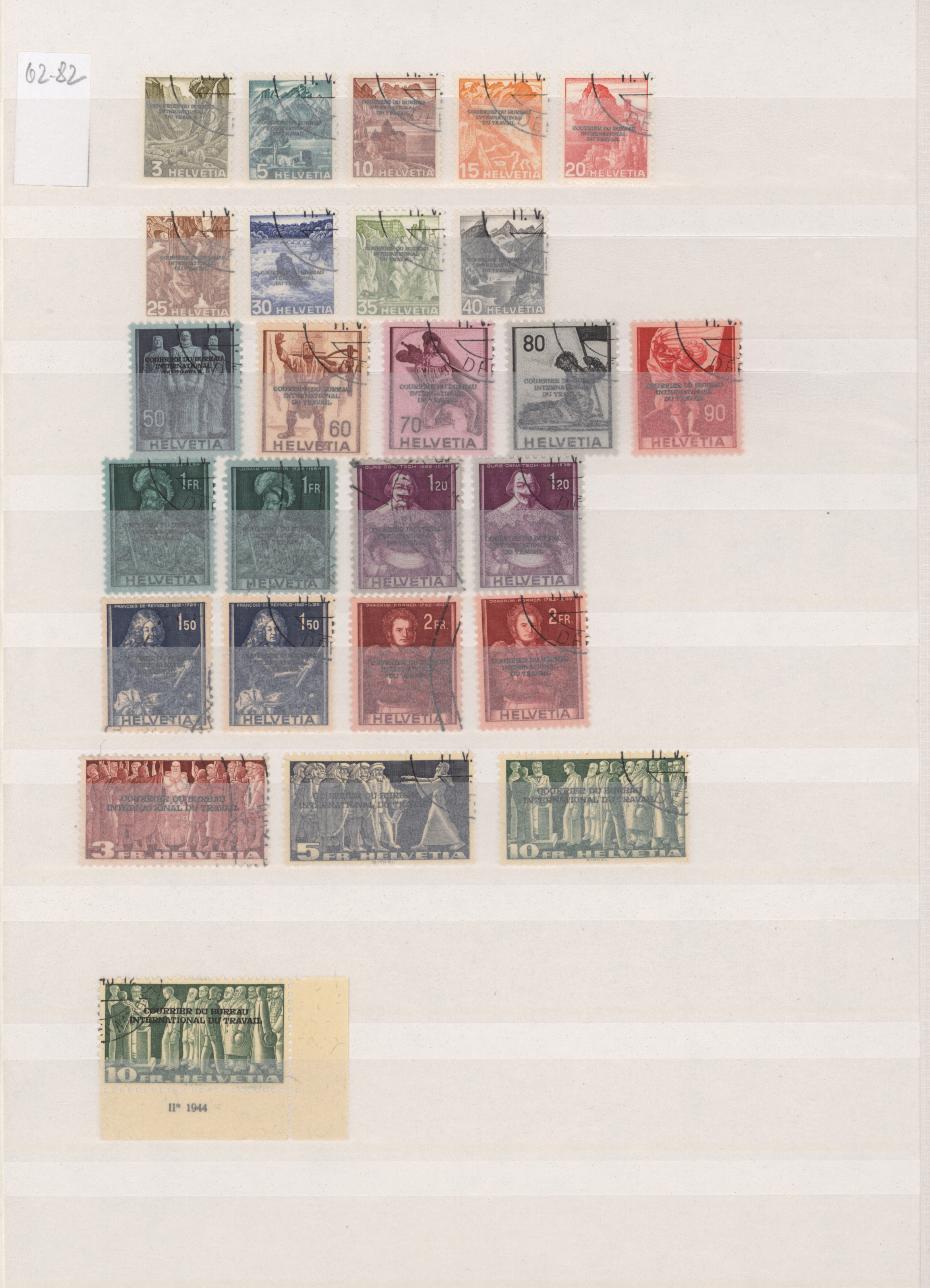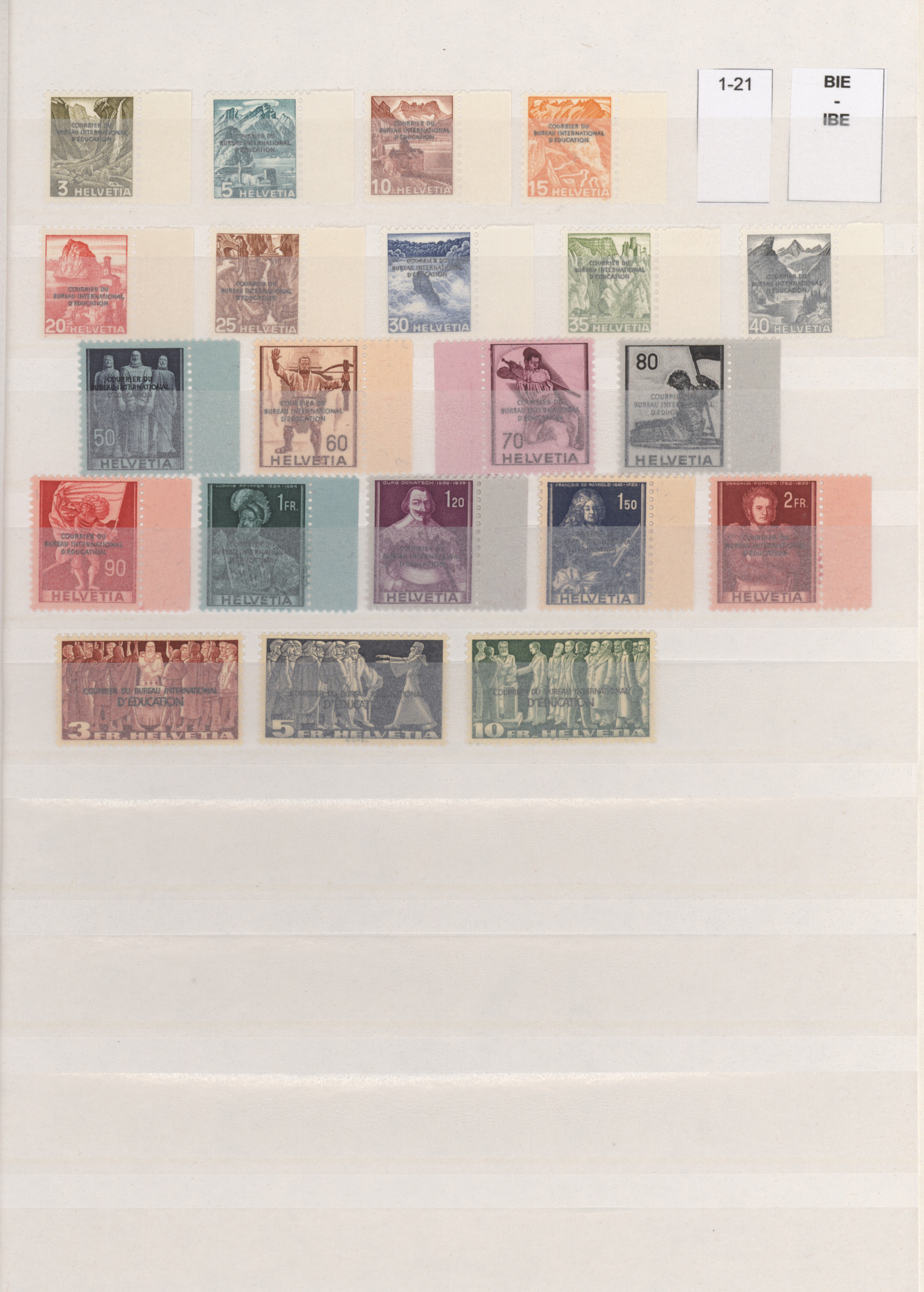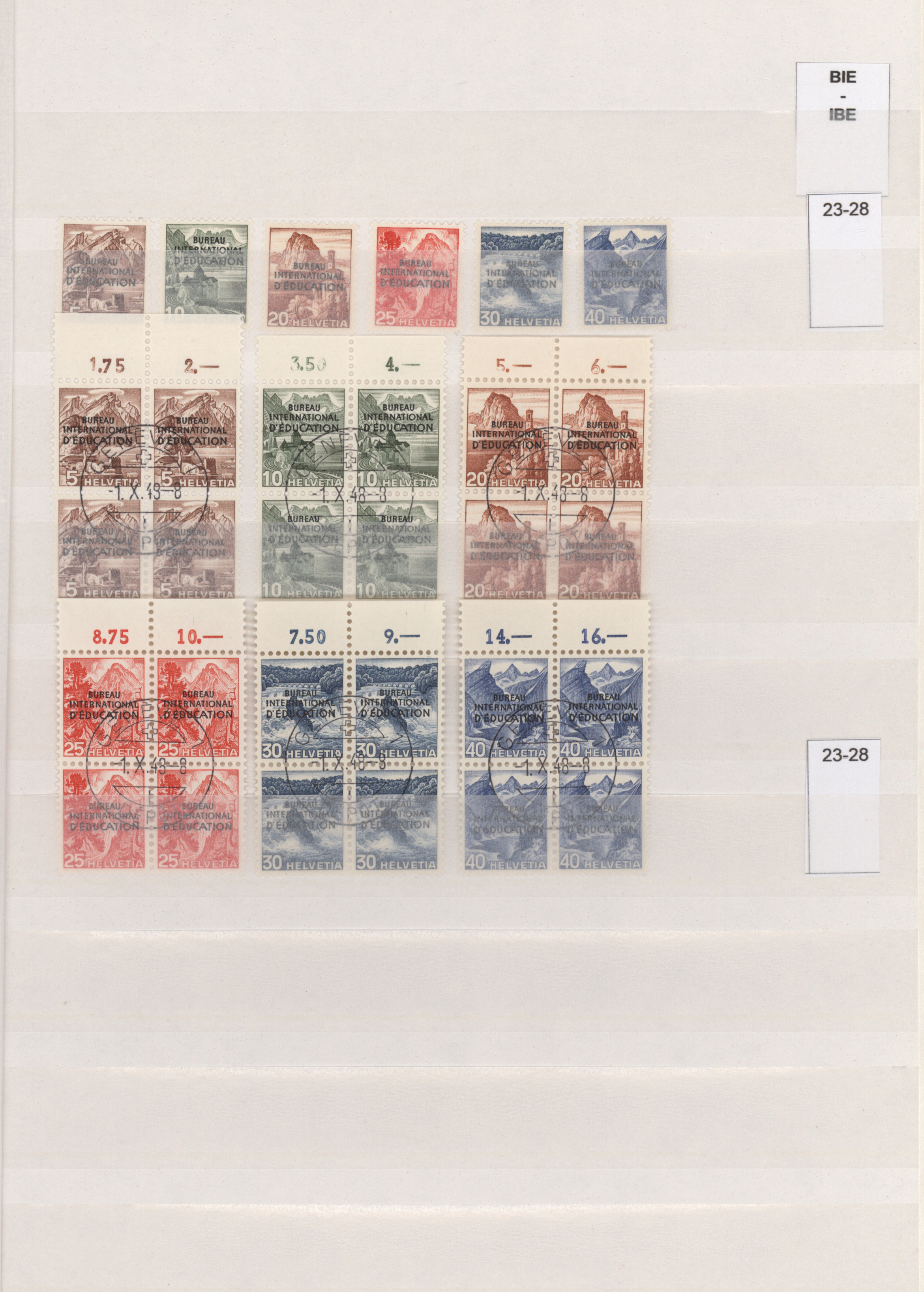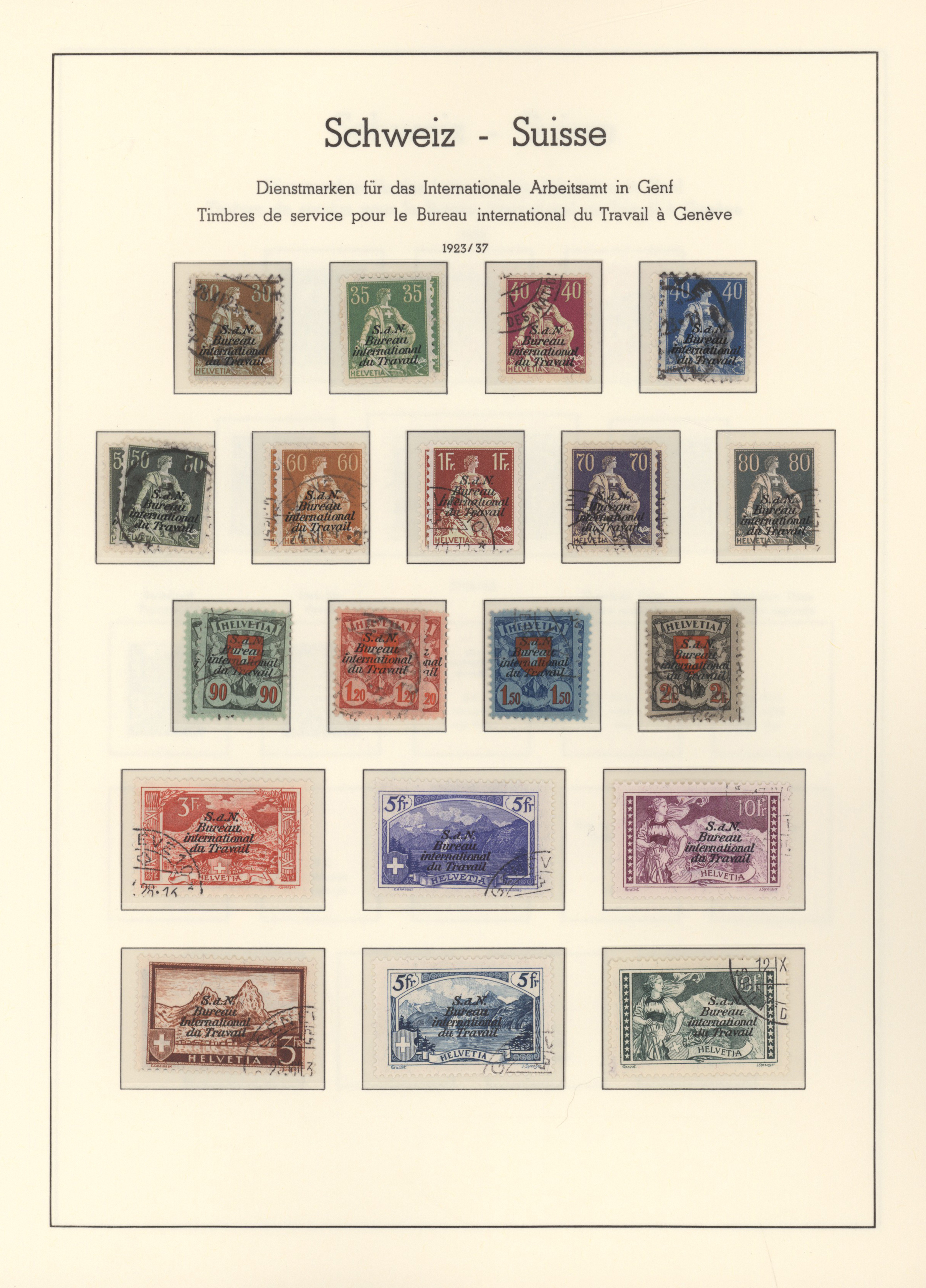 1921-1953, VÖLKERBUND / SDN / BIT, Partie schweizer Dauermarken "Helvetia" und "Wilhelm Tell" mit Dienstmarken-Aufdruck SOCIÉTÉ DES NATIONS, dazu