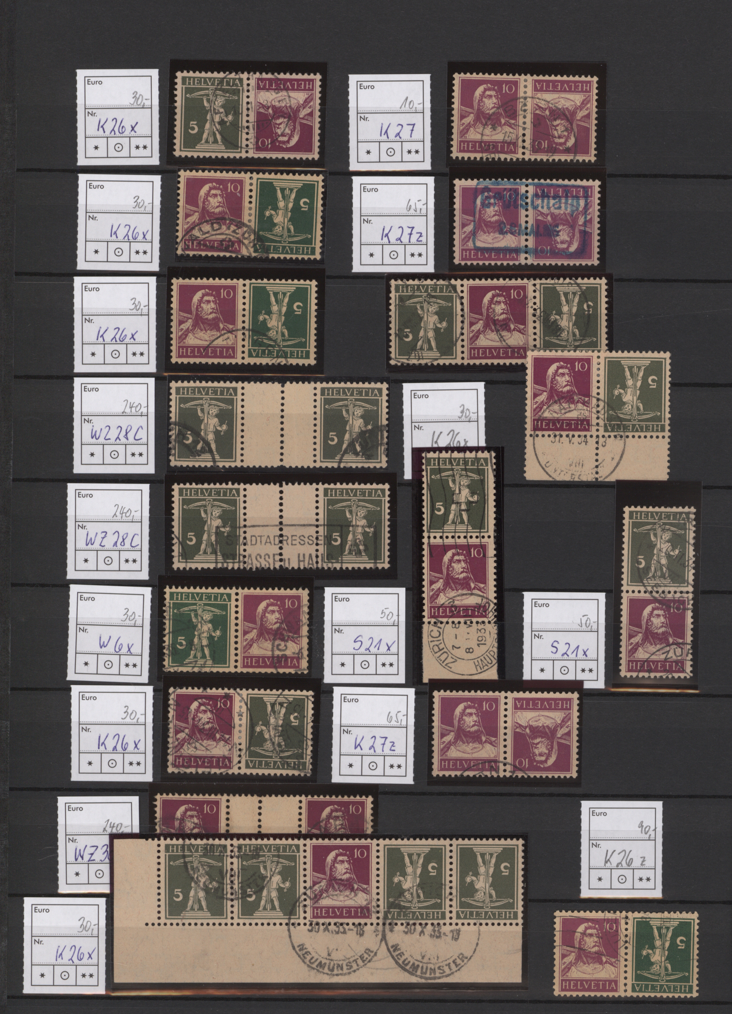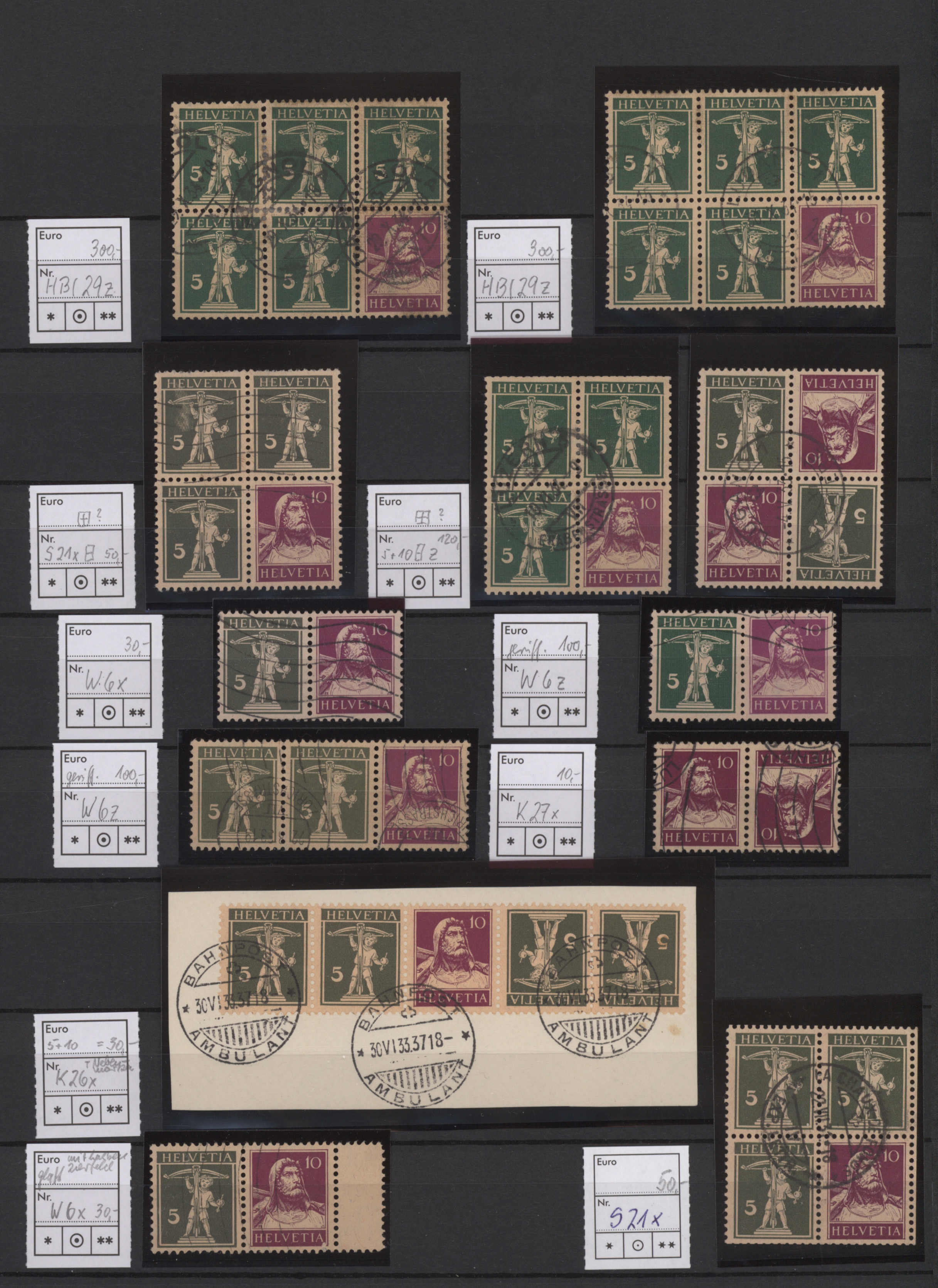 1910/1950 (ca.), saubere Sammlung der Zusammendruck-Kombinationen, dabei u.a. netter Teil Landesausstellung 1939, Altstoffsammlung 1942, Tell/Tellknabe und