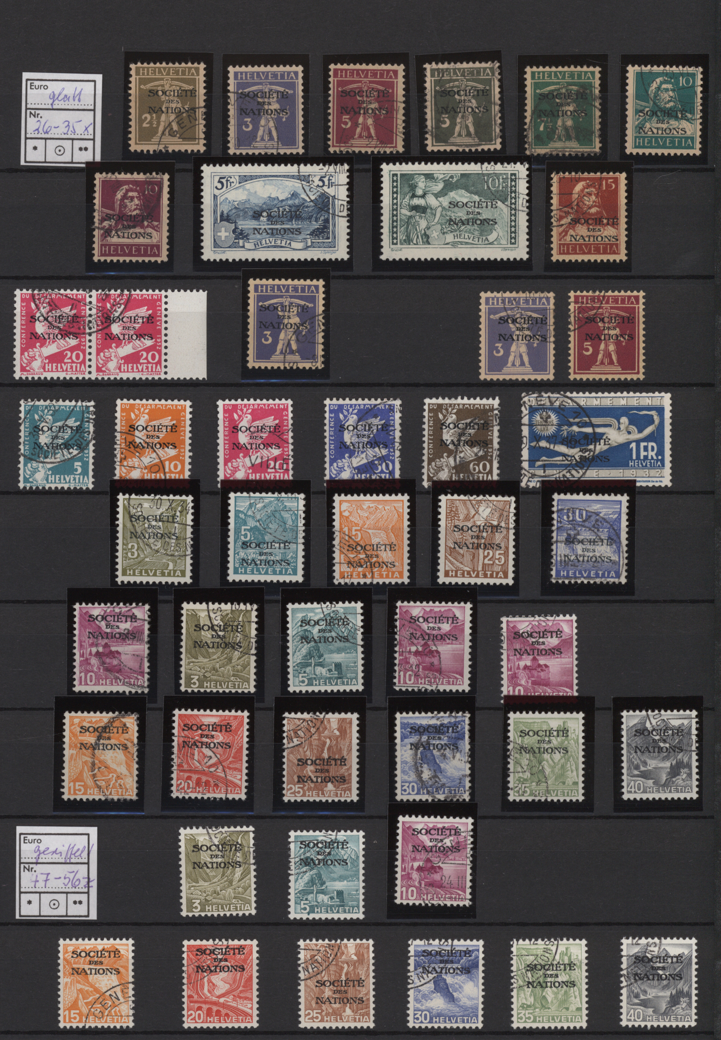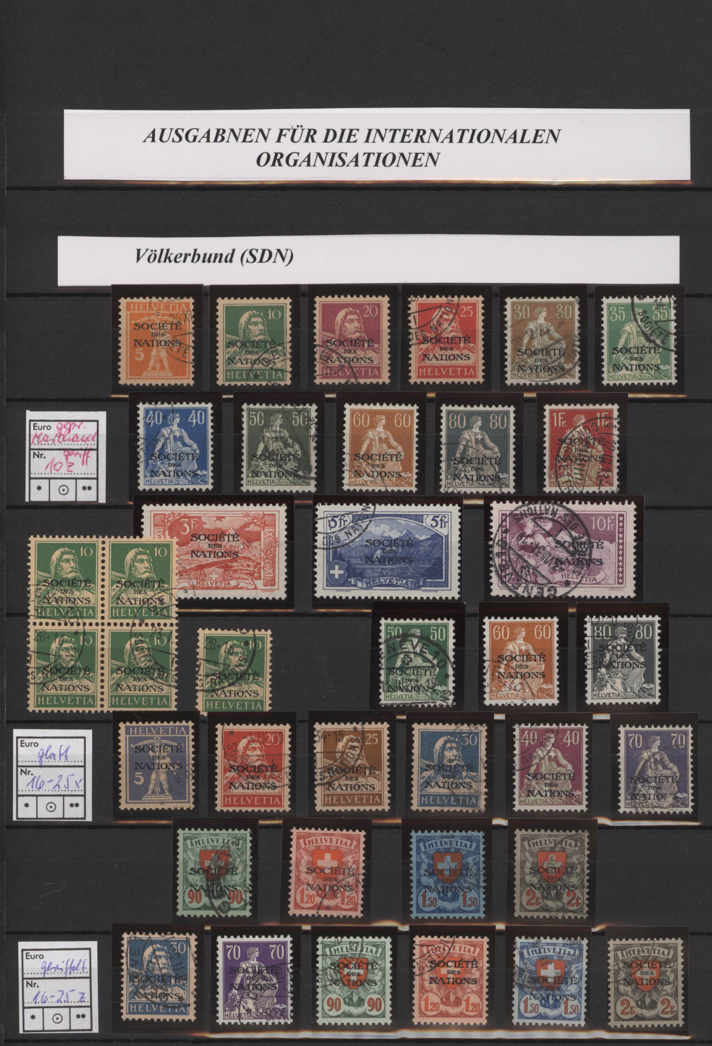 postfrisch/ungebraucht, mal gestempelt, oft auch doppelt gesammelt. Die Internationalen Behörden stechen besonders hervor, z.B. Völkerbund über weite Strecken kpl. incl. Nr. 56, ebenso Arbeitsamt. Sehr günstig angesetzt.