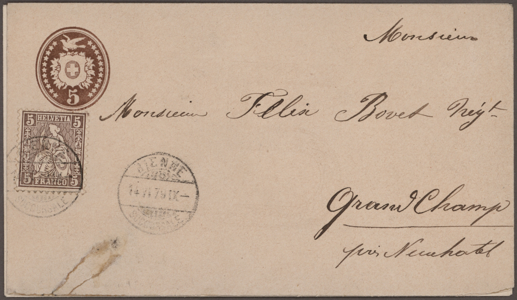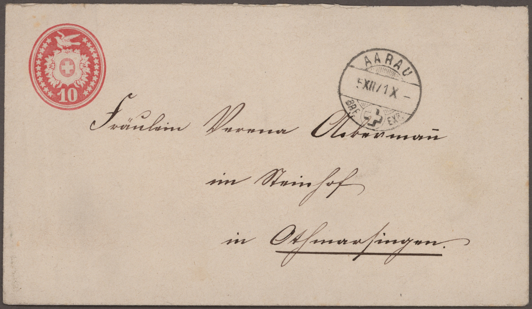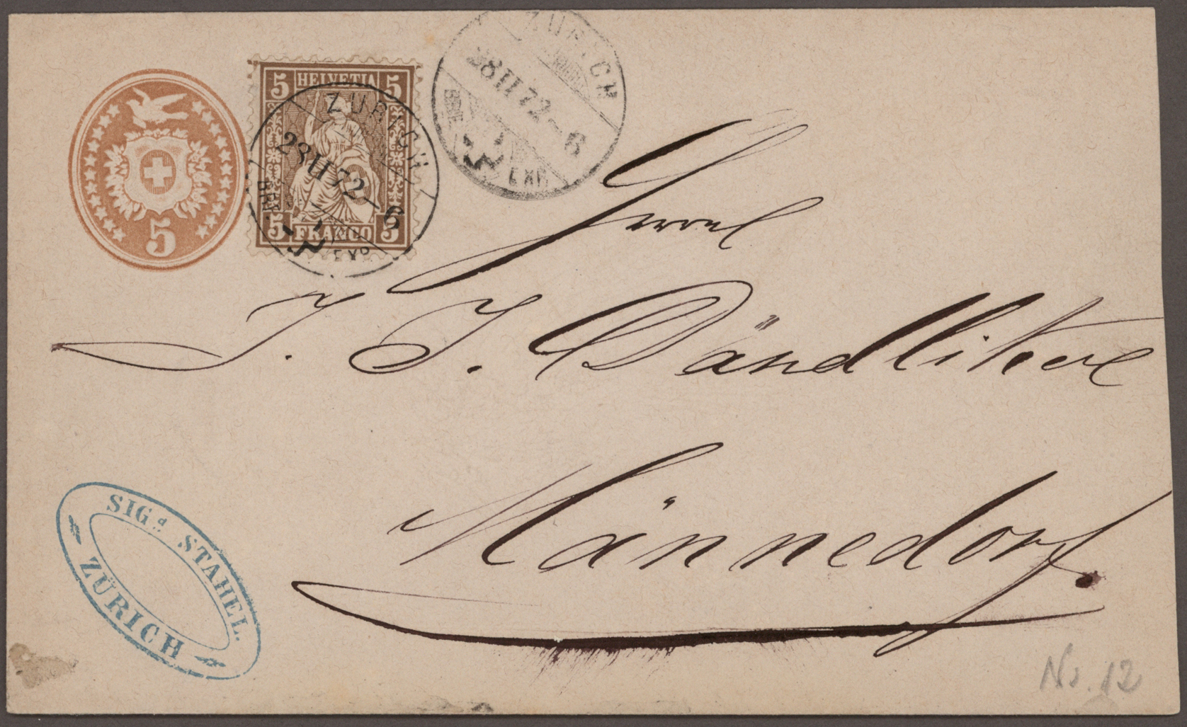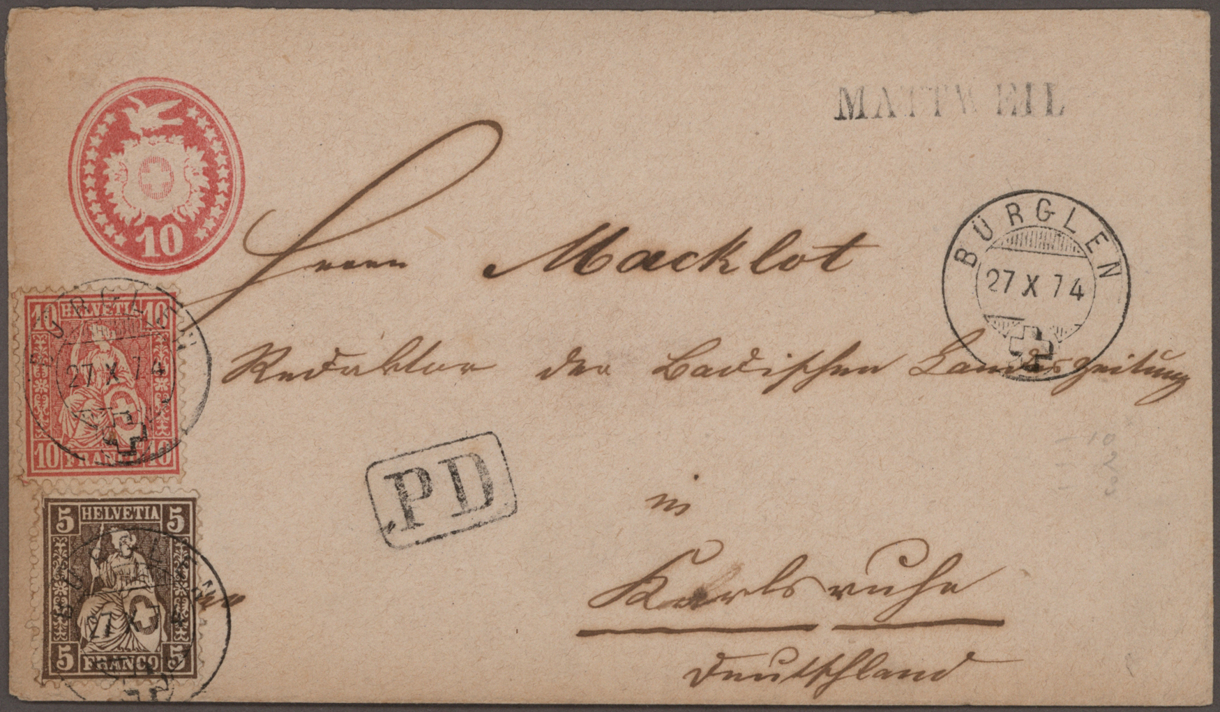 1864/1893, nette Partie von neun gebrauchten Tübli-Ganzsachenumschlägen, teils Zusatzfrankaturen und Auslandspost, zusätzlich drei frankierte Briefe mit