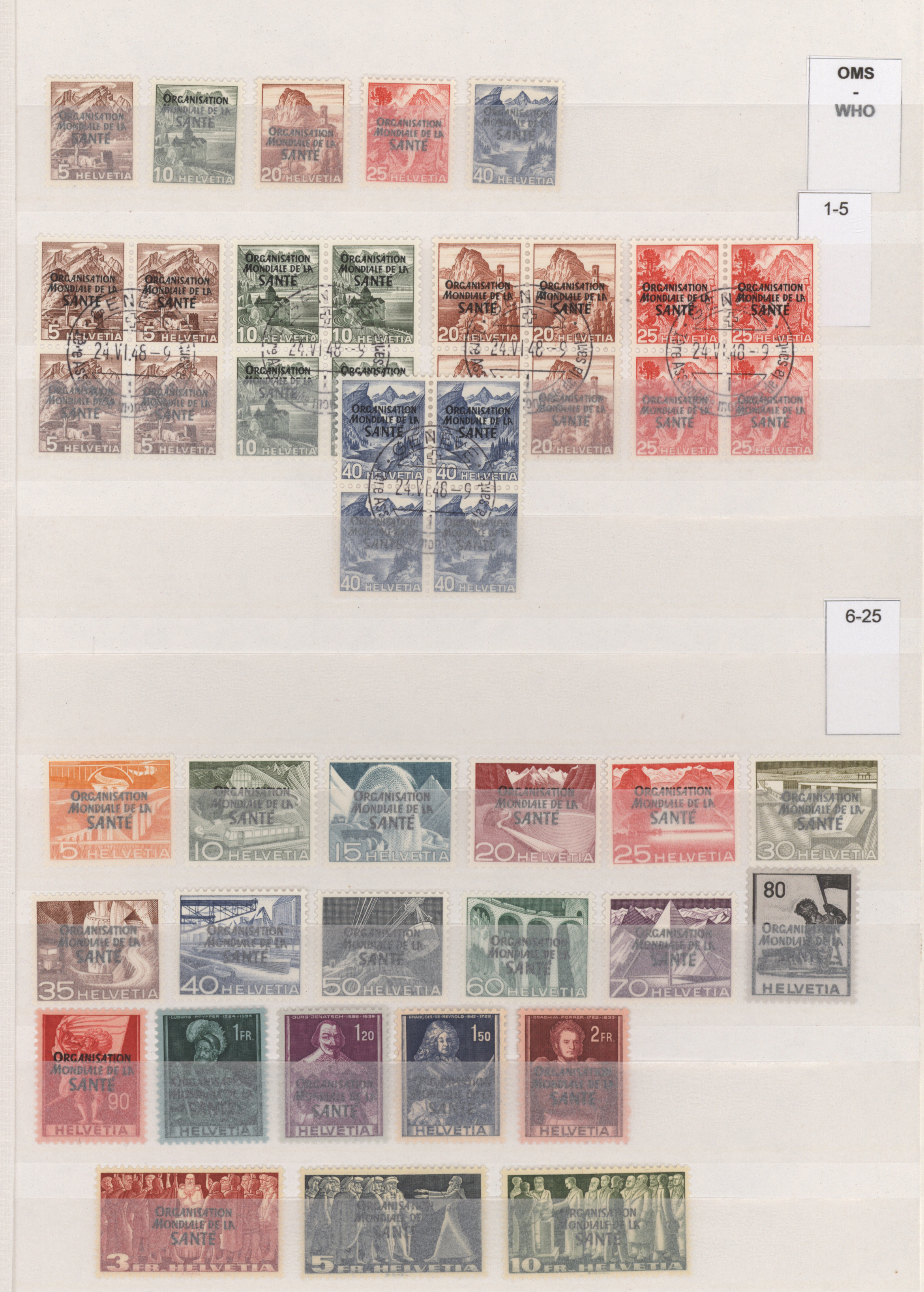 OMS, ONU, OIR, OMM, UPU, UIT, Unesco, OMPI, Untea incl. Typen und 4er-Blocks, dabei auch hohe Werte, Originalbogen usw. Nach Angaben Mi. ca. 10.000,- €.