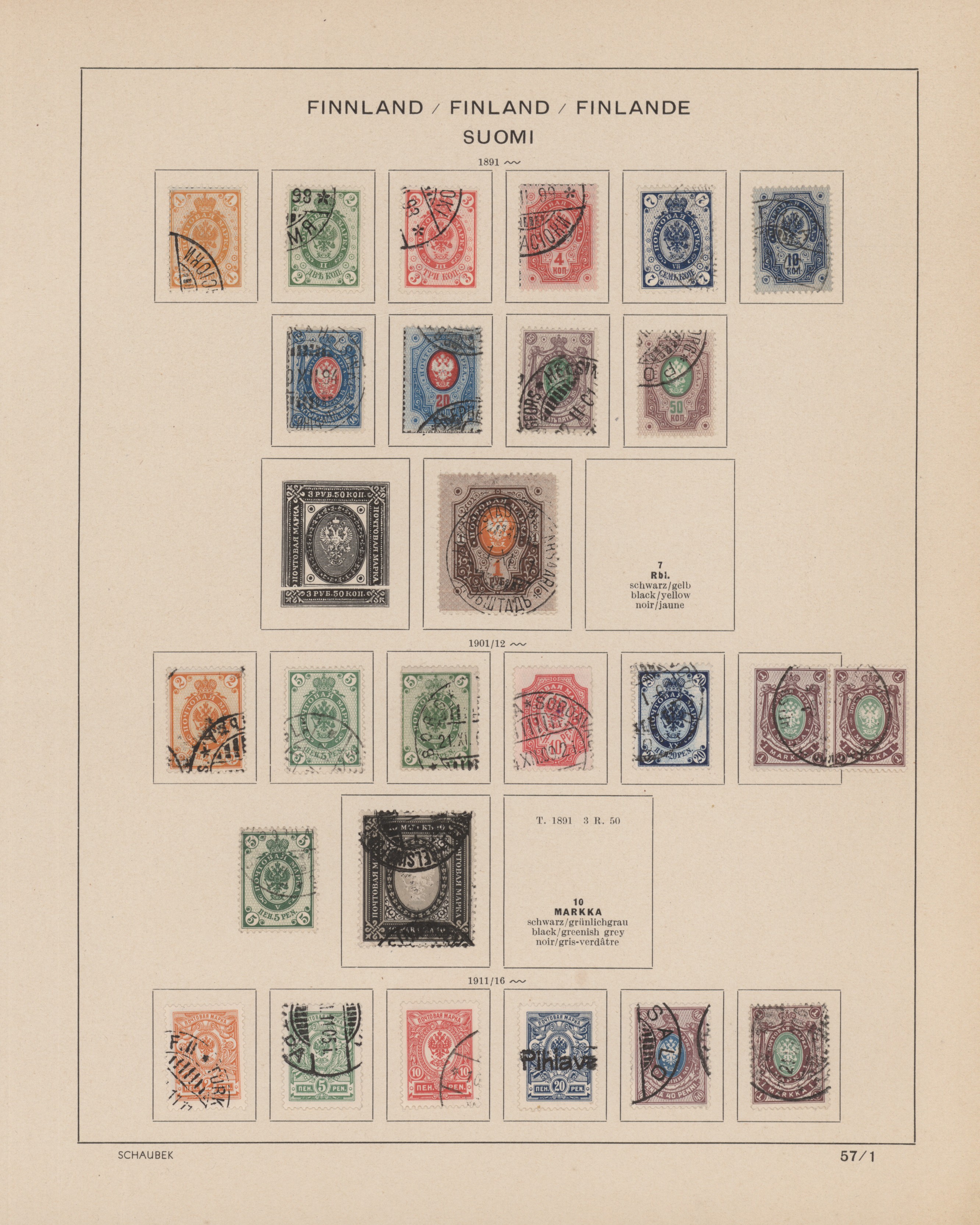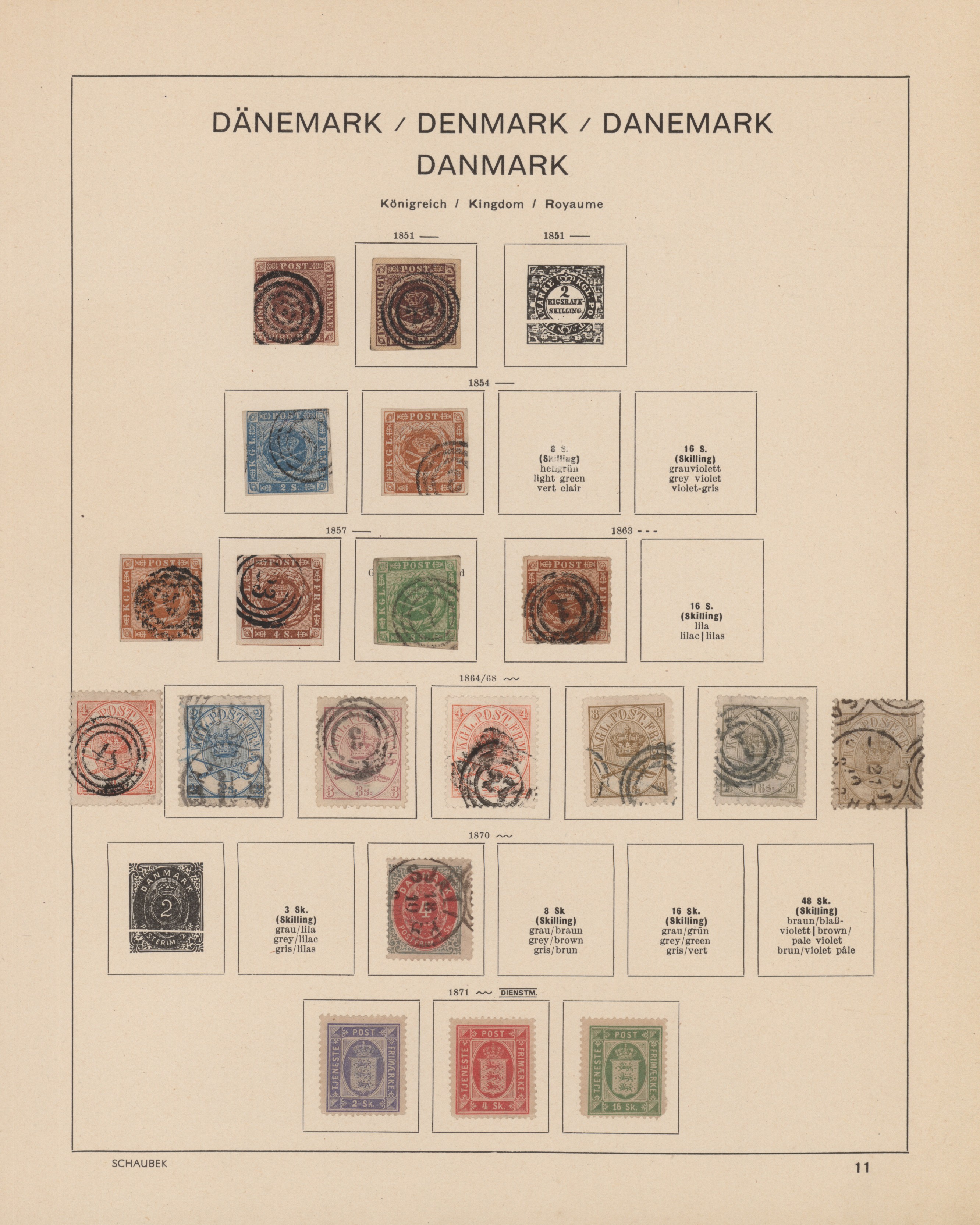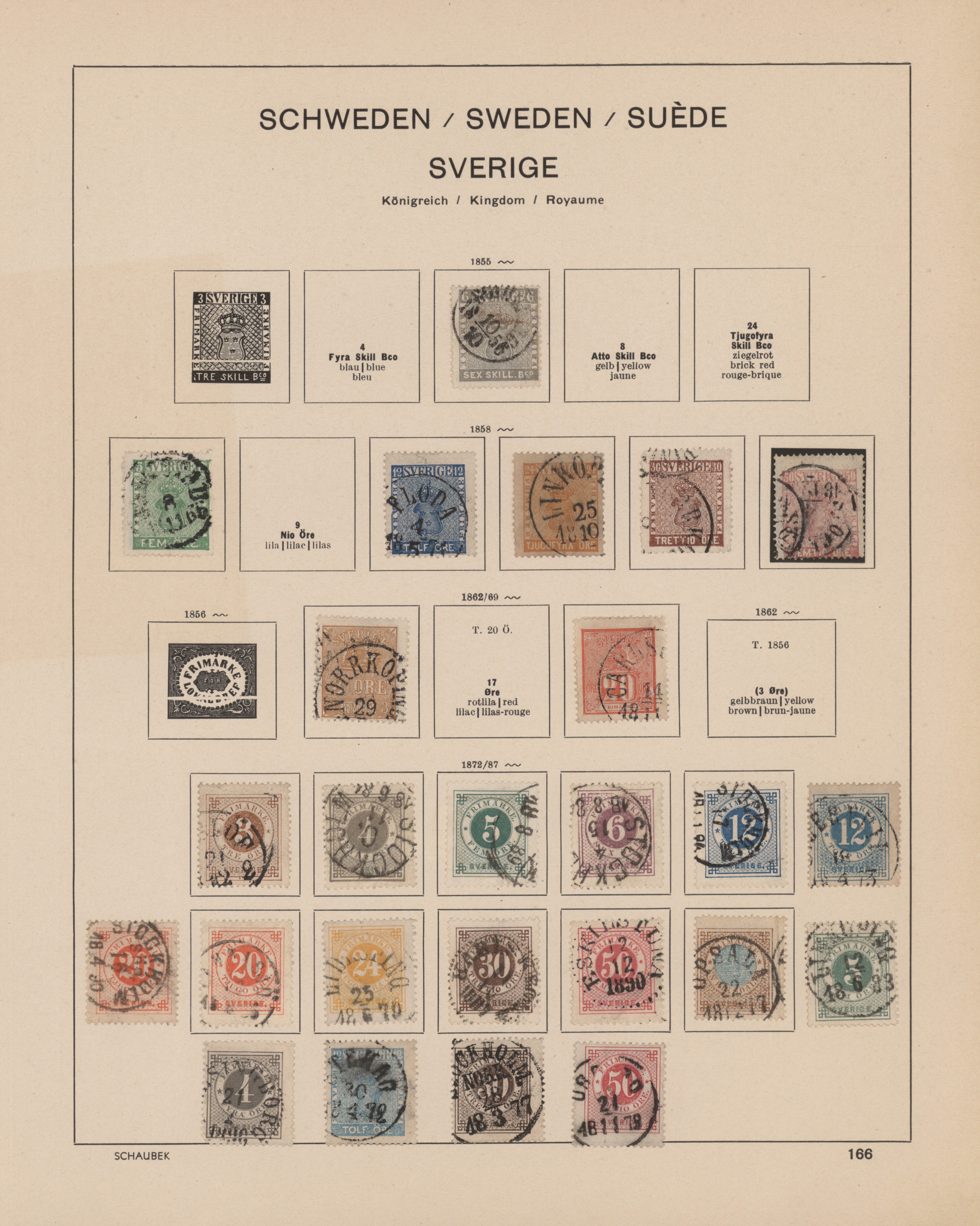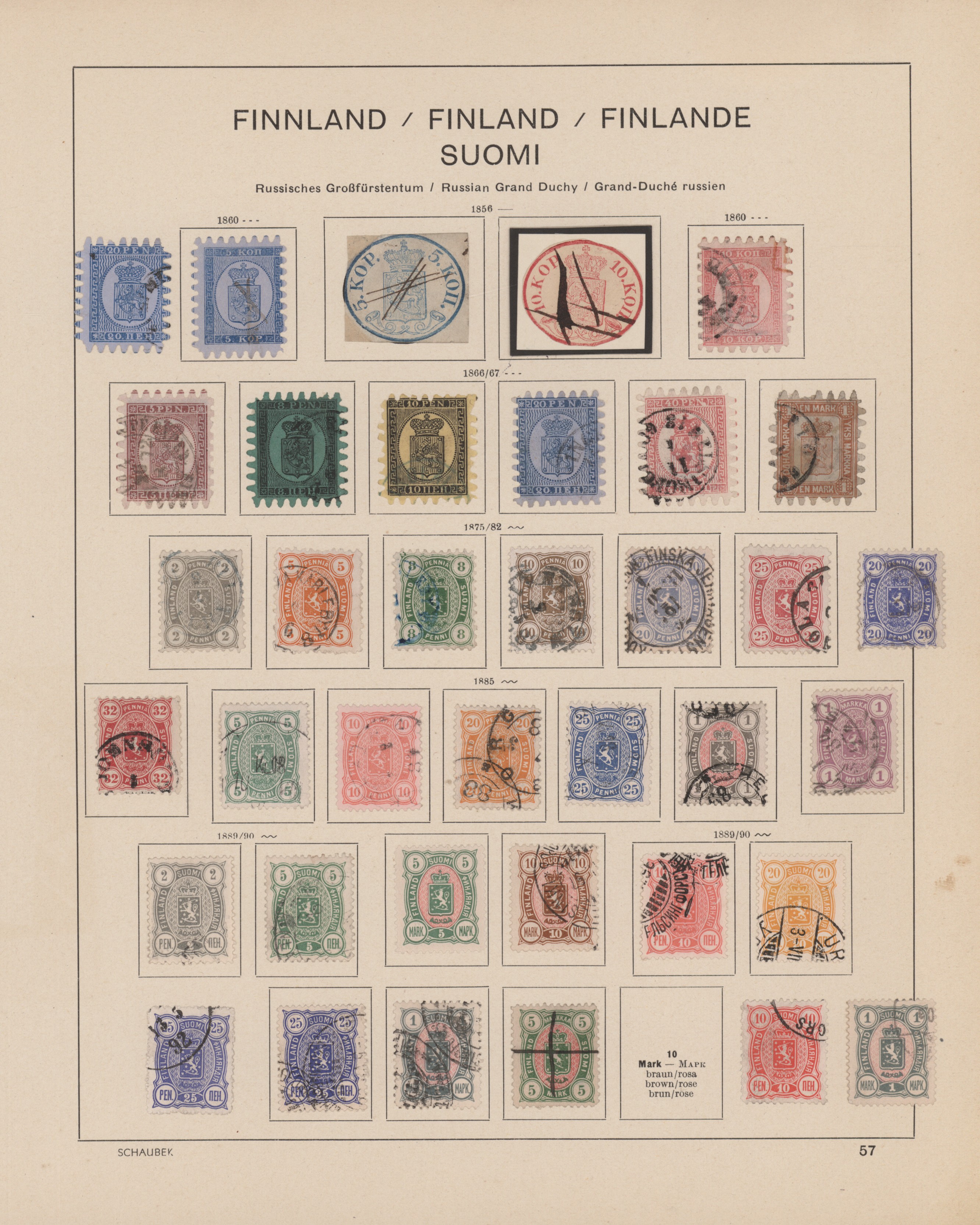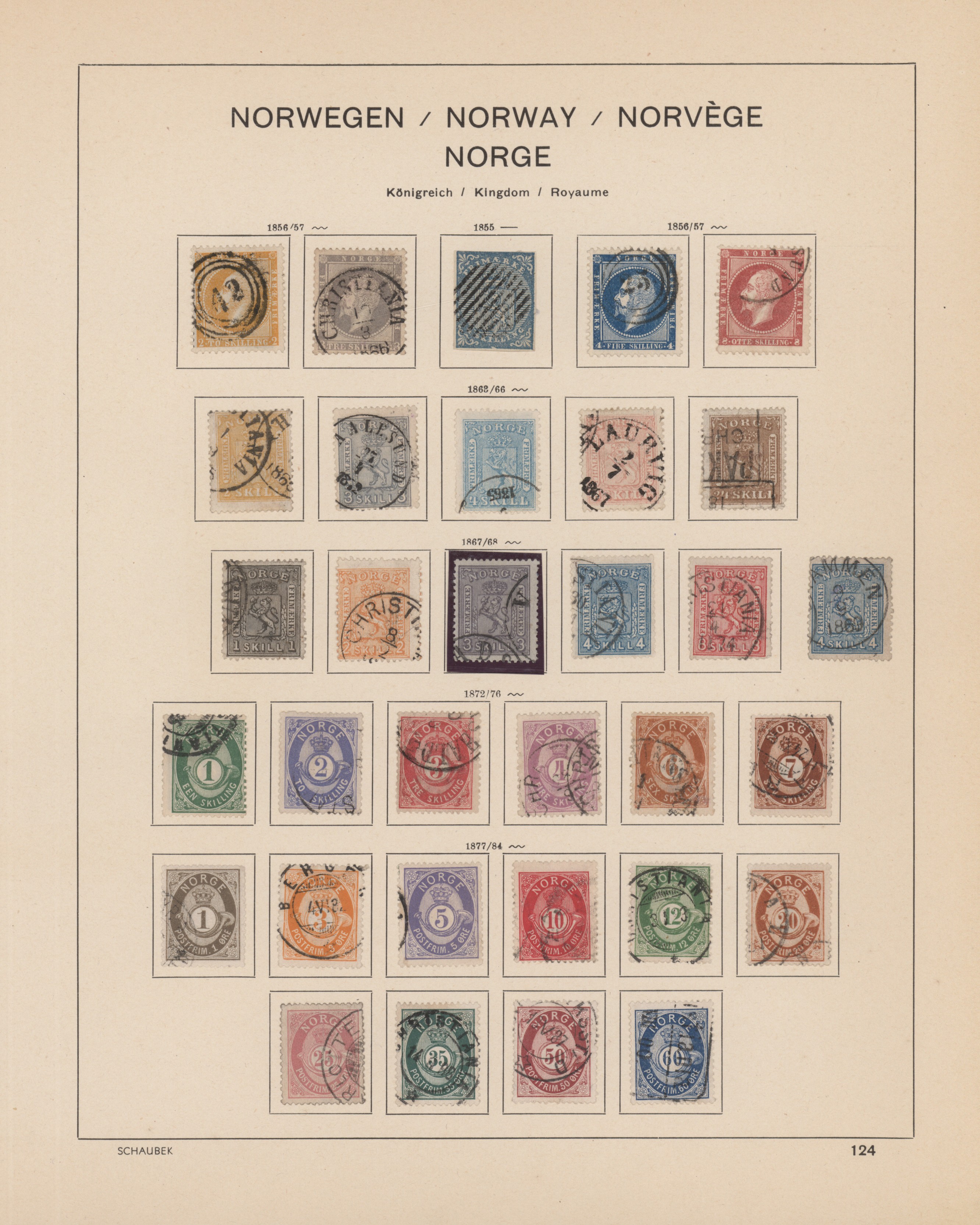 Schaubek-Album mit den skandinavischen Ländern Dänemark, Finnland, Island, Norwegen und Schweden, dazu Frankreich mit zahlreichen Ceres und Napoleon-Ausgaben, Österreich in zwei dicken Alben mit Gebieten, Ungarn inkl. Besetzter Gebiete und Dubletten