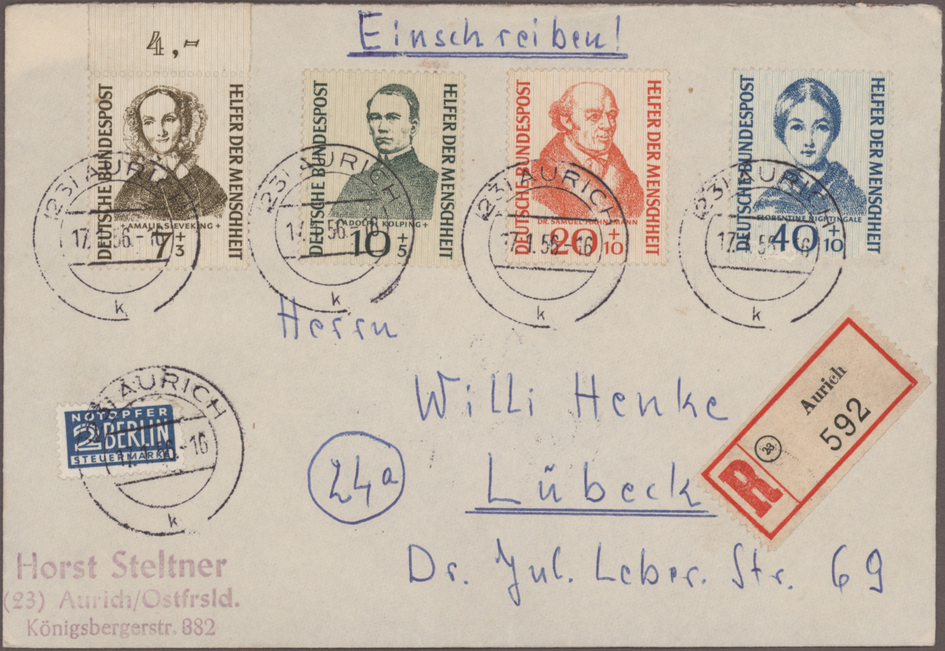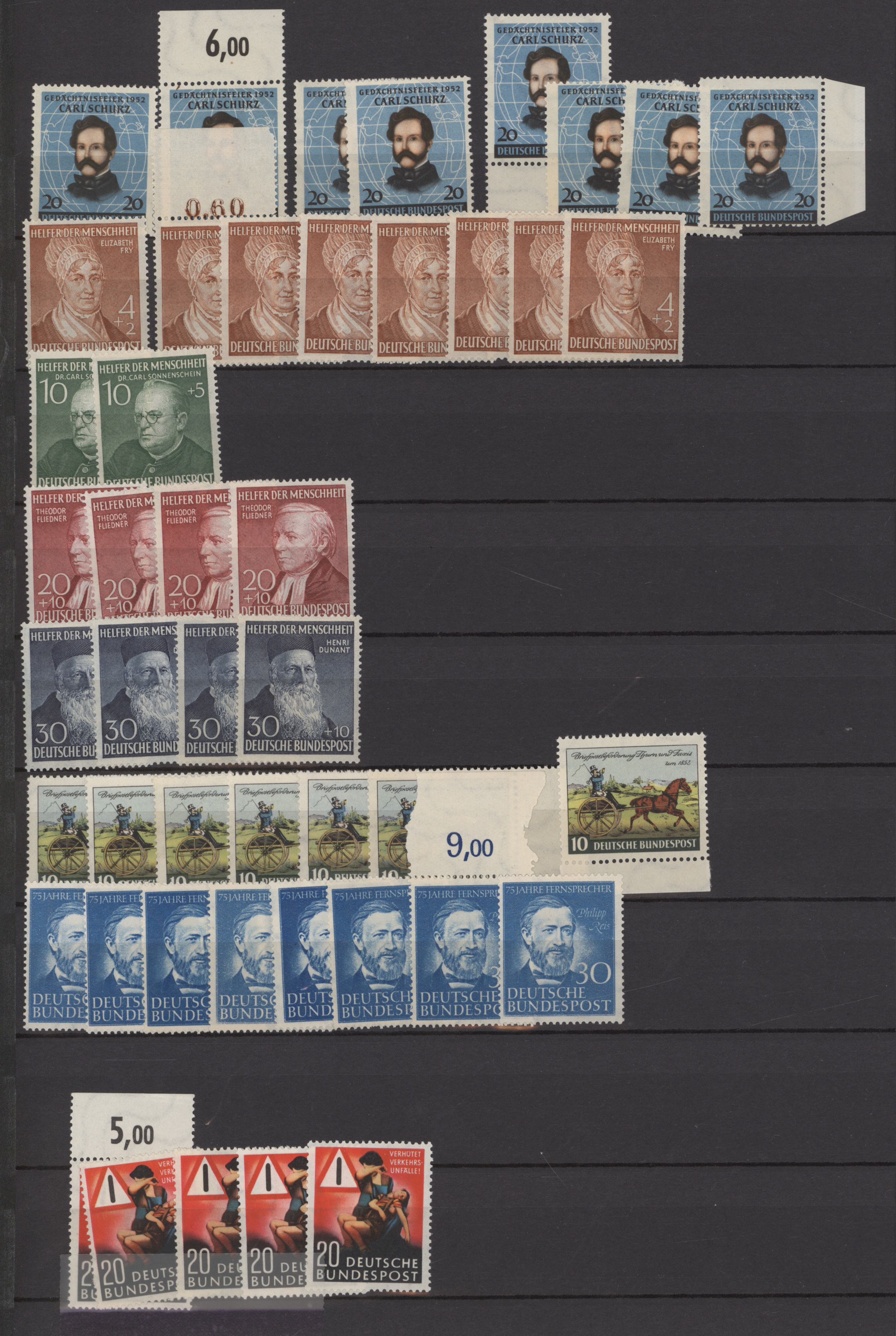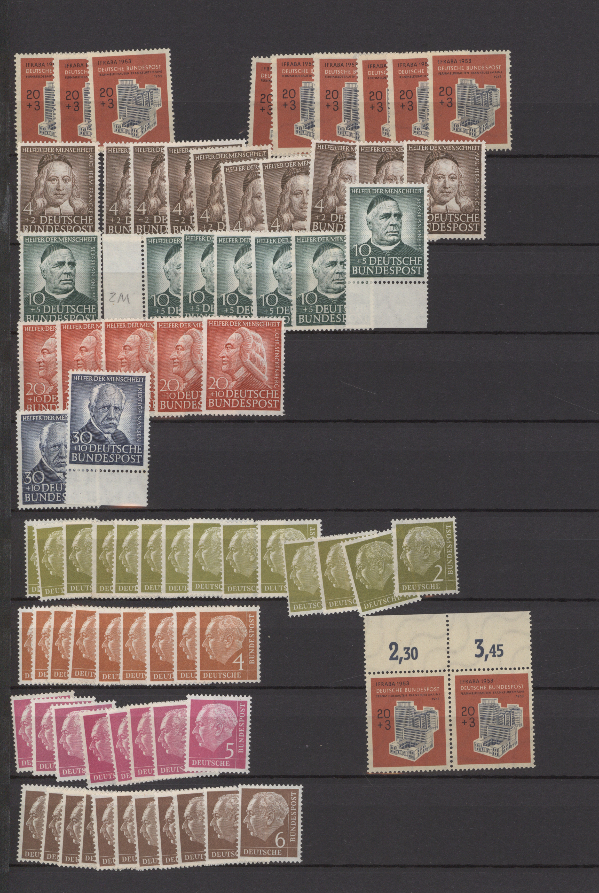 Gehaltvoller Nachlaß-Posten "Nachkriegsdeutschland" mit u.a. einem postfrischem/ungebrauchtem Lagerbuch Bund ab 1949 mit den guten Ausgaben wie Helfer der Menschheit,