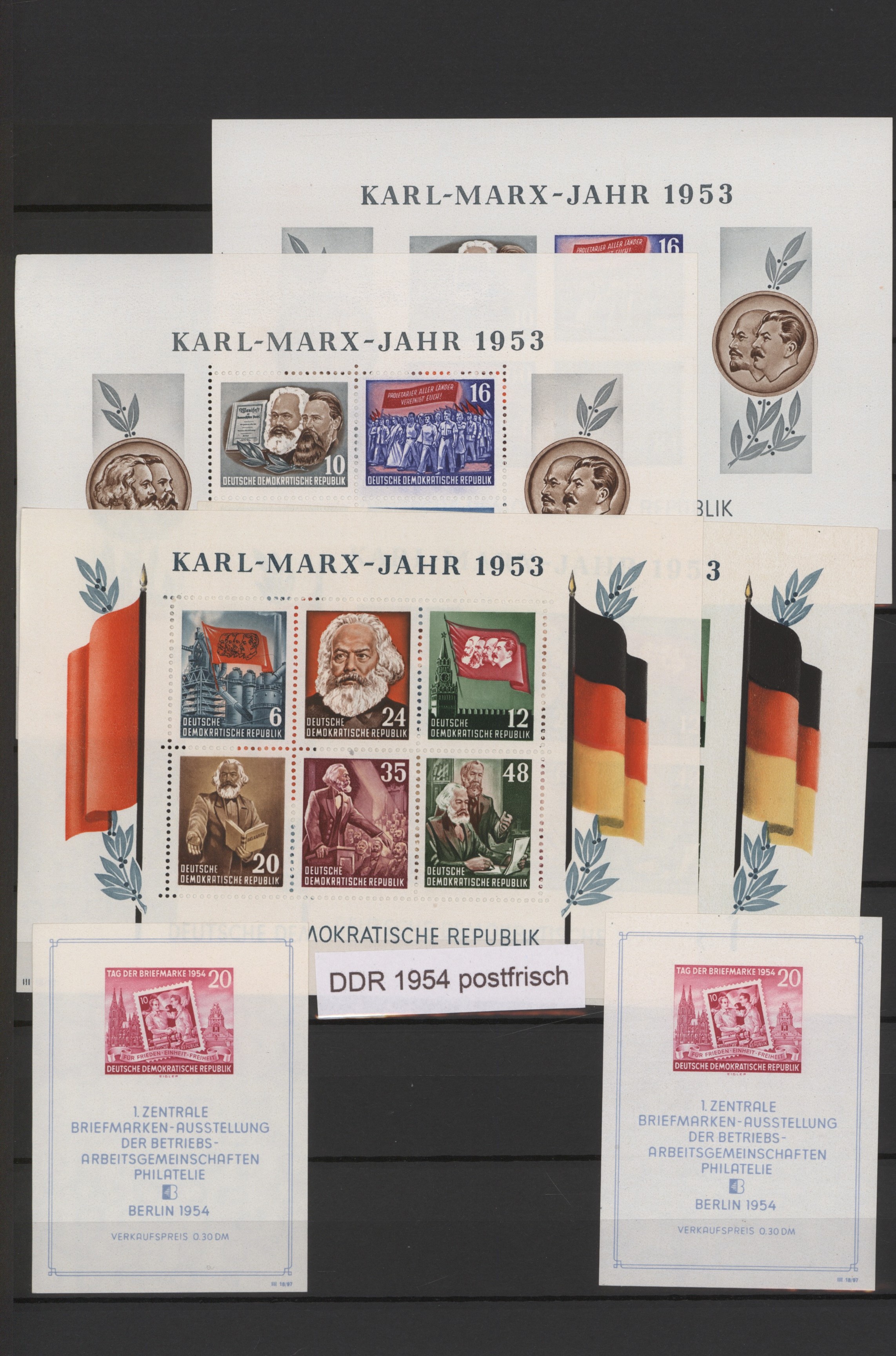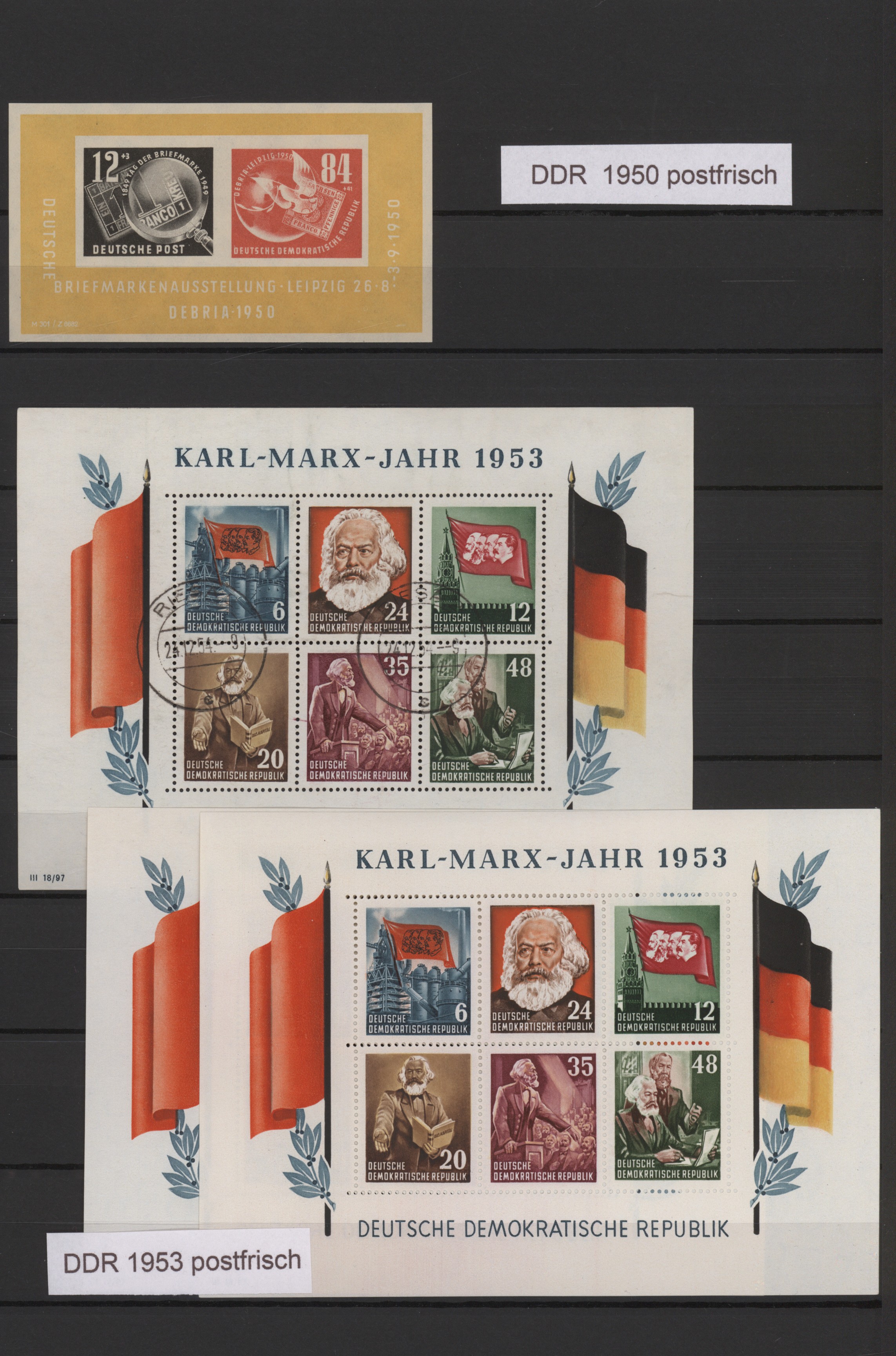 Berlin ebenfalls mit gestempelten Anfangaausgaben, teils auch mehrfach, dazu ein ordentlicher Dublettenbestand in beiden Erhaltungen, der DDR-Teil ebenso sowie etwas Bogenware, dazu noch zahlreiche Belege dieser Gebiete.