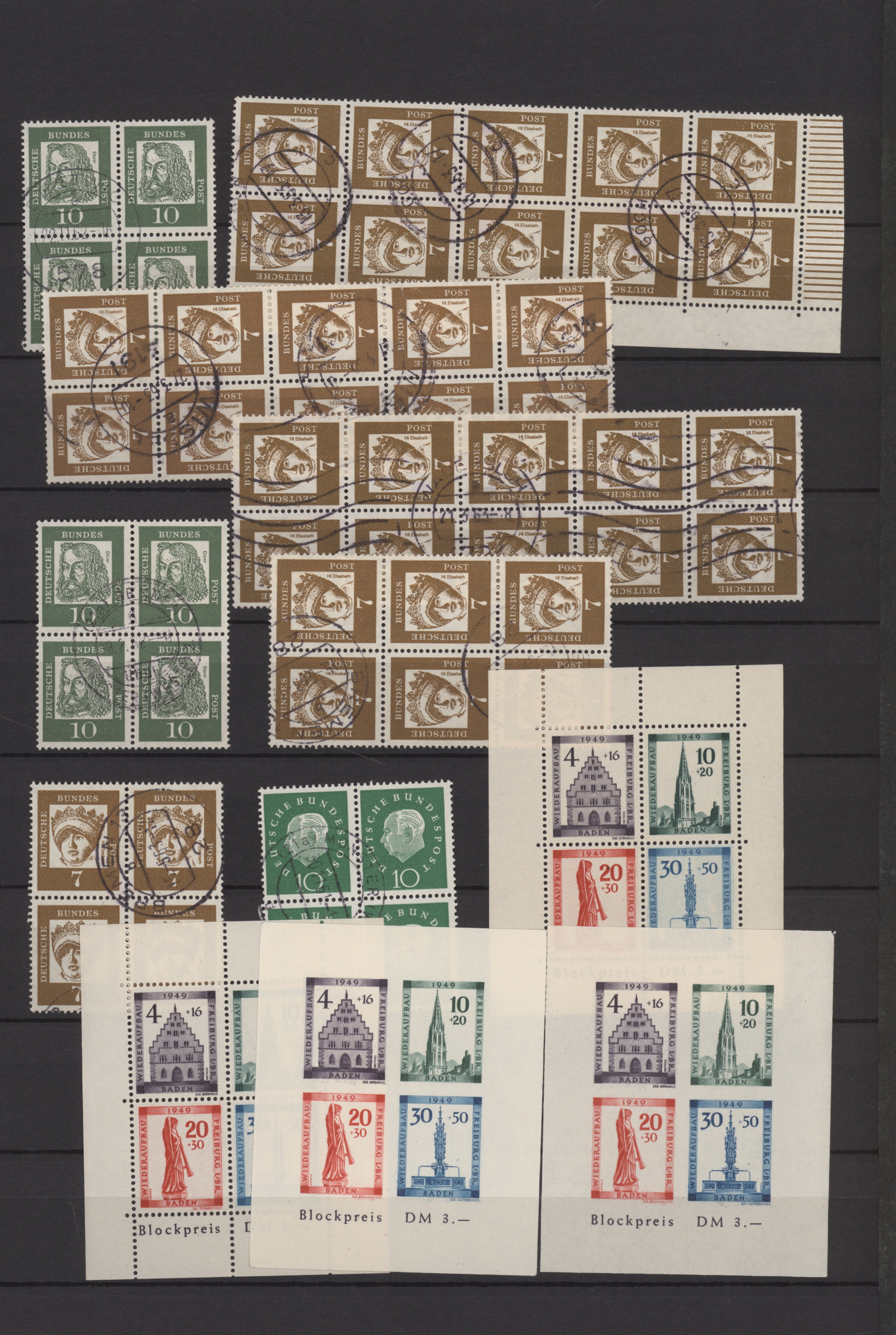 mit Heuss lumogen/lgd.Wz. komplett, auch einige neuere postgültige Ausgaben, Markenheftchen ab Heuss, Berlin ab Anfangausgaben sowie ideal gestempeltes Material, DDR sehr schön mit beachtlichem Spezialteil "Fünfjahrplan", usw. Hoher Detailwert, ideal