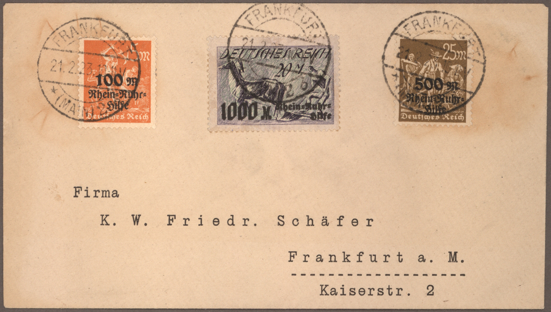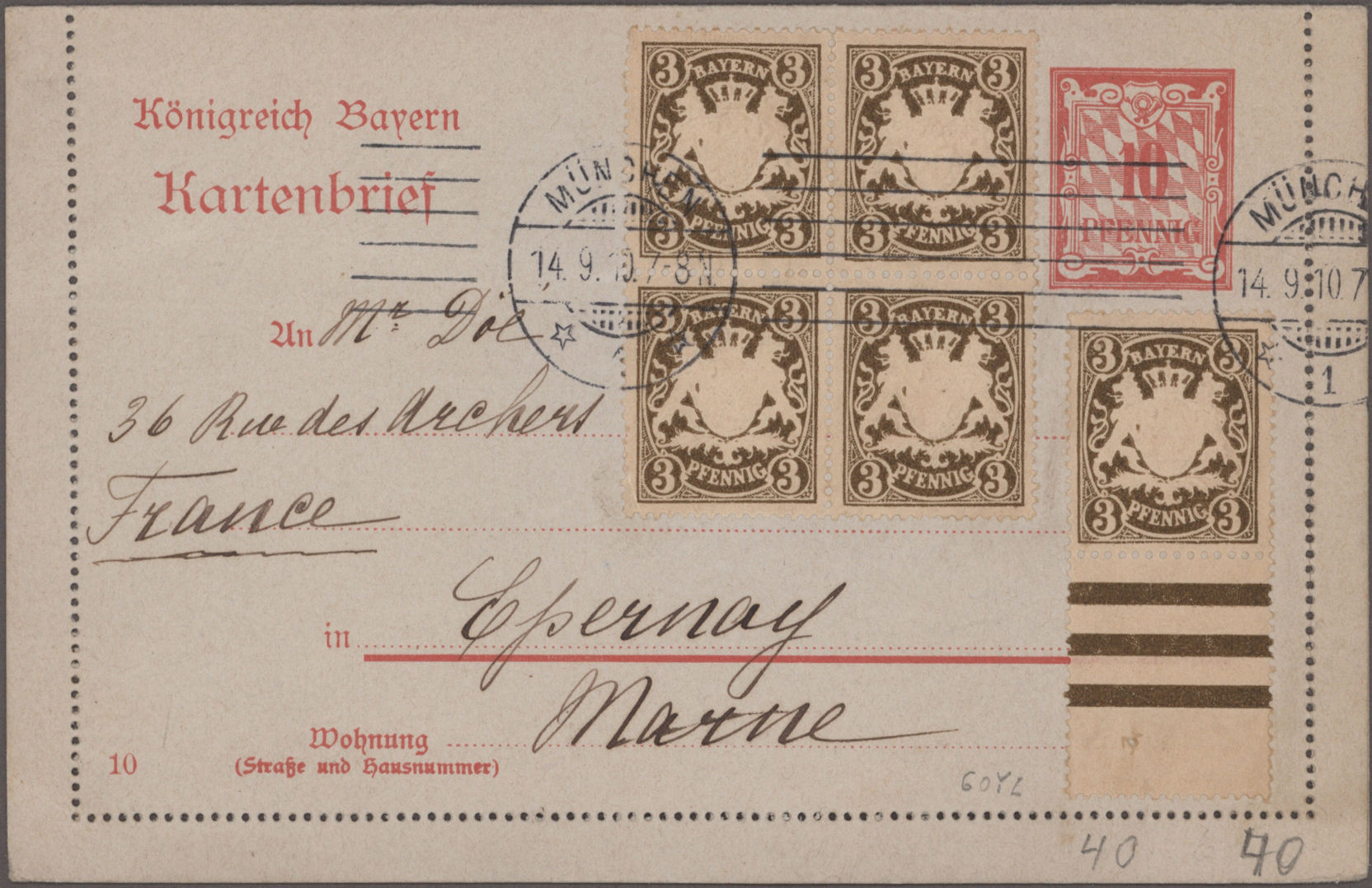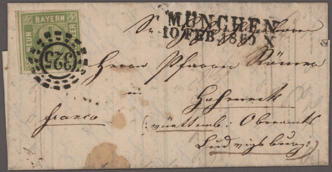Uriger Nachlaß-Posten mit Marken und Belegen, meist Dt.Reich sowie etwas Altdeutschland, immer mit interessantem Material, u.a. eine nette Auswahl an Bayern-Quadraten.