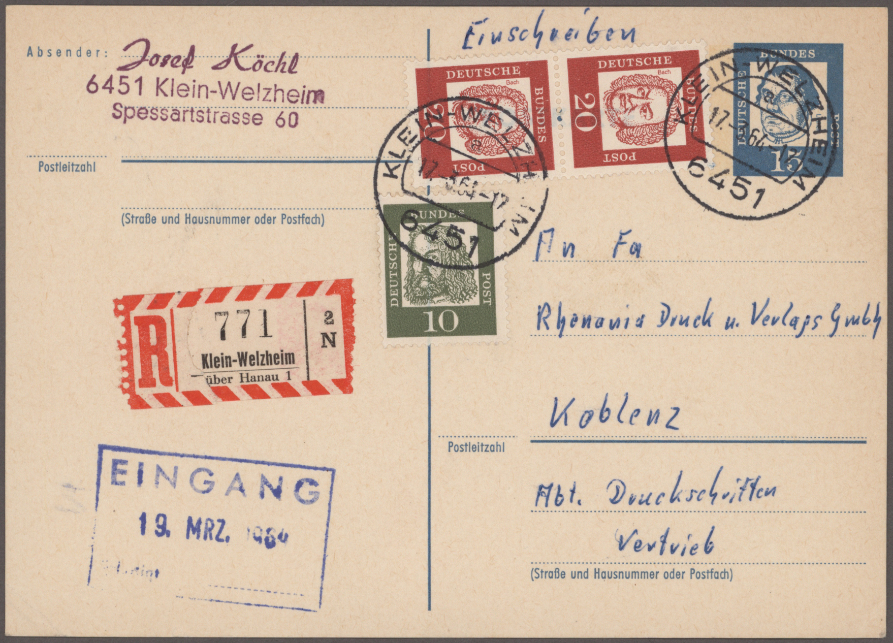 Uriger Wühlposten mit Marken und meist Belegen Nachkriegsdeutschland, u.a. gesehen Bund MiNr. 113/115 auf Sonderkarte, Berlin 61 EF auf Postkarte und weitere interessante
