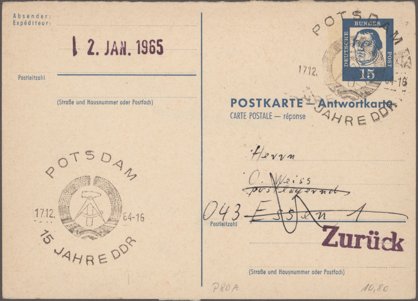Wilder Nachlass vorwiegend Deutschland, dabei eine gestempelte Berlin-Sammlung ab 1948 im Vordruckalbum, dazu etliche Briefe und FDC der DDR, auch der Anfangszeit,