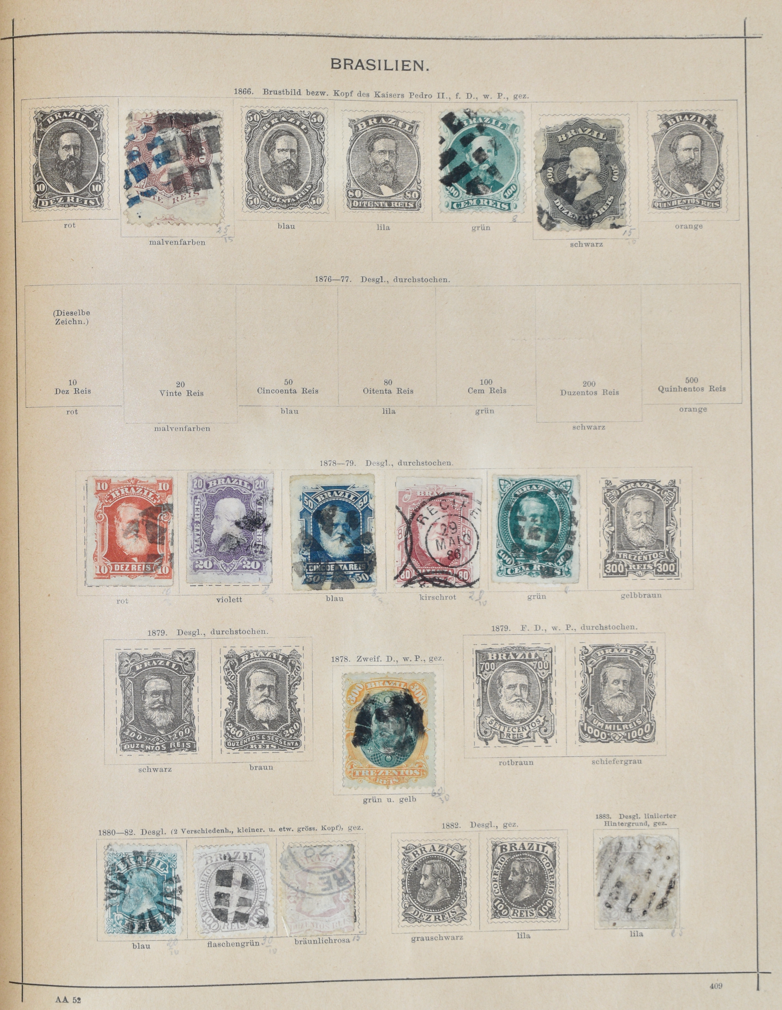 1892 (ca.) Gut erhaltenes Schaubek-Vordruckalbum für die Ausgaben bis 1891 weltweit, mit etlichen Marken in unterschiedlicher Erhaltung, meist aus Europa.