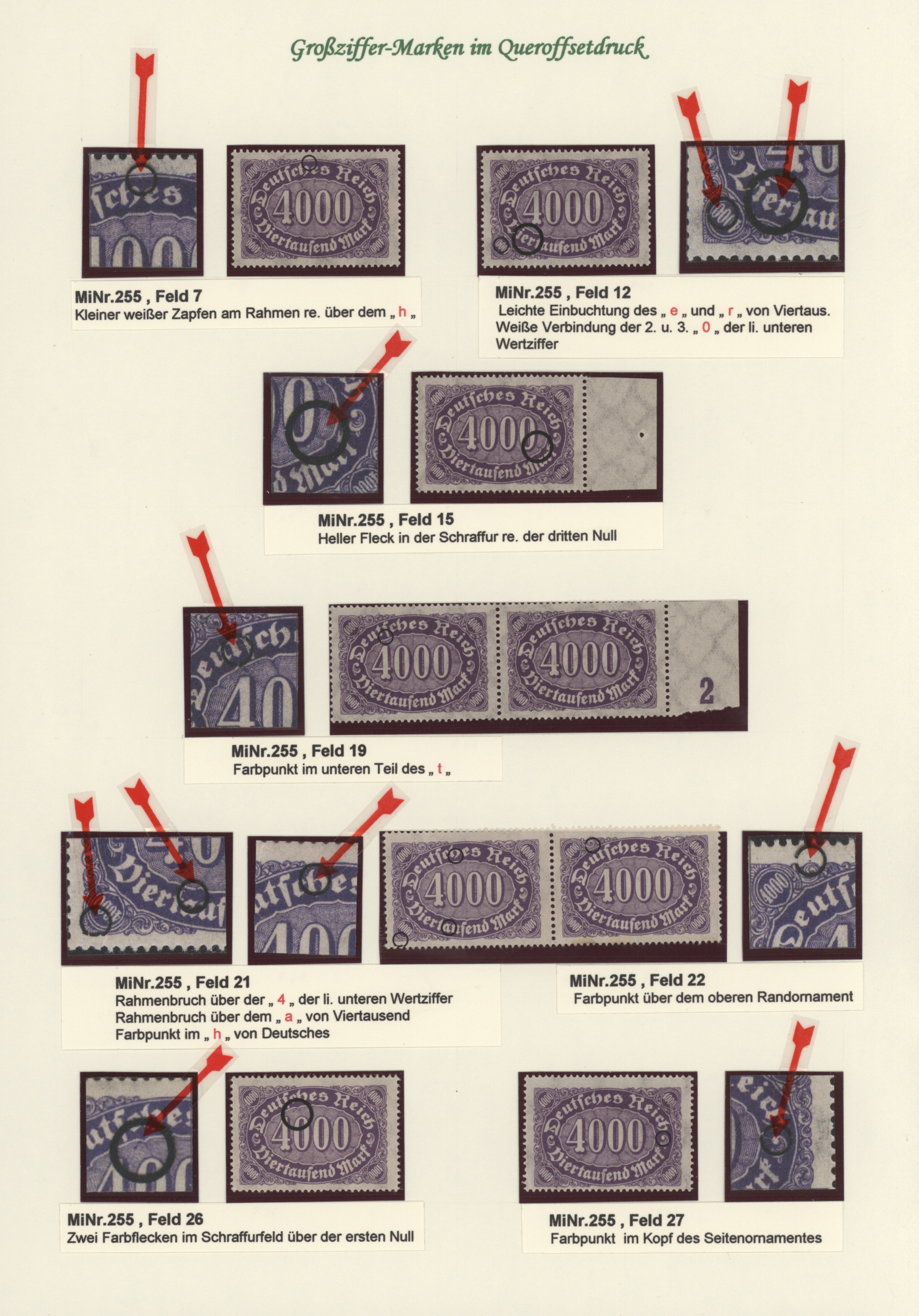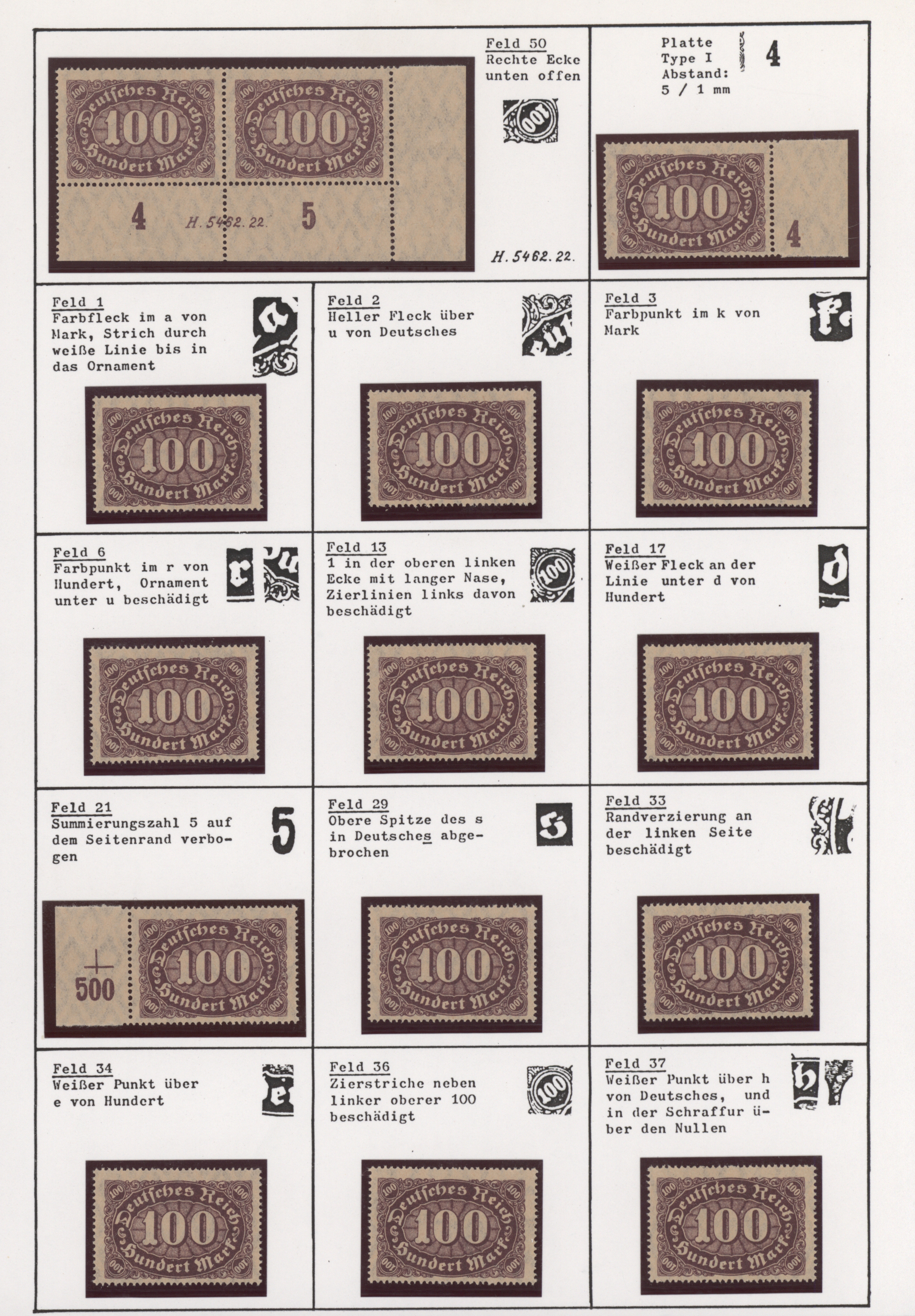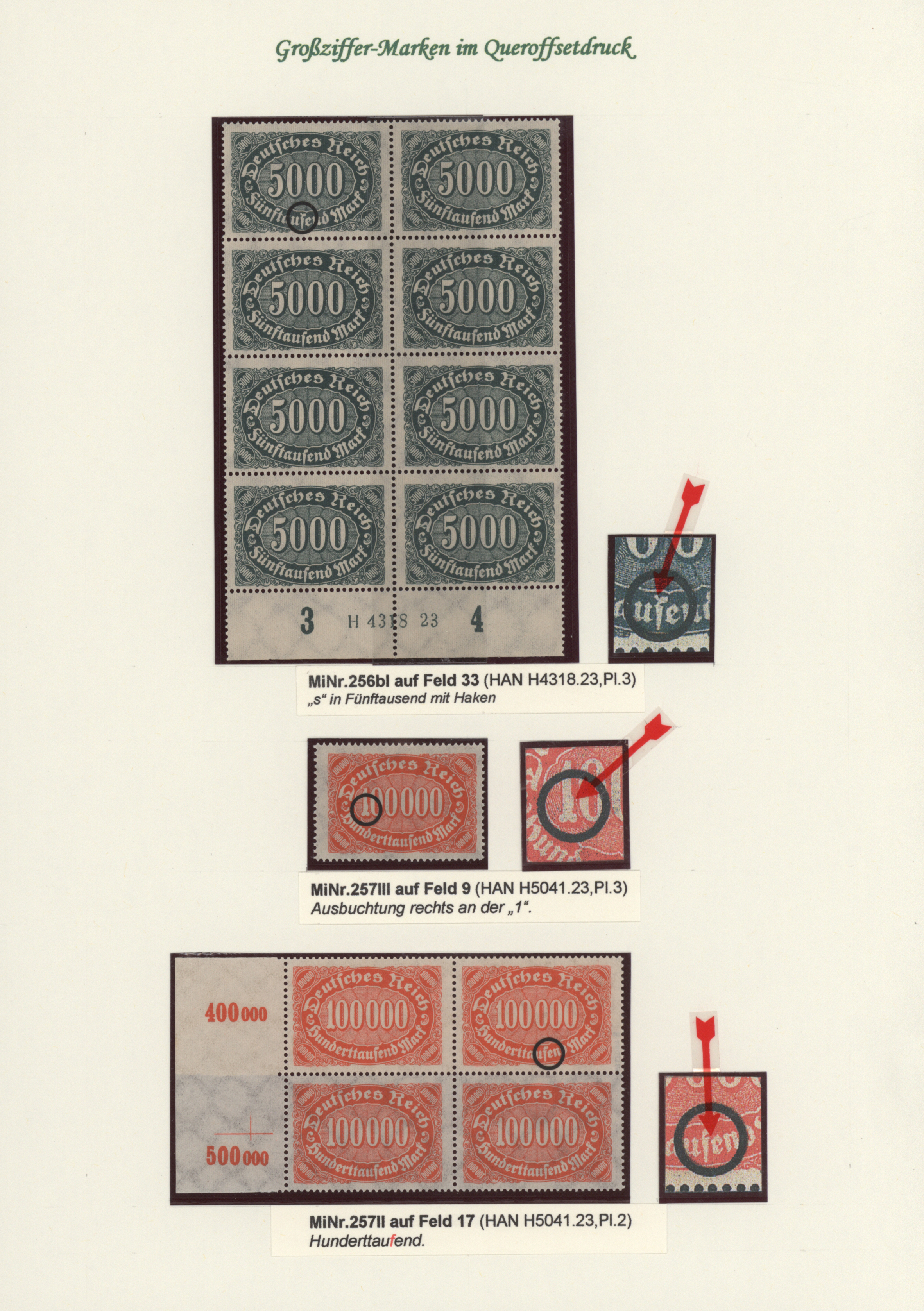 den Druckzufälligkeiten, Abarten und Plattenfehler der entsprechenden Bogenfelder nach Michel und den Infla-Berichten/Bücher von E. Nussbächer und Dr. H. Petschke. Überwiegend in postfrischer Erhaltung. Katalogwert n.A.d.E. ca. 4.000,- €.