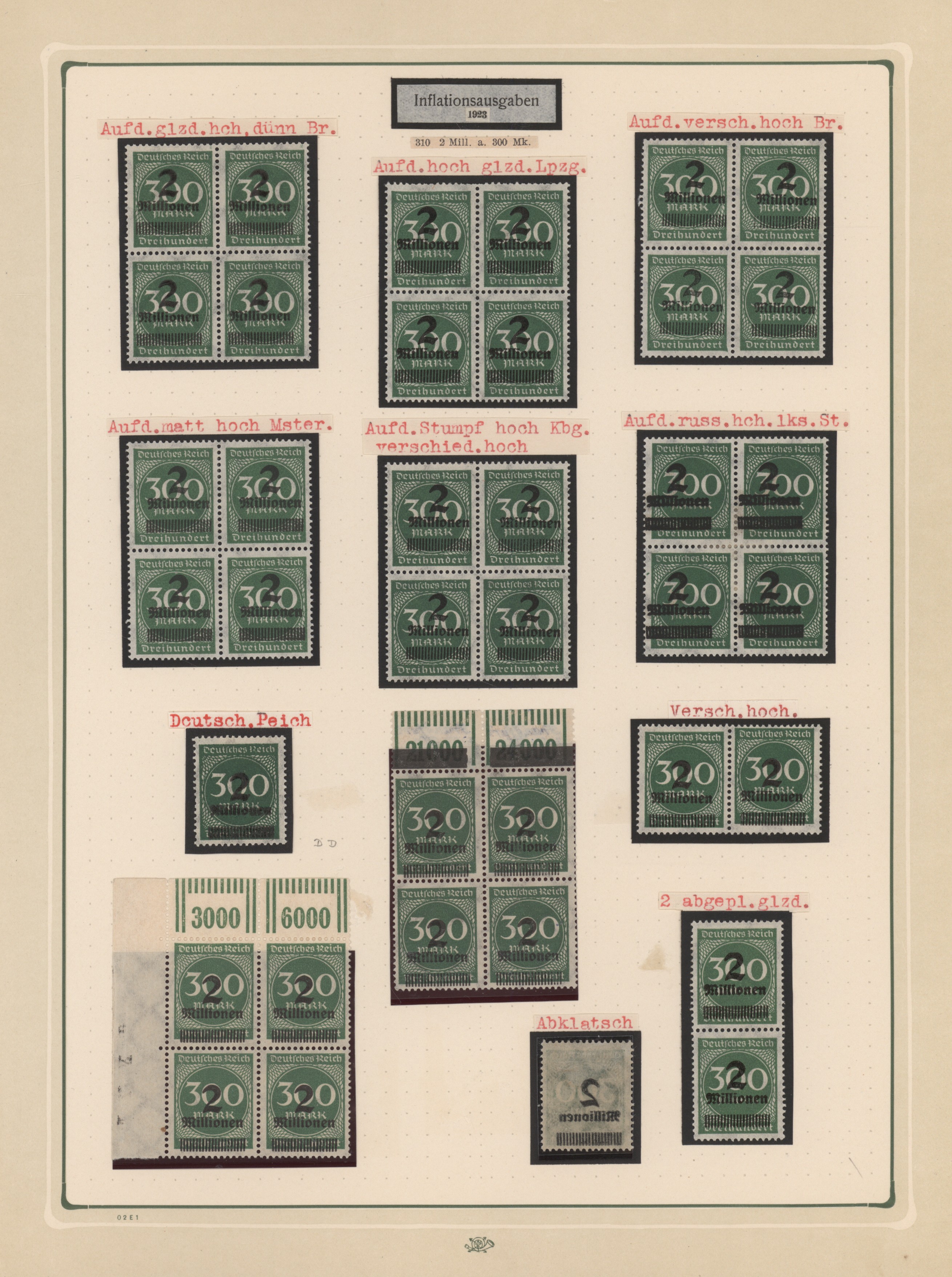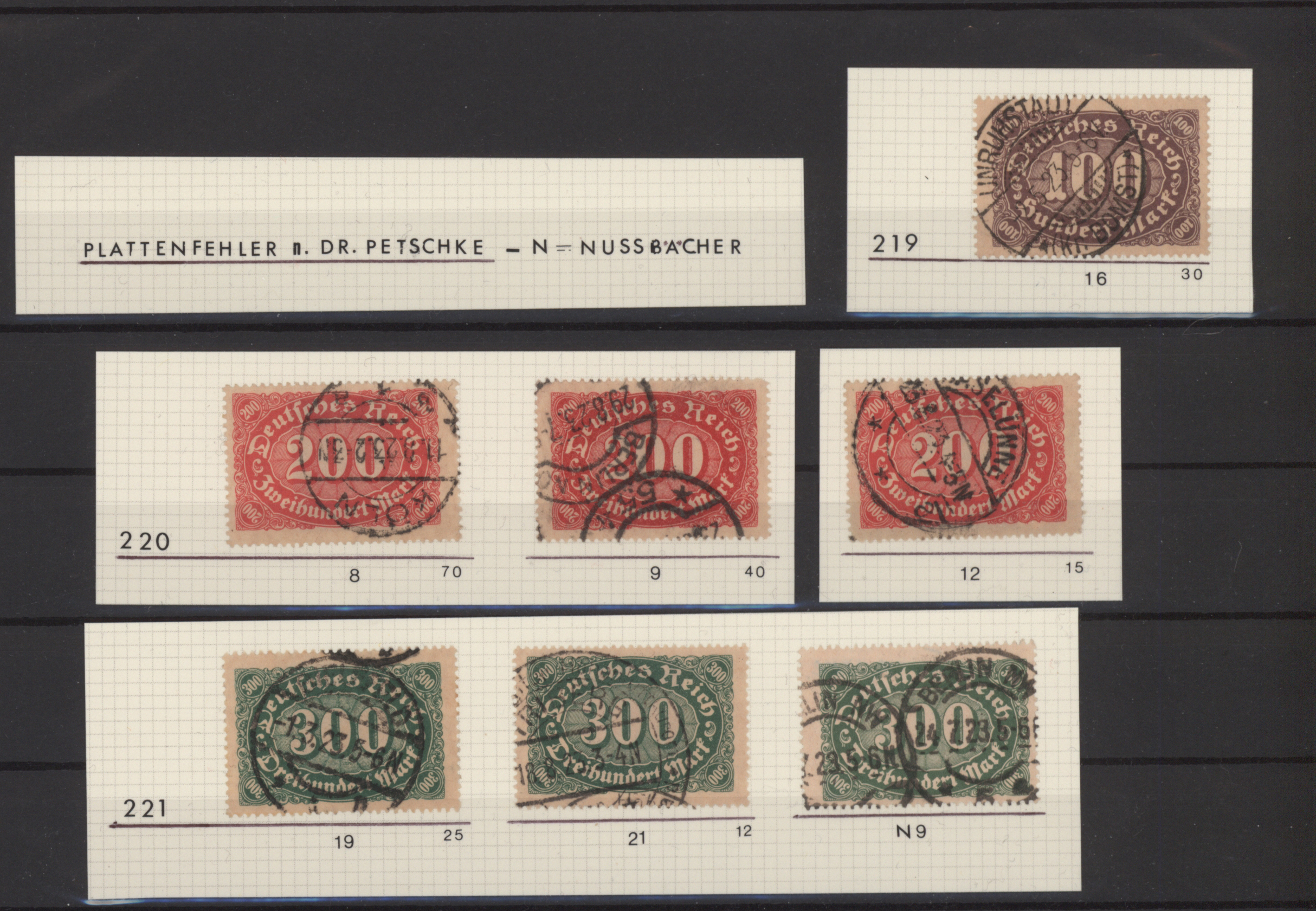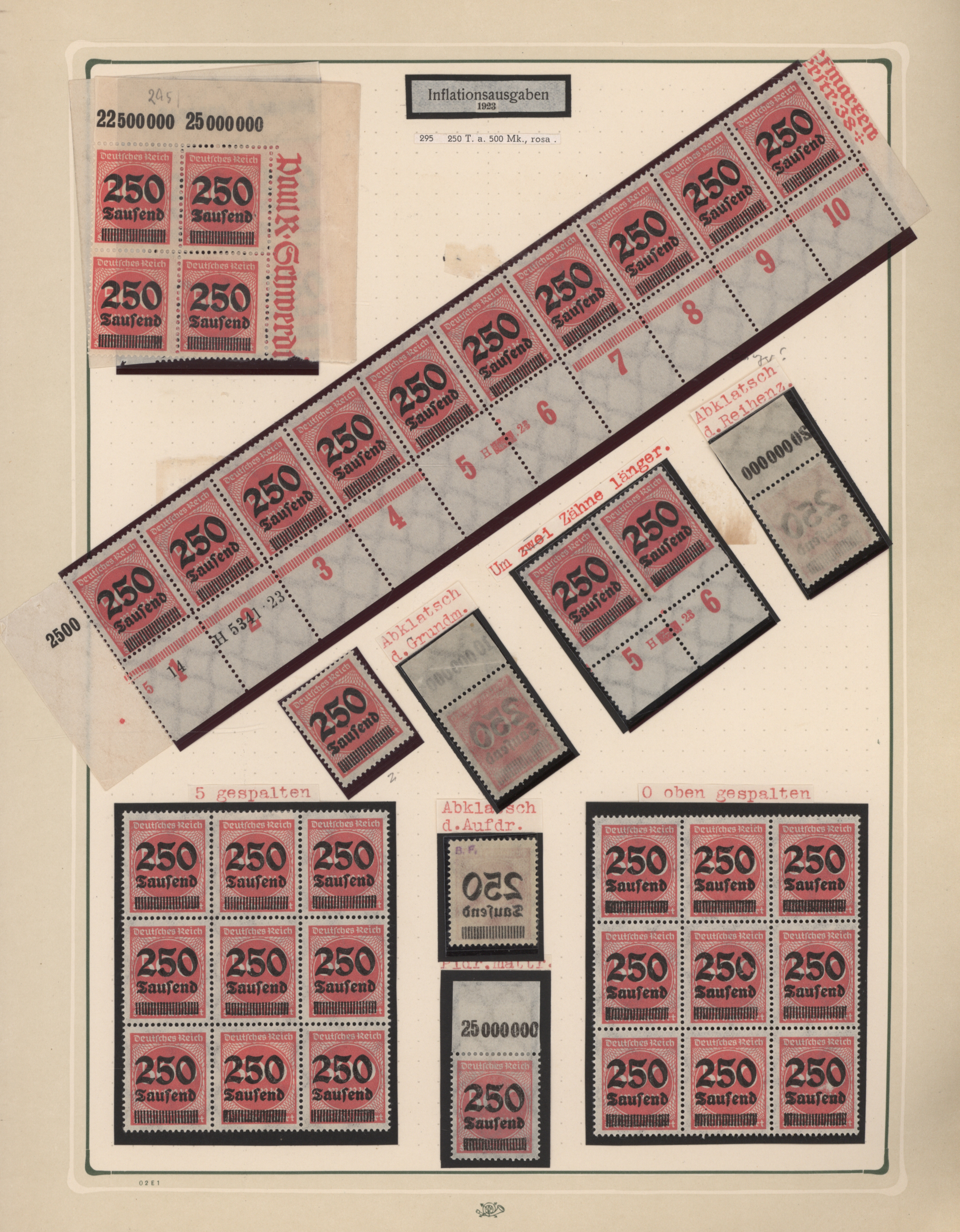 den Druckzufälligkeiten, Abarten und Plattenfehler der entsprechenden Bogenfelder nach Michel und den Infla-Berichten/Bücher von E. Nussbächer und Dr. H. Petschke. Überwiegend in postfrischer Erhaltung. Katalogwert n.A.d.E. ca. 4.000,- €.