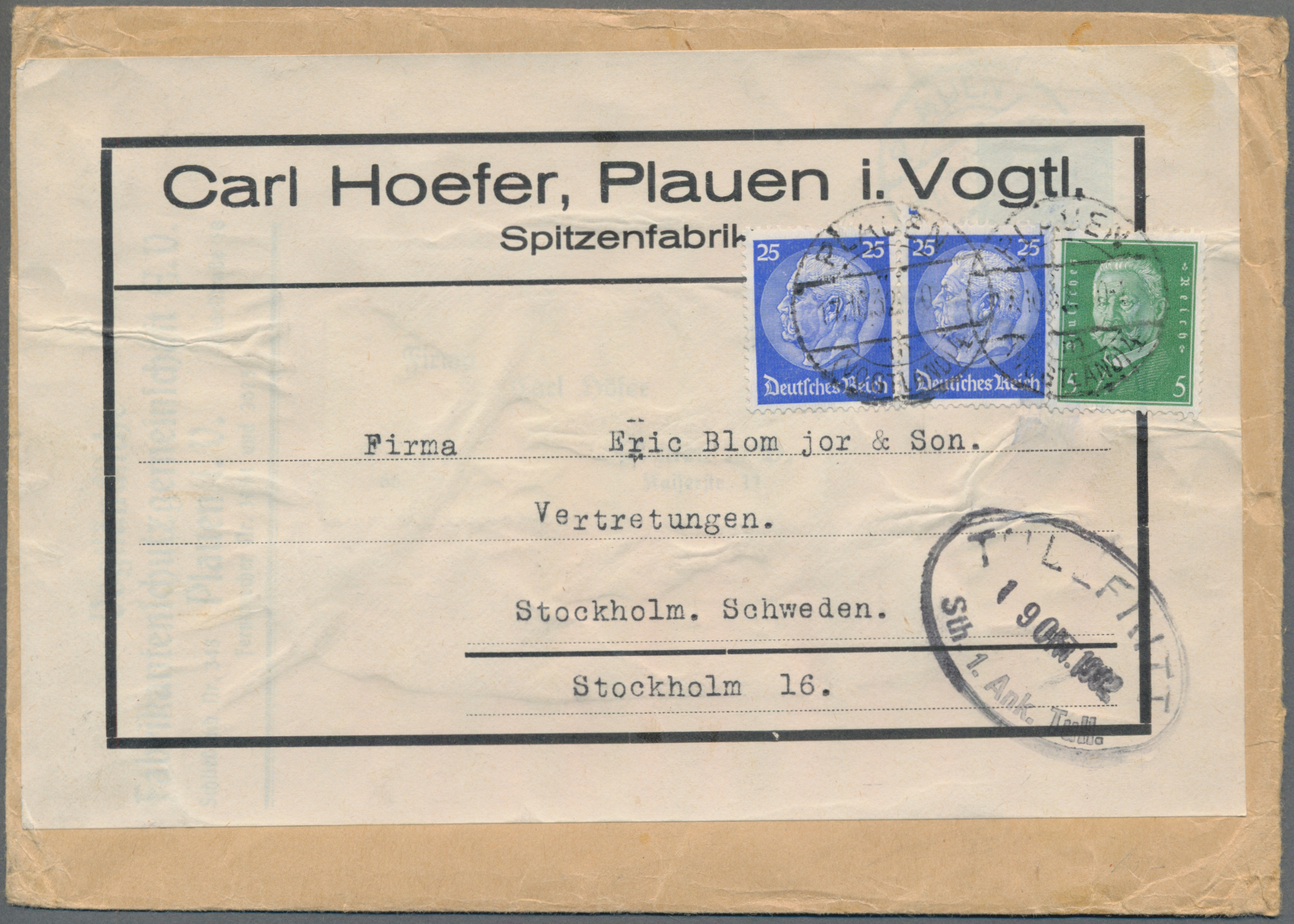 Garmisch-Partenkirchen", Zensurpost nach Schweden, Bedarfsbriefe Dt.Dienstpost, etc.