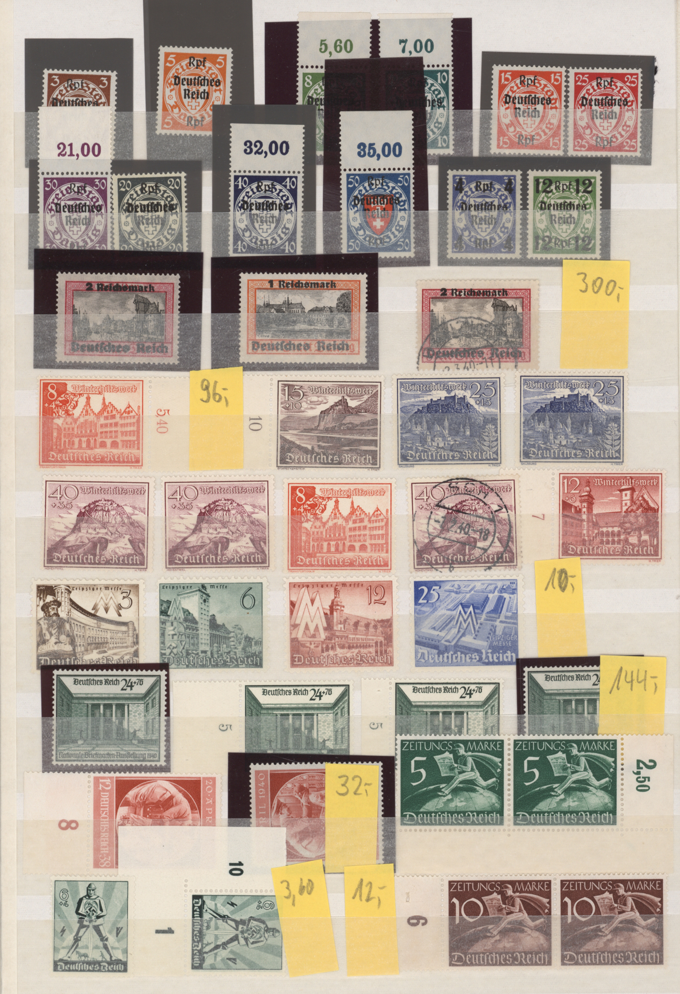 1924/1945, meist postfrische/ungebrauchte Zusammenstellung auf Steckseiten, ab etwas Weimar incl. MiNr. 344Y und Nothilfe, Hauptwert III.Reich incl.