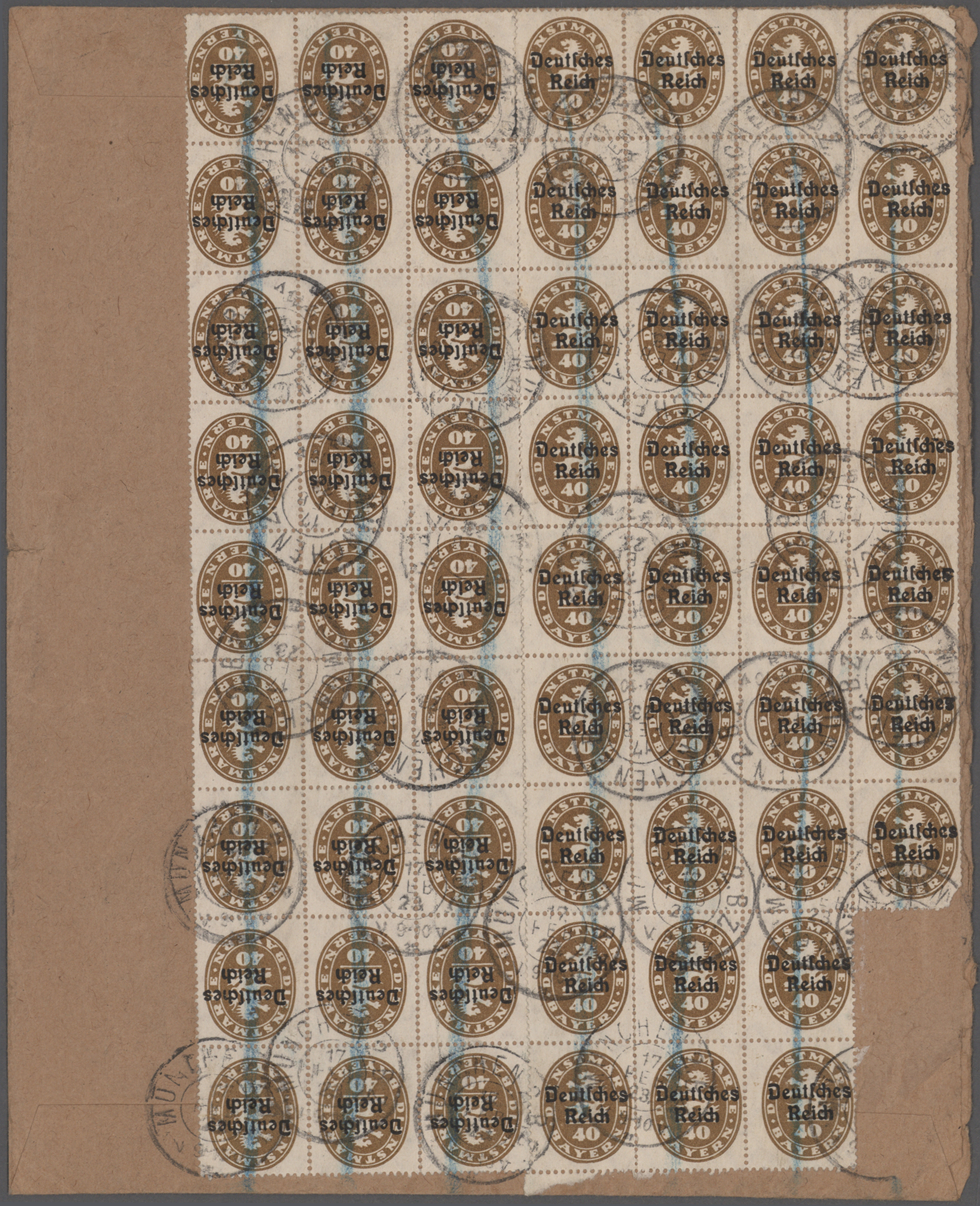 geklebt), reine Massenfrankatur von 40 Marken Dienst 47 portogerecht, anhängendes Bogenteil Dienst 91 incl. HAN, usw.