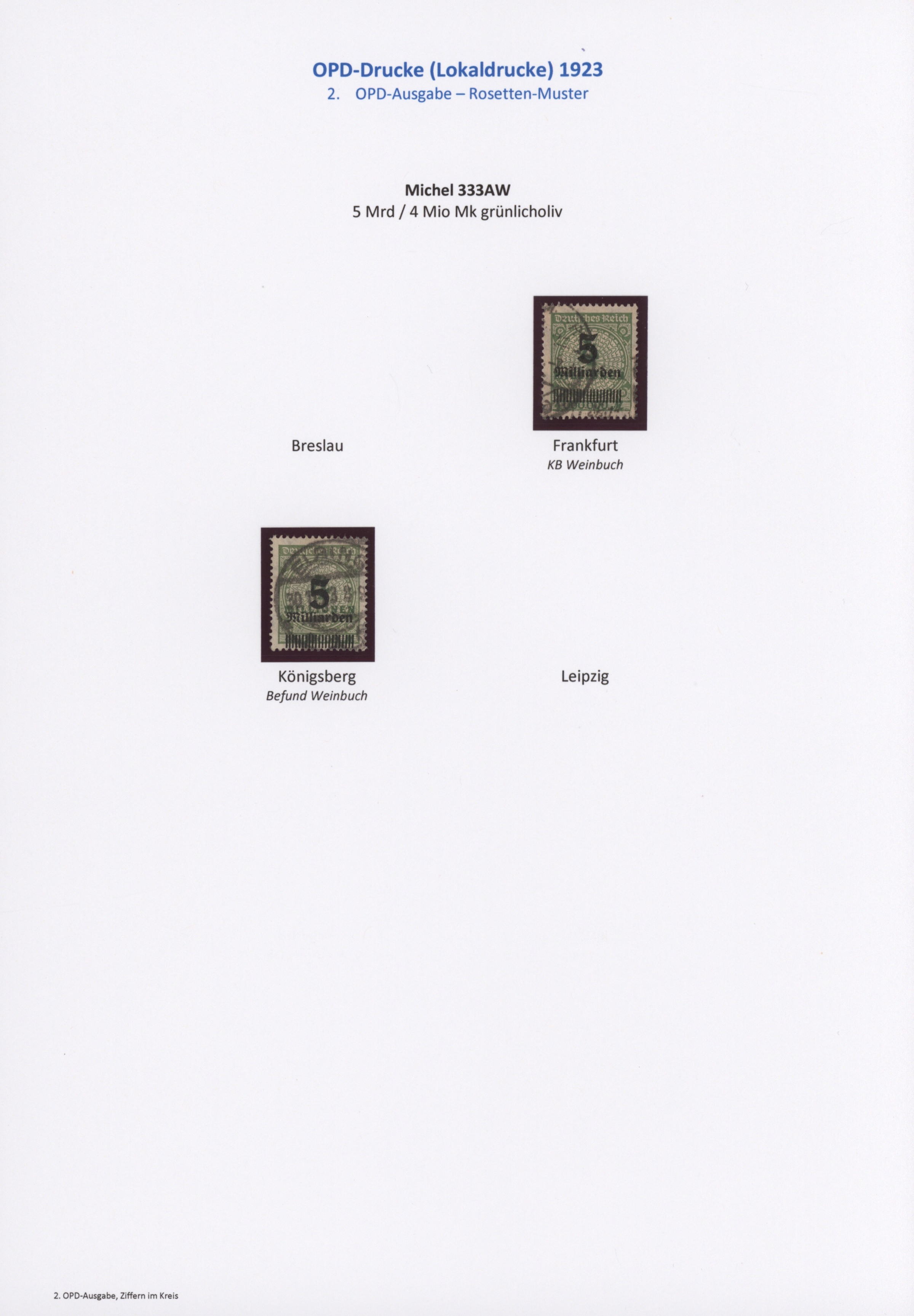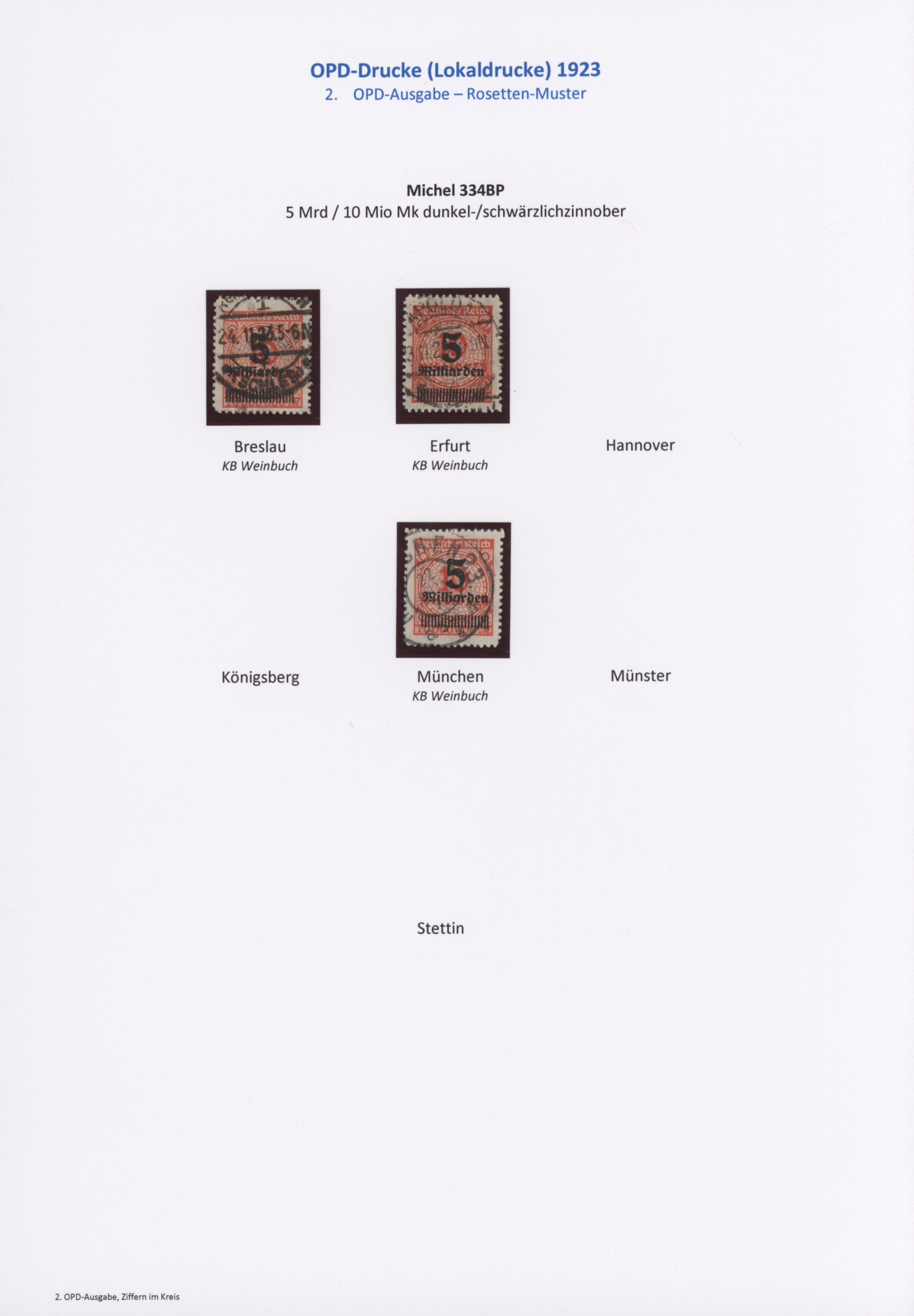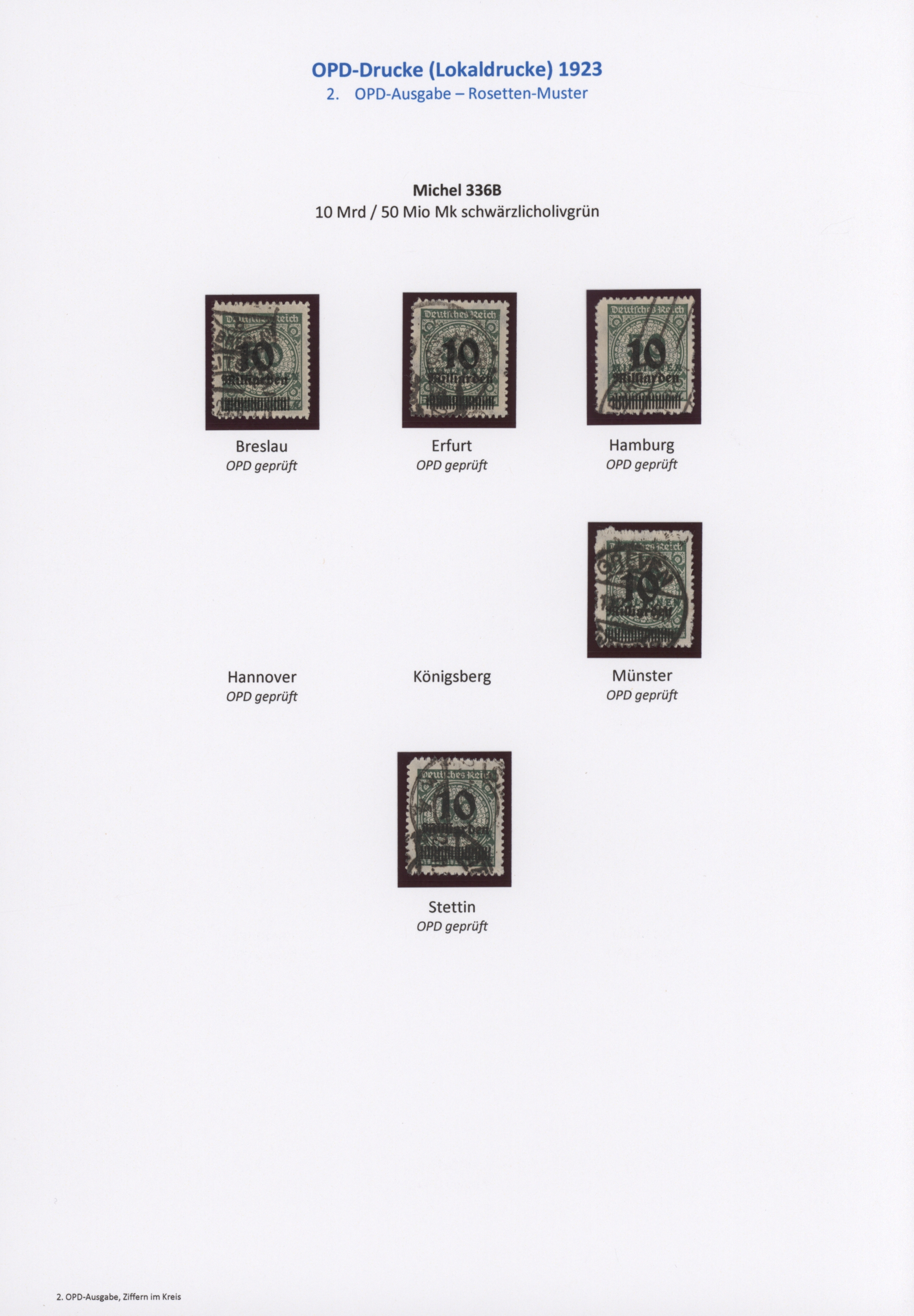 1923, großartige Spezialsammlung der OPD-Aufdrucke mit insgesamt ca. 1.250 Marken, ausstellungsmäßig auf Albenblättern im Klemmbinder aufgezogen