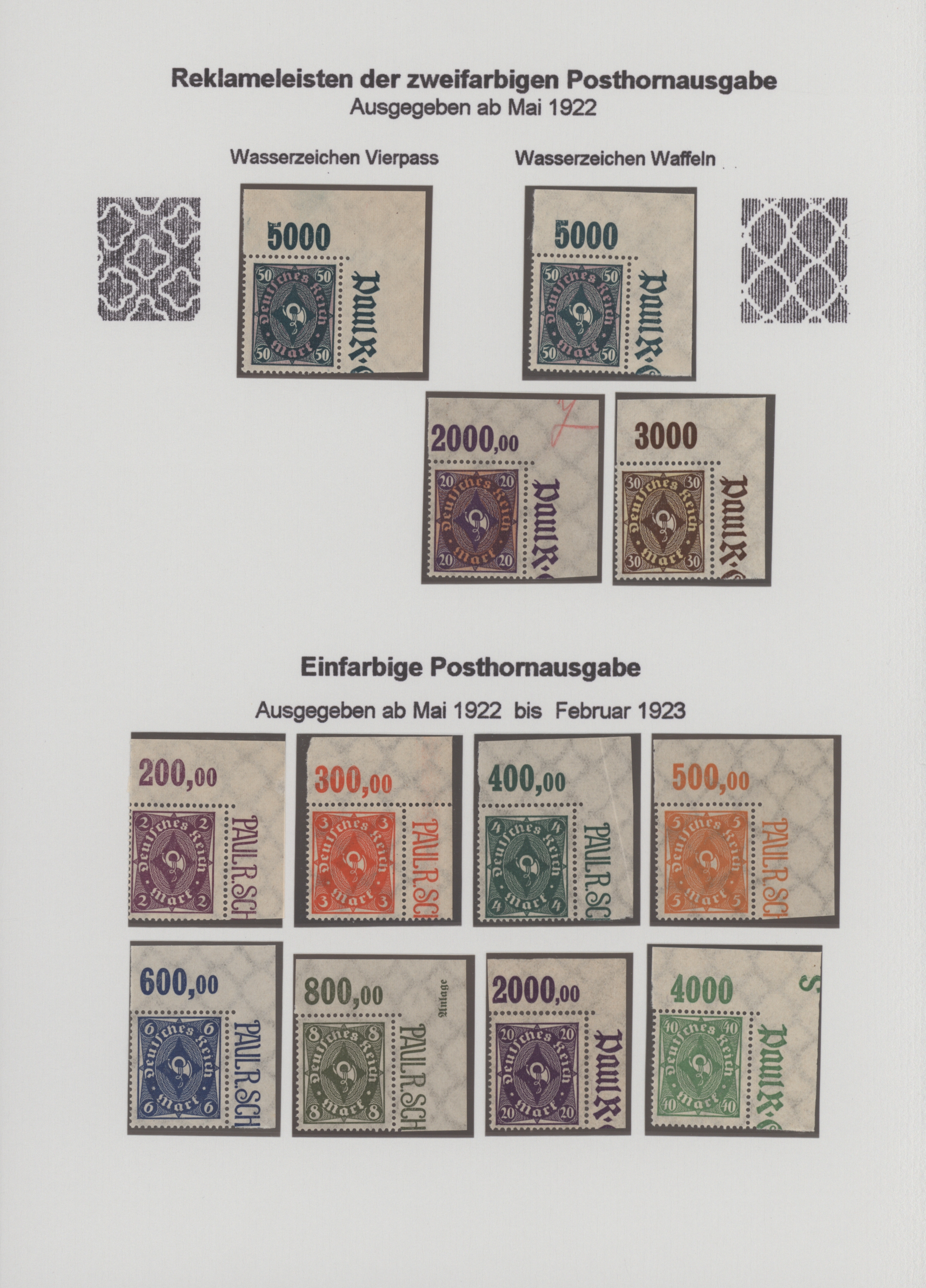 1922/1923, Freimarken "Posthorn", vorwiegend postfrische Spezialsammlung von ca. 800 Marken aller Wertstufen, dabei Einheiten, Oberränder (MiNr. 209 mit
