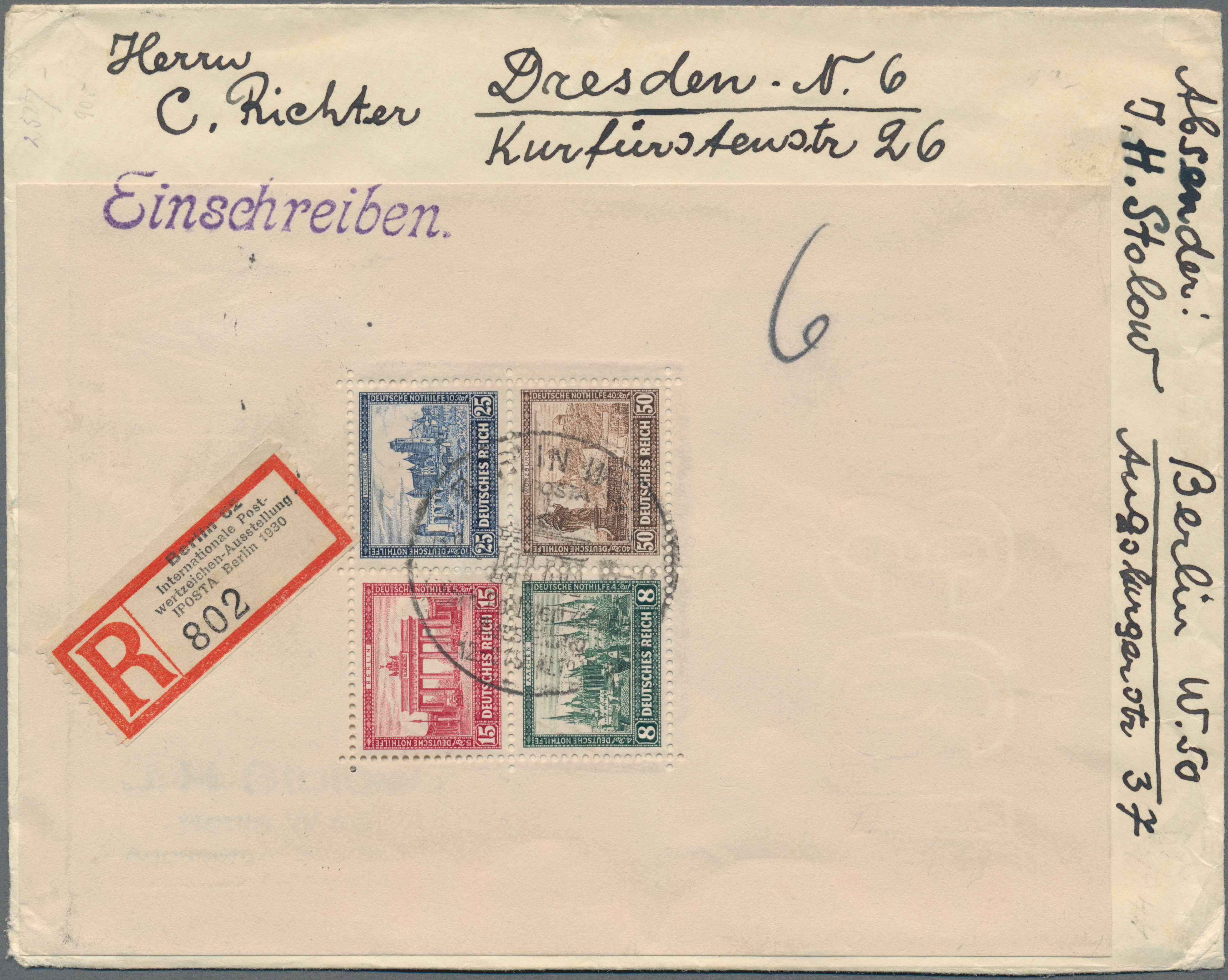 1930, Iposta-Block, Partie mit zweimal dem Herzstück lose gestempelt und einmal auf R-Brief, sowie einmal der Block auf R-Brief, alles entwertet mit