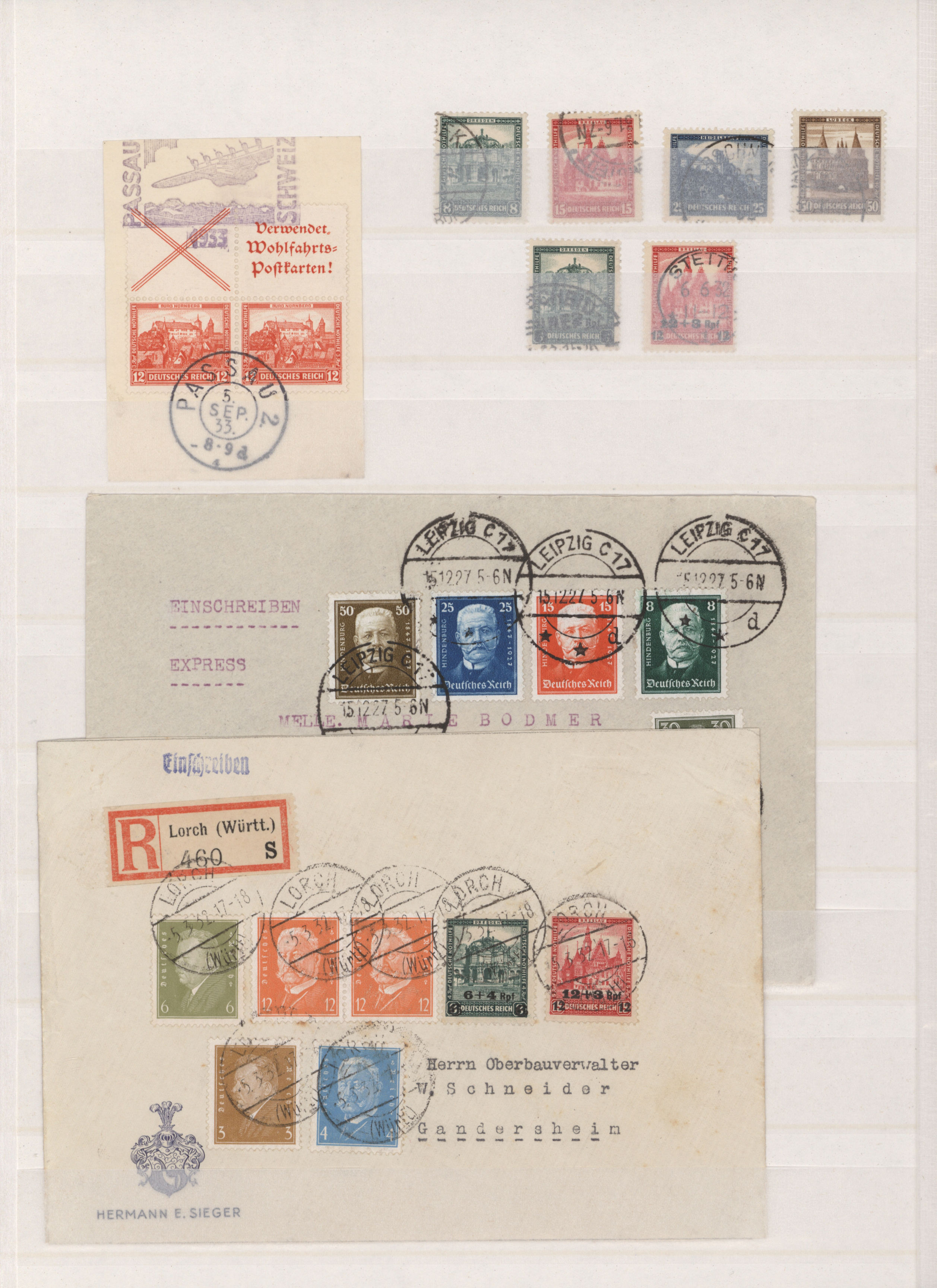 1933/1934, Sammlung von 33 Briefen und Karten mit Frankaturen ex MiNr. 479/543, dabei Auslandspost, 1 RM Chicagofahrt MiF, Marken aus Nothilfe-Block mit