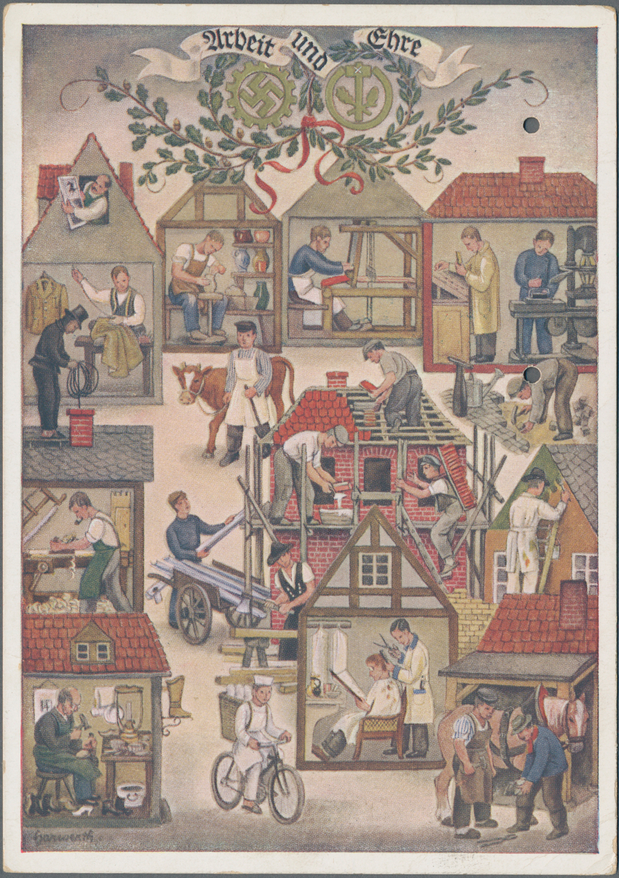 1938/1945, Konvolut mit einschlägigem Material, dabei Hitler-Bildkarten, Zeitungen 26.11.42 und 20.4.45 (nur Titel), ferner Druck der 24seitigen