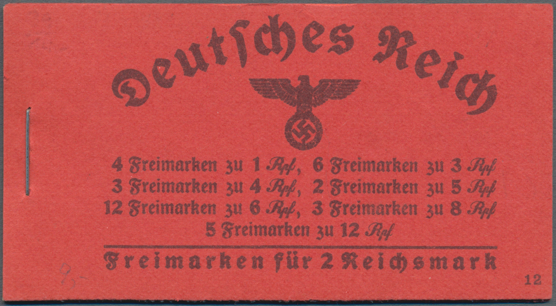 1938, 2 Reichsmark Markenheftchen "Hindenburg", MH 37.1 Befund "postfrisch, echt, einwandfrei." MH 37.2 Kurzbefund "ungebraucht, Deckelrückseite