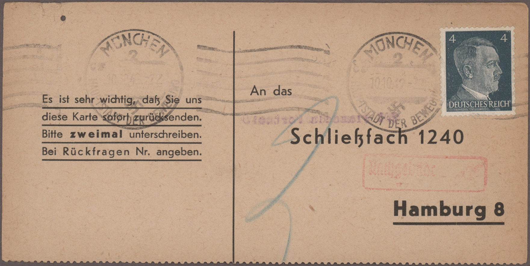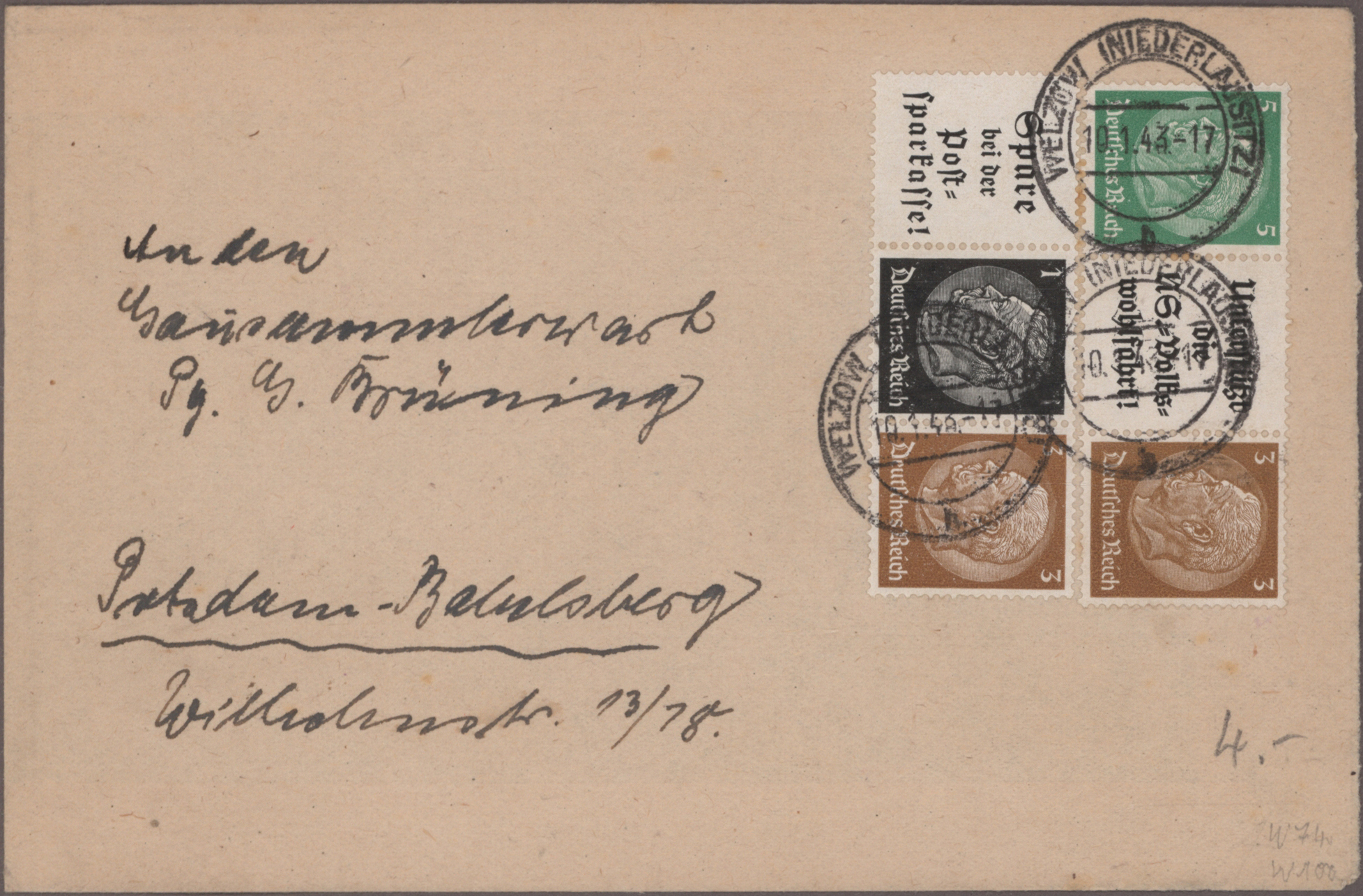 1942/1943, Sammlung von 46 Briefen und Karten mit Frankaturen ex MiNr. 811/830, dabei Auslandspost, Einschreiben, Luftpost, Zensur, Braune und Blaue