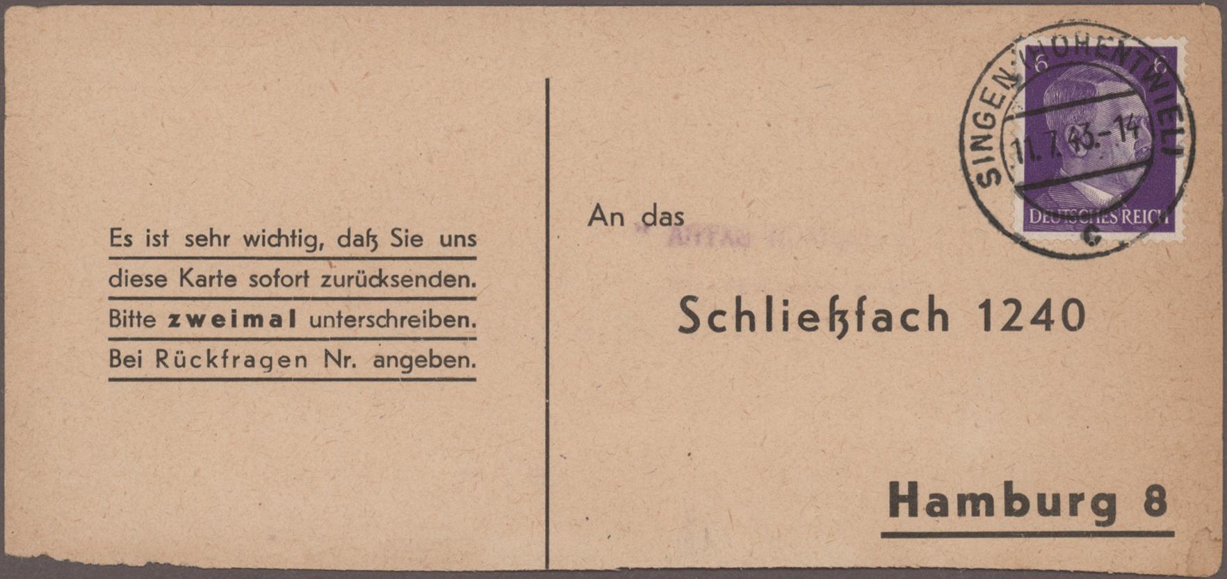 1939/1941, Sammlung von 51 Briefen und Karten mit Frankaturen ex MiNr. Z 738/763, dabei bessere Einzelfrankaturen, Auslandspost, Einschreiben, vier