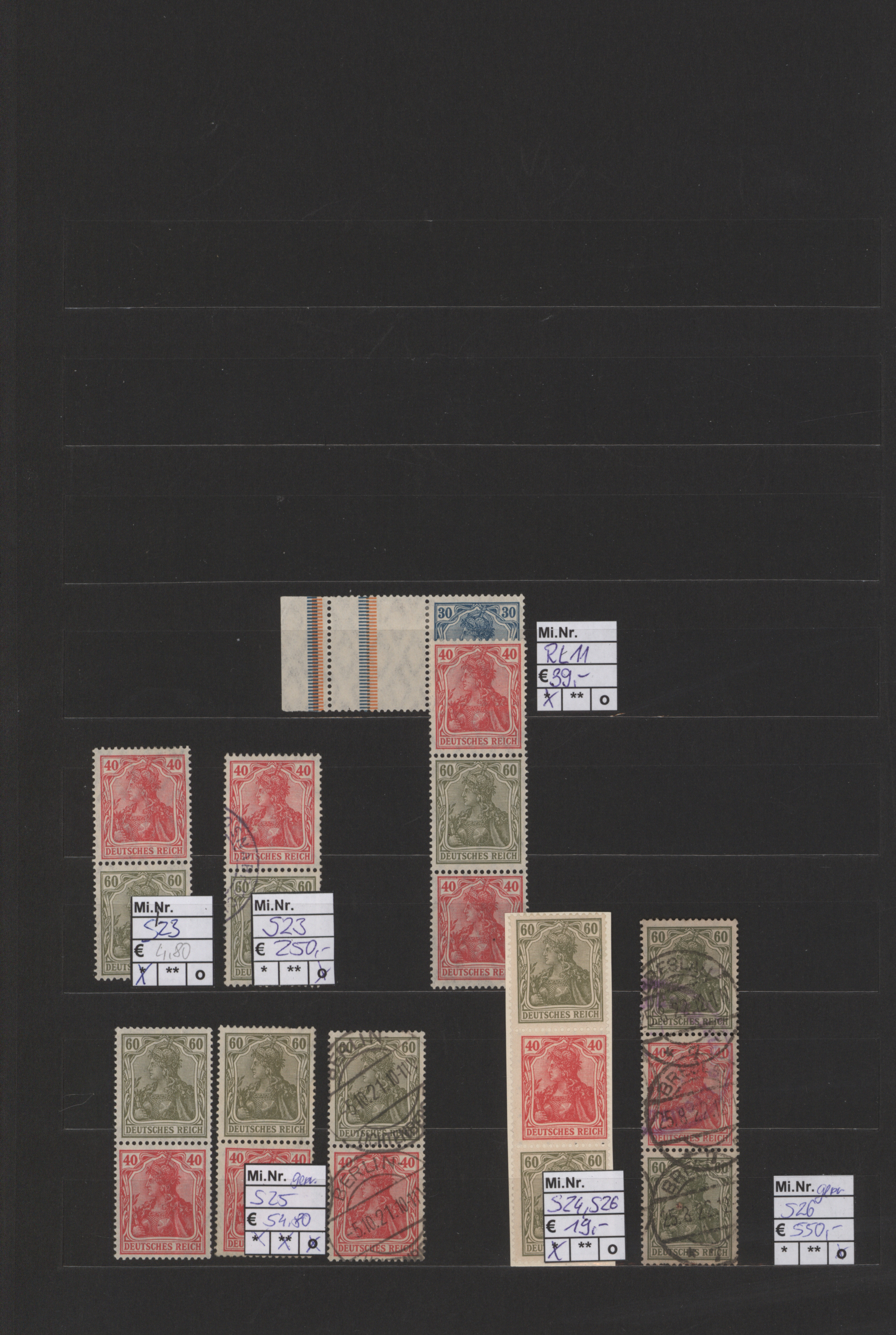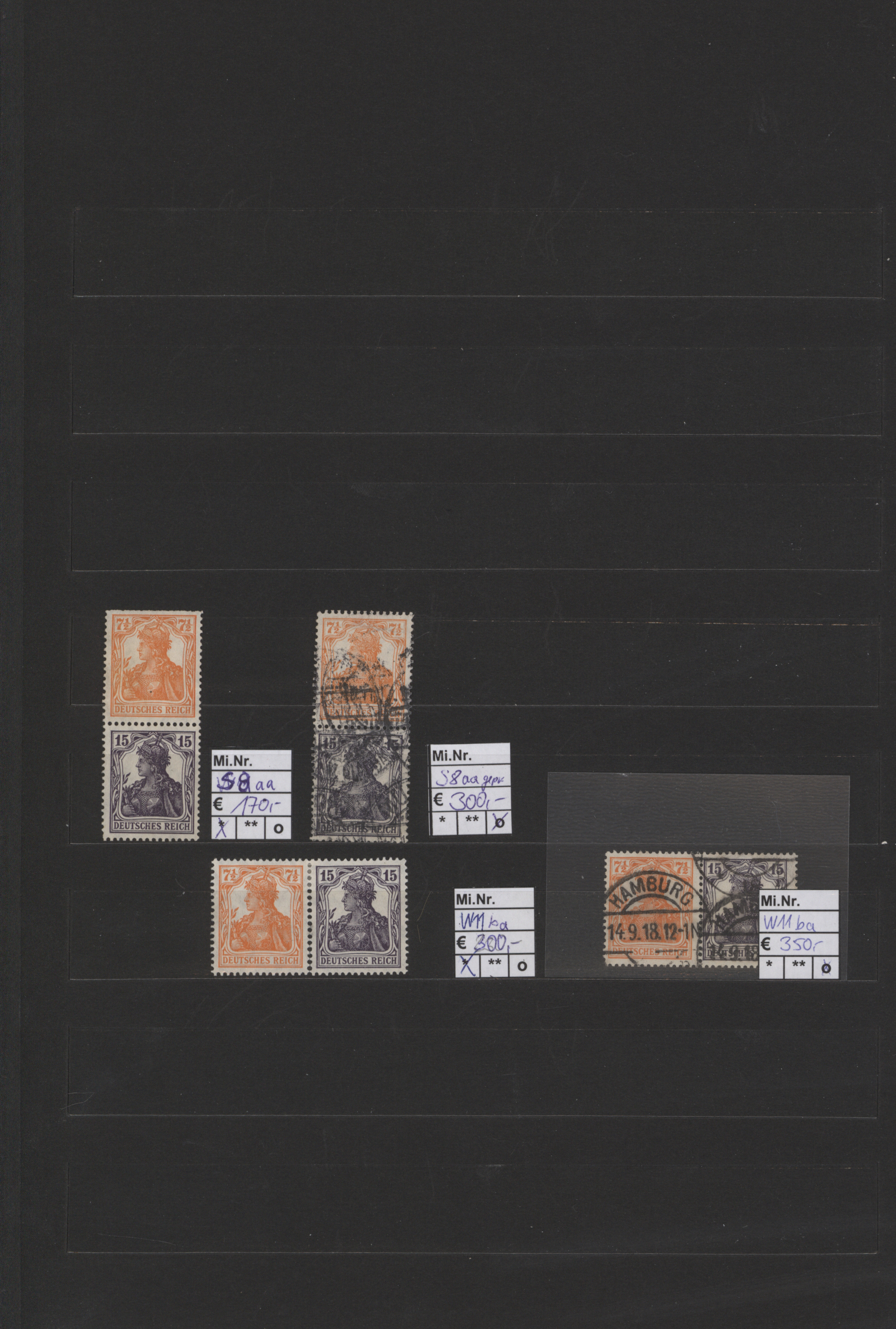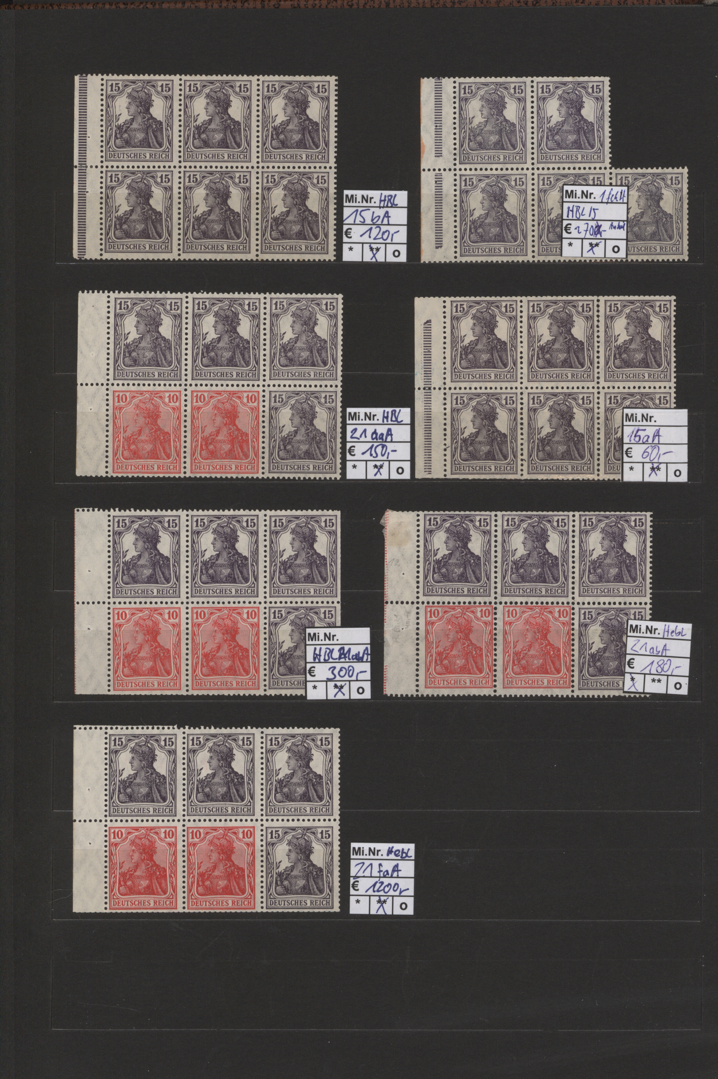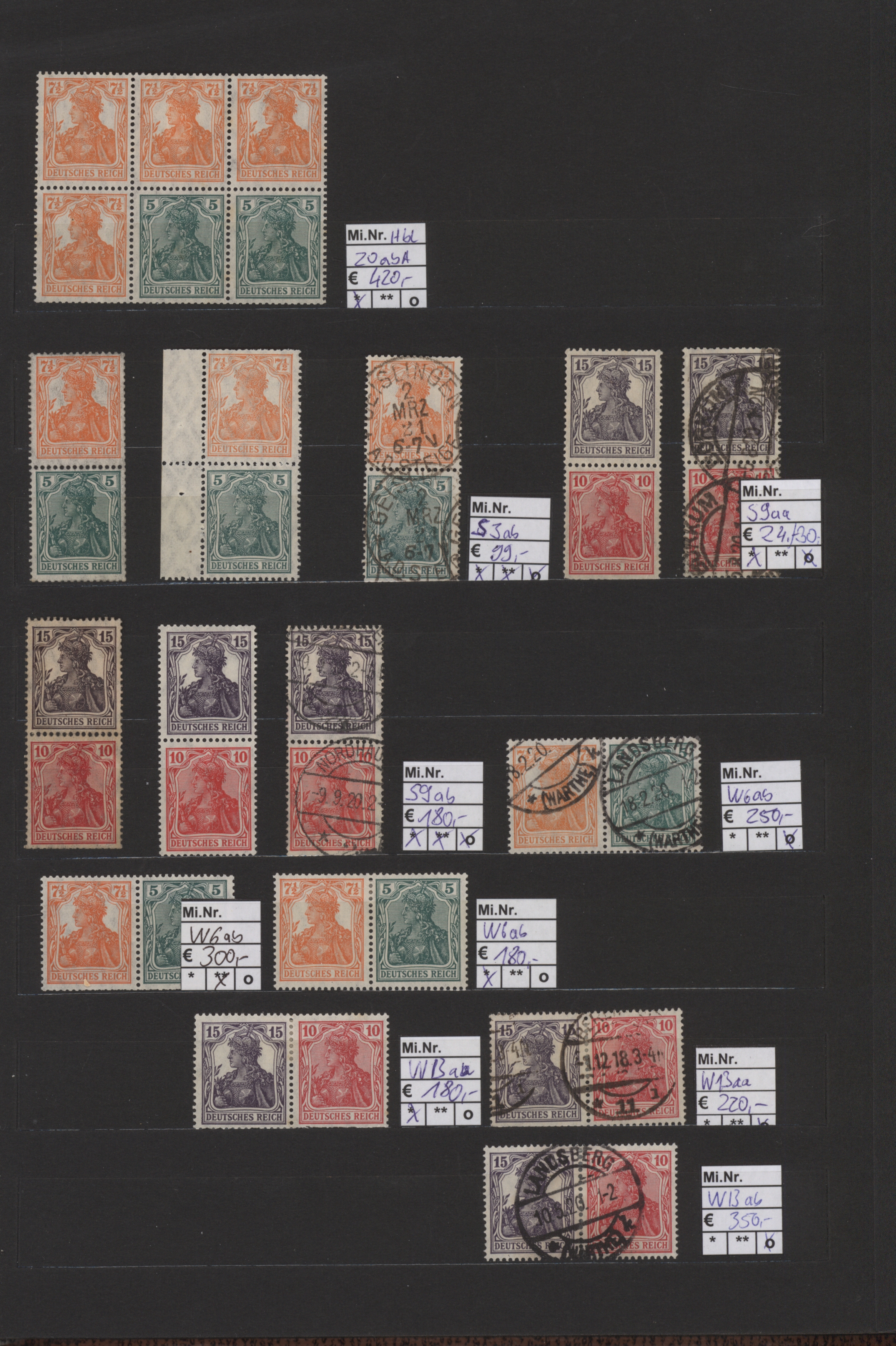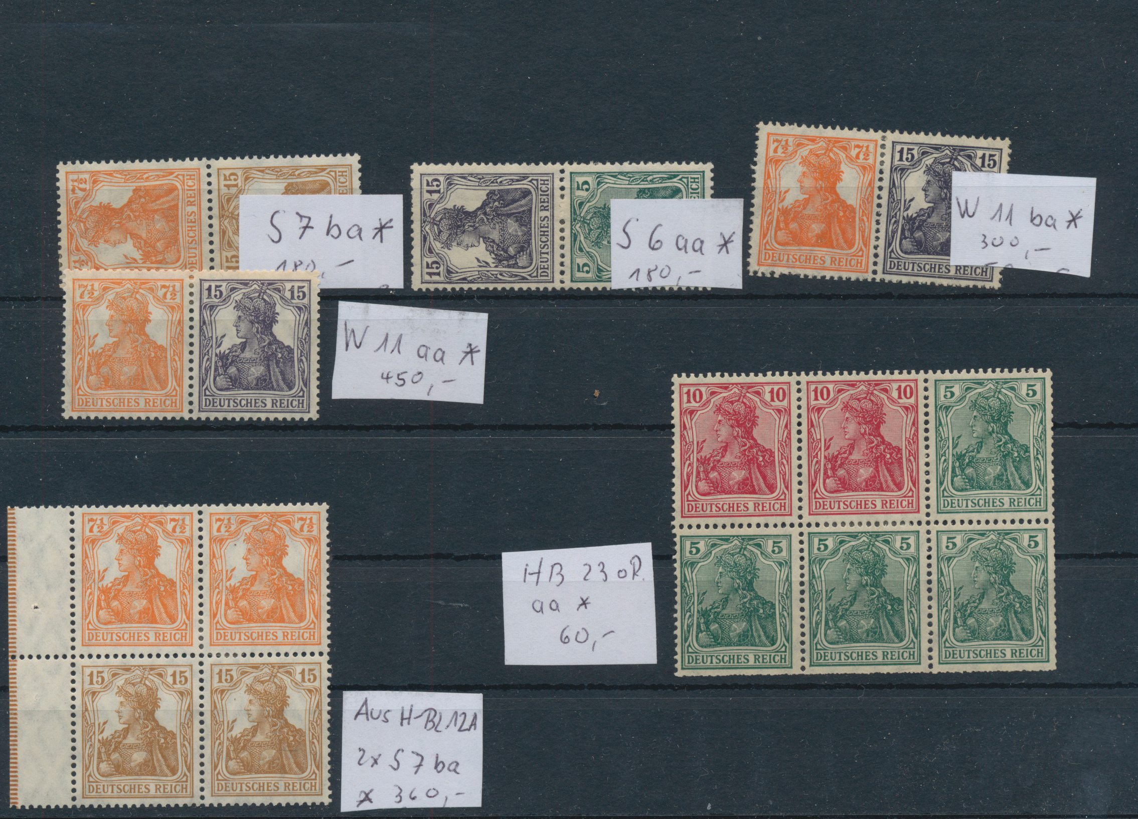 1916/1920, Lot mit 15 verschiedenen ungebrauchten Germania-Zusammendrucken mit einigen besseren, dabei u.a. H-Bl. 19, Mi. ca. 4000.-