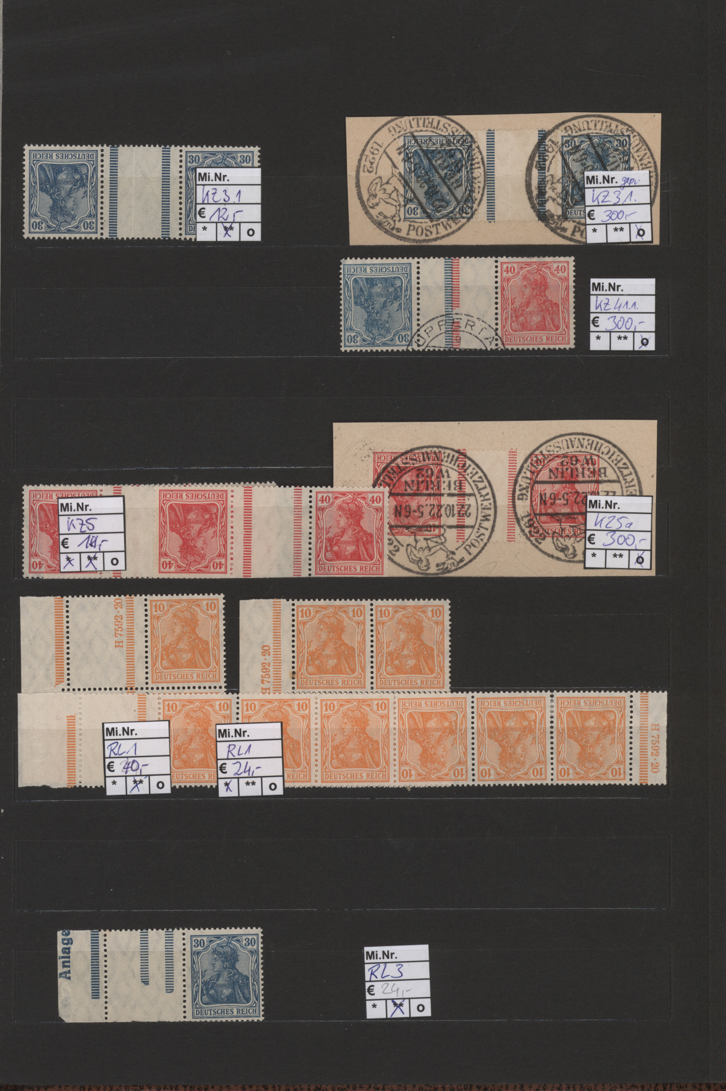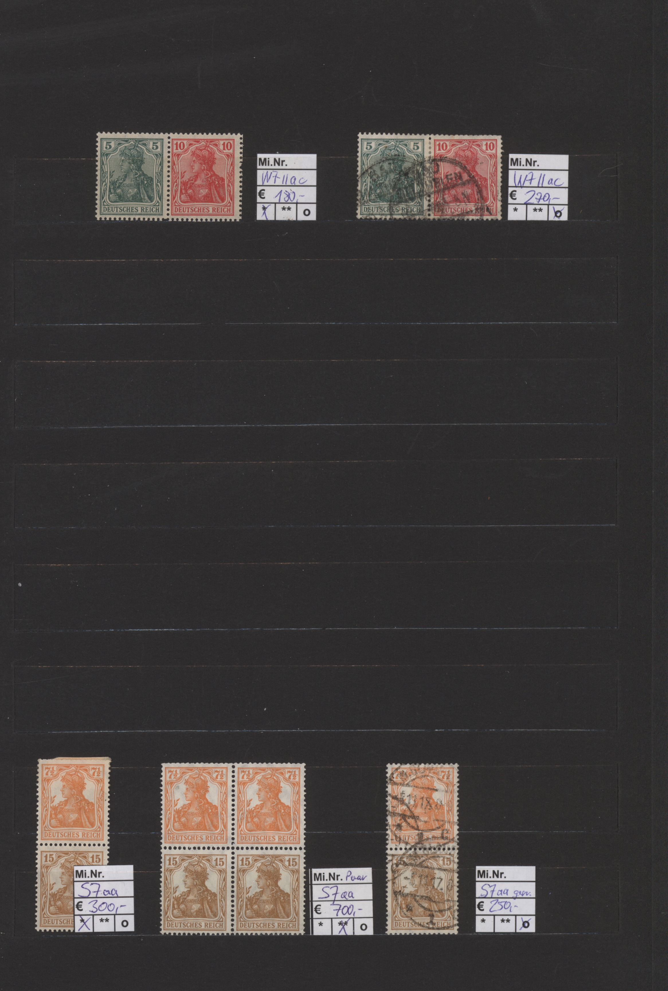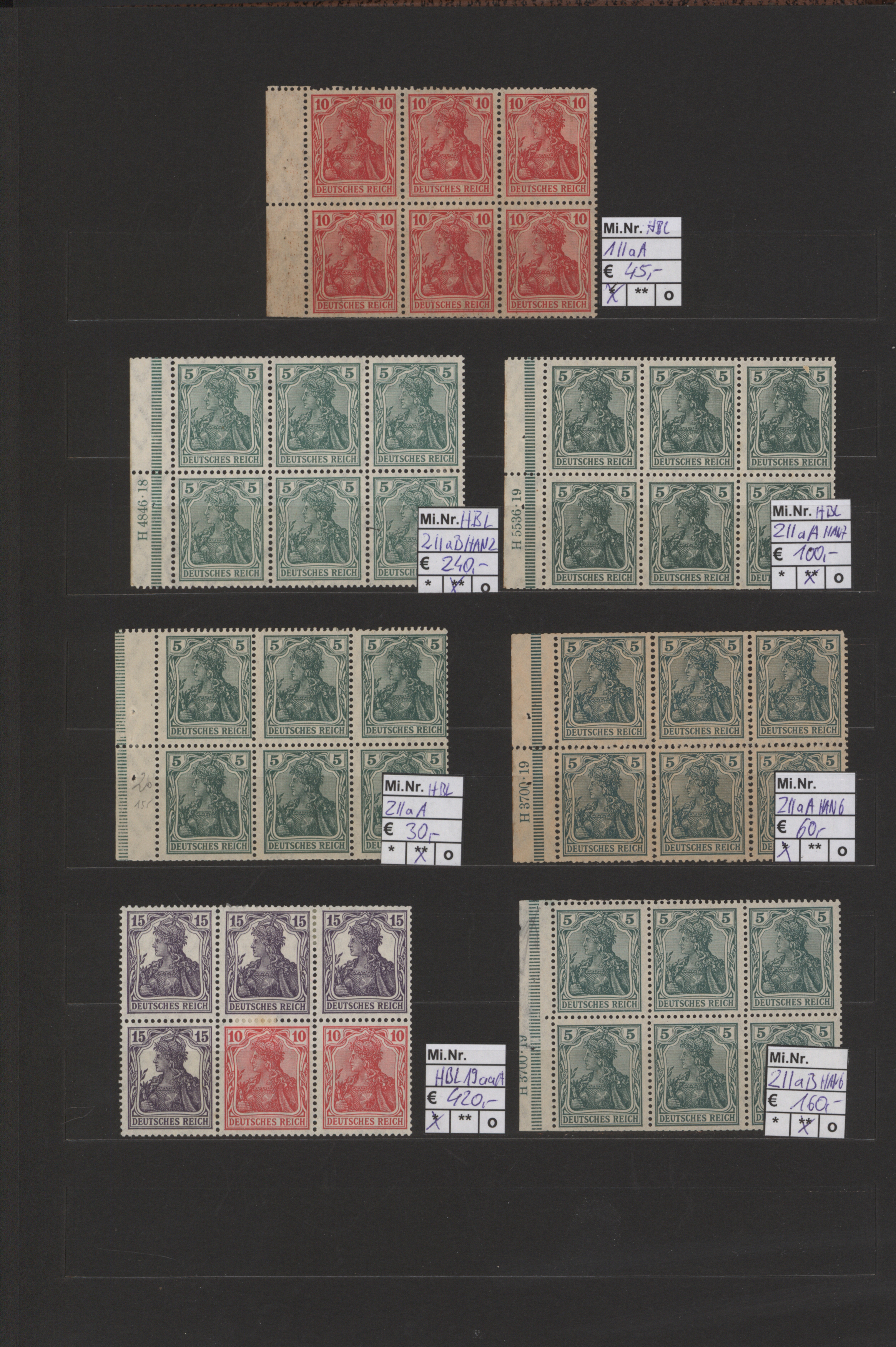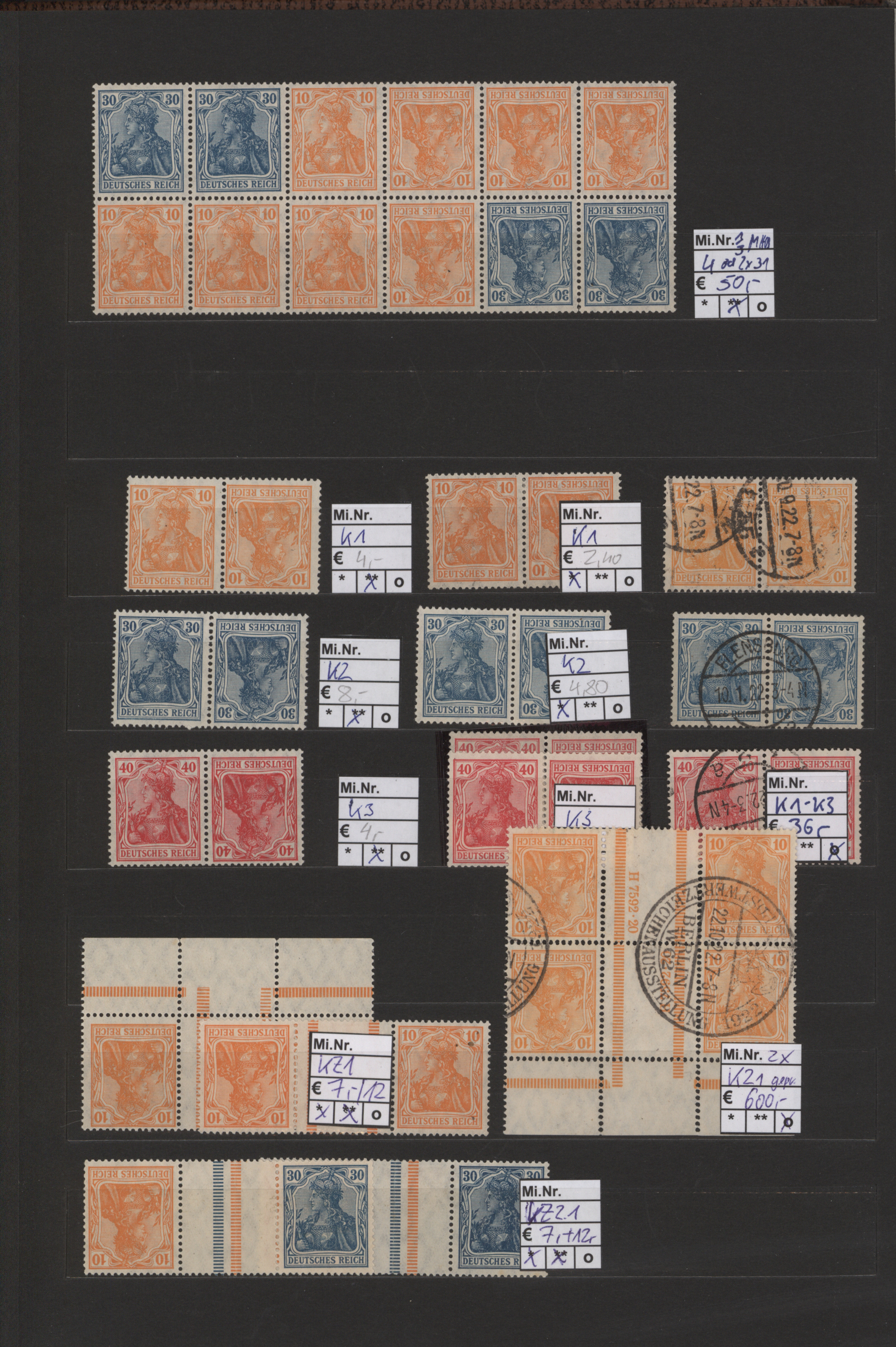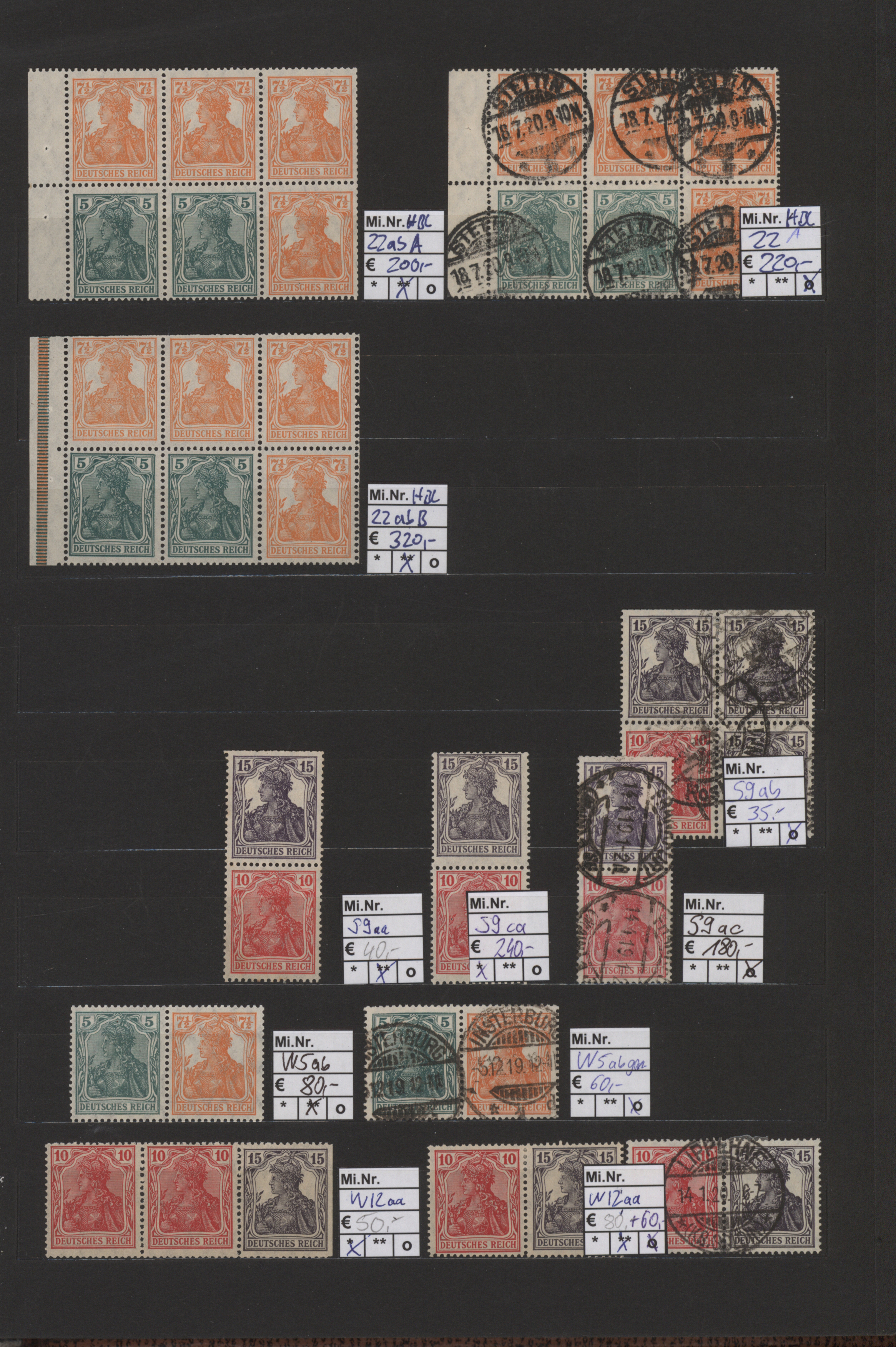 1916/1920, Lot mit 15 verschiedenen ungebrauchten Germania-Zusammendrucken mit einigen besseren, dabei u.a. H-Bl. 19, Mi. ca. 4000.-