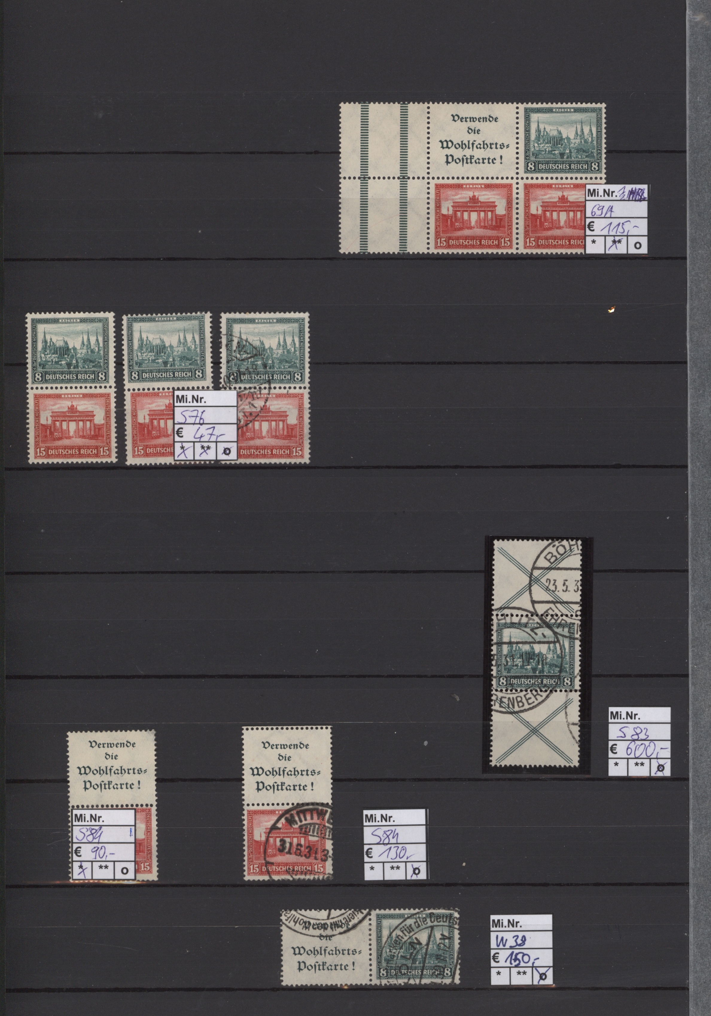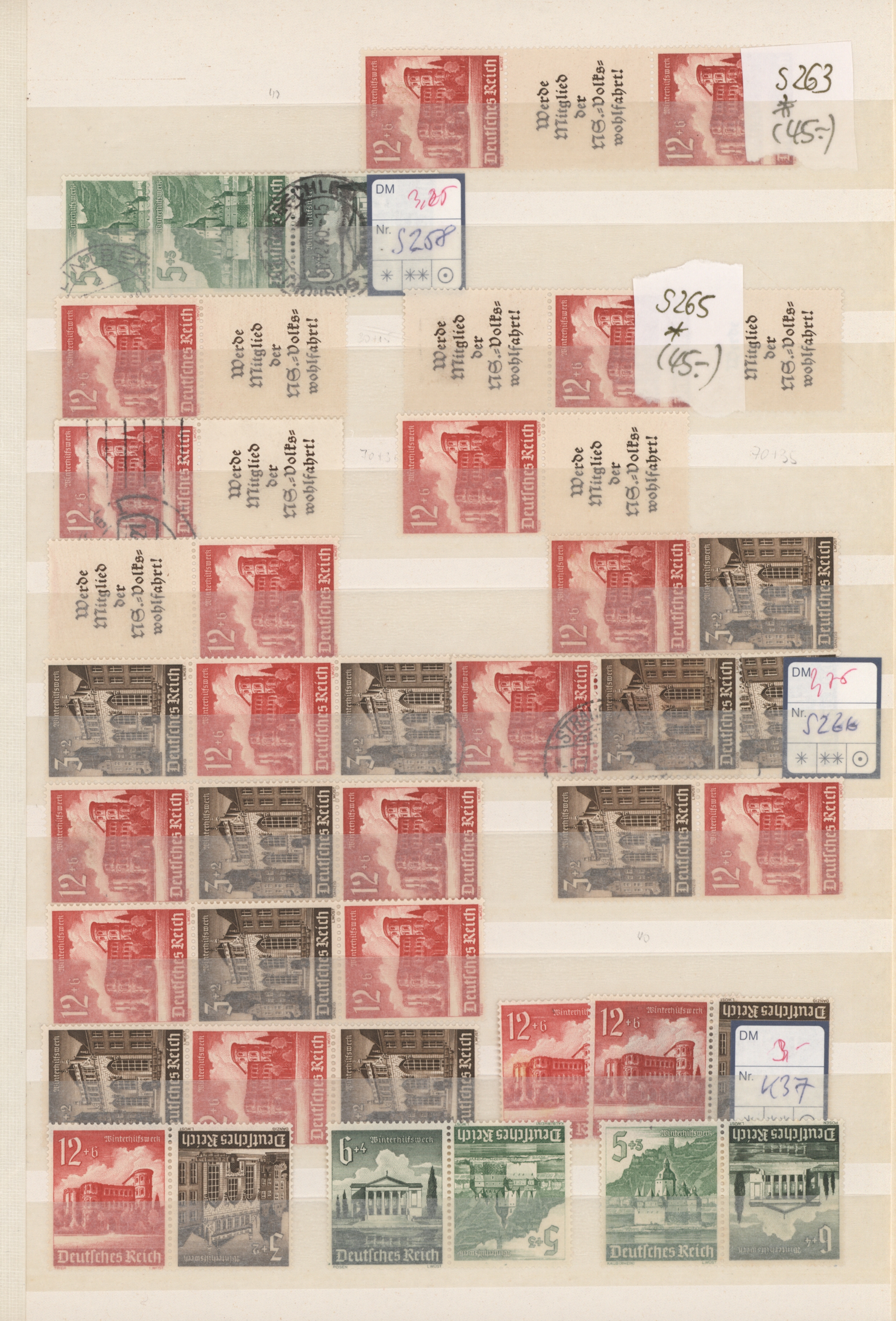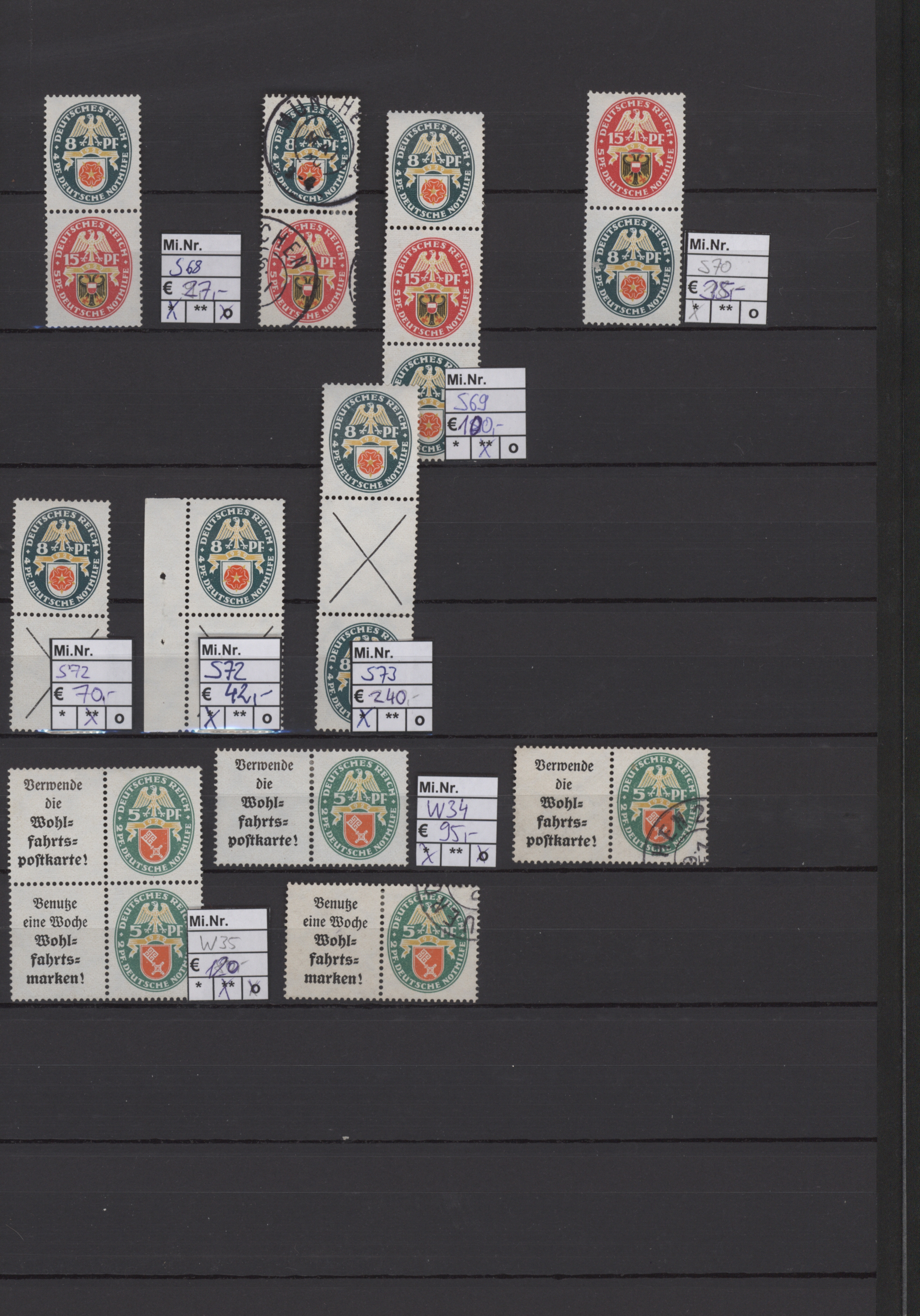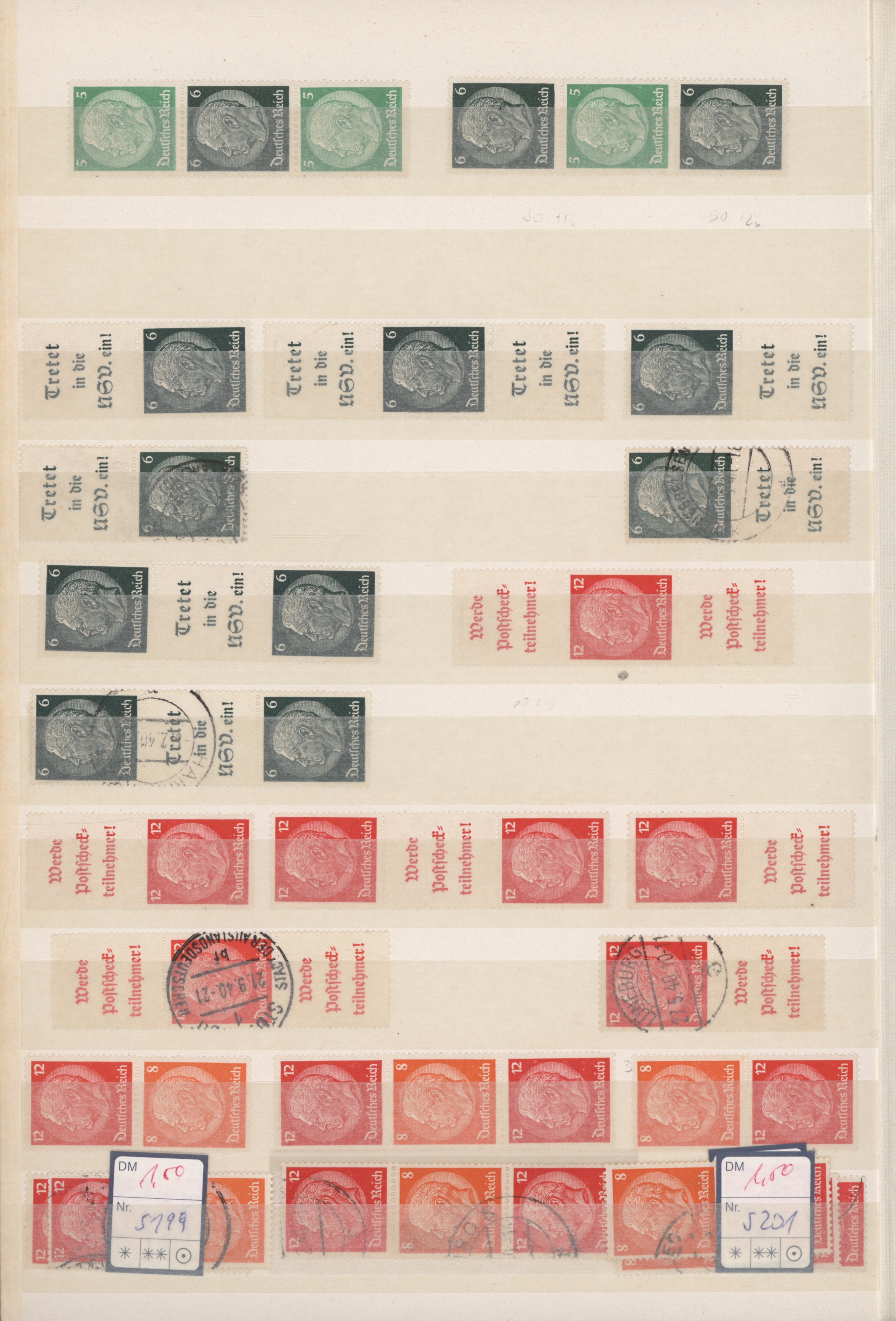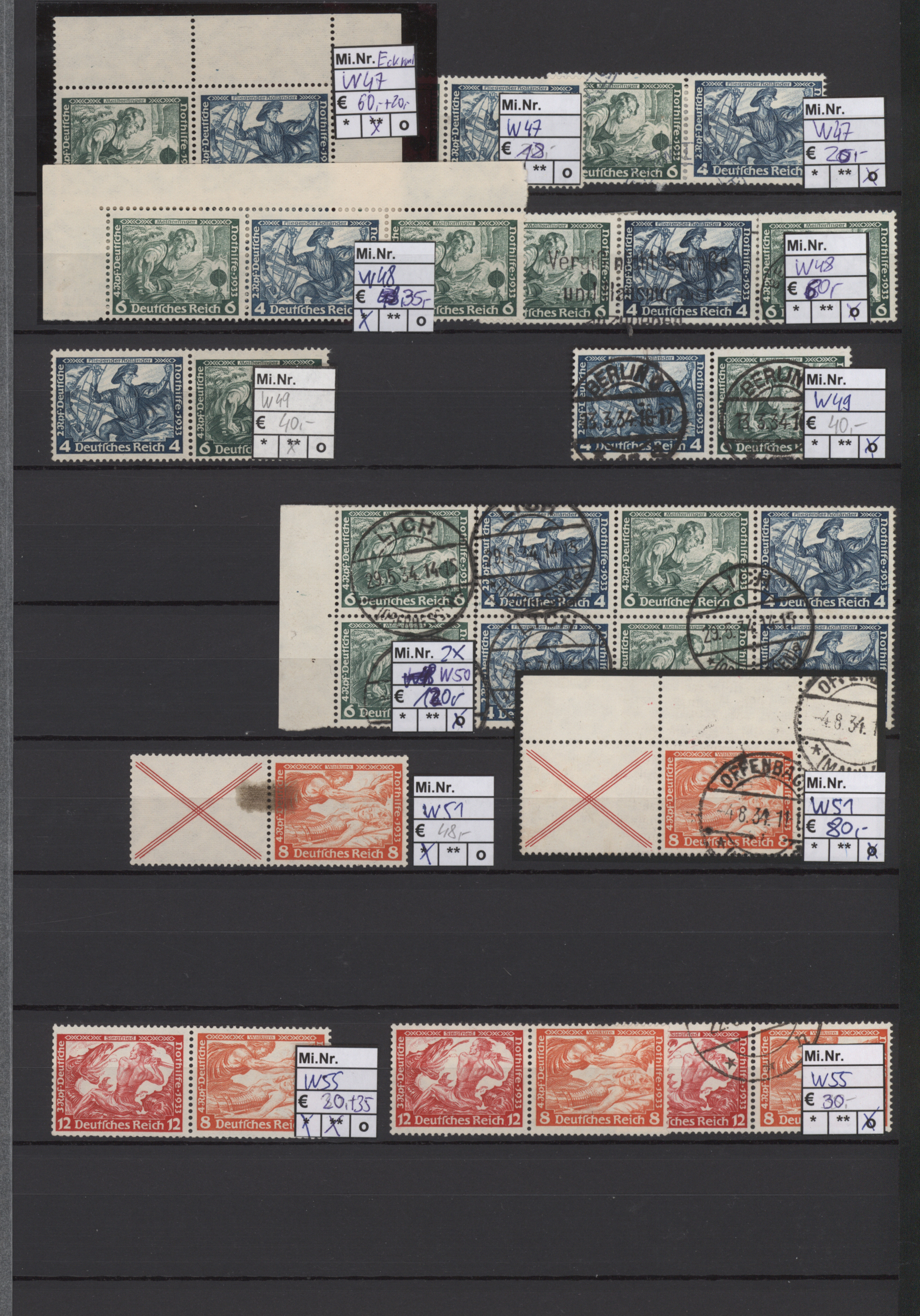 1915/1941, umfangreicher Lagerposten Zusammendrucke in zwei Alben ab Germania mit Schwerpunkt auf III.Reich mit vielen guten Kombinationen. Nach