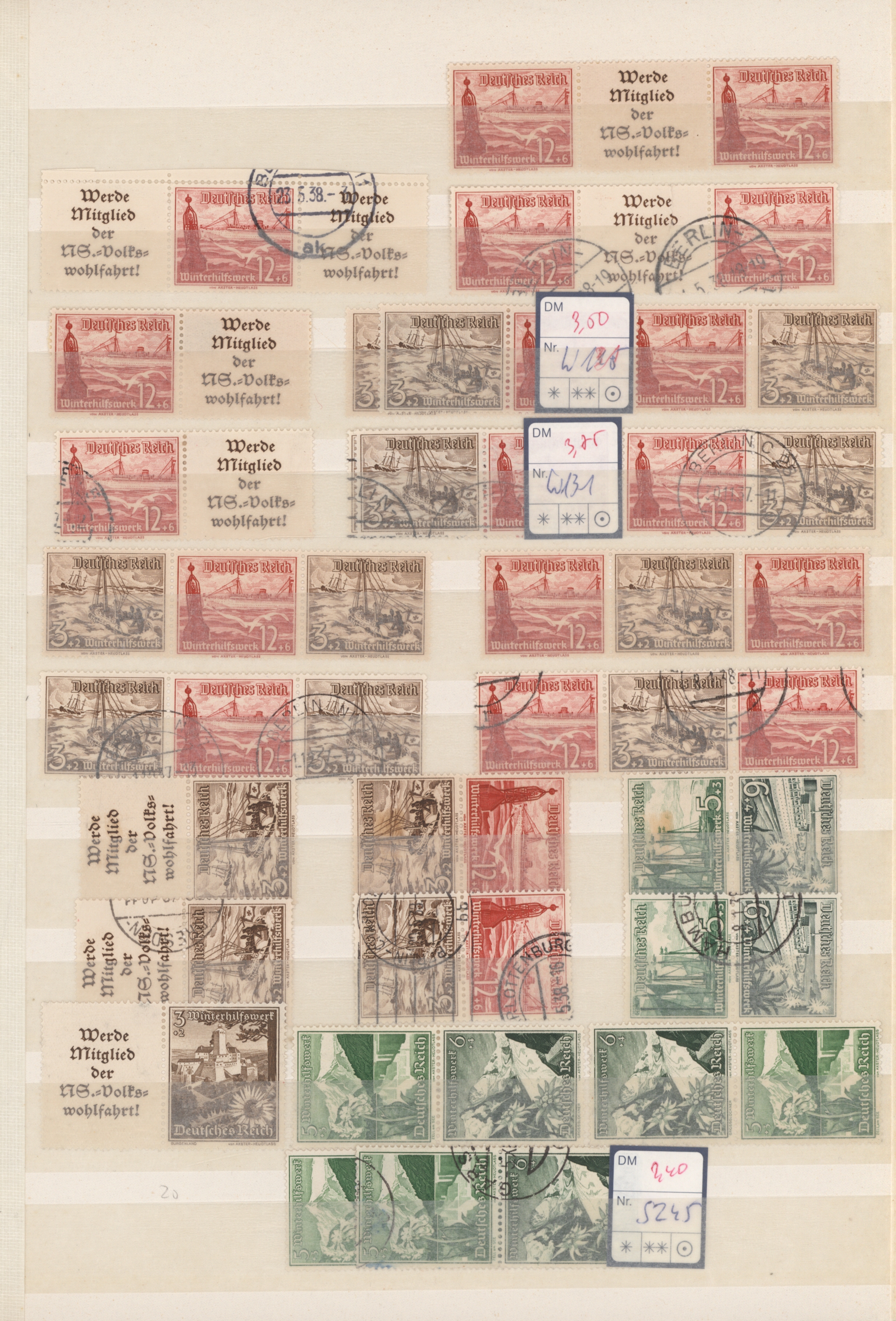 1939-1945, Dublettenpartie, in allen Erhaltungen, im prall gefüllten Lagerbuch, dabei bessere Ausgaben, teils mehrfach, dazu noch Dienstmarken, hoher