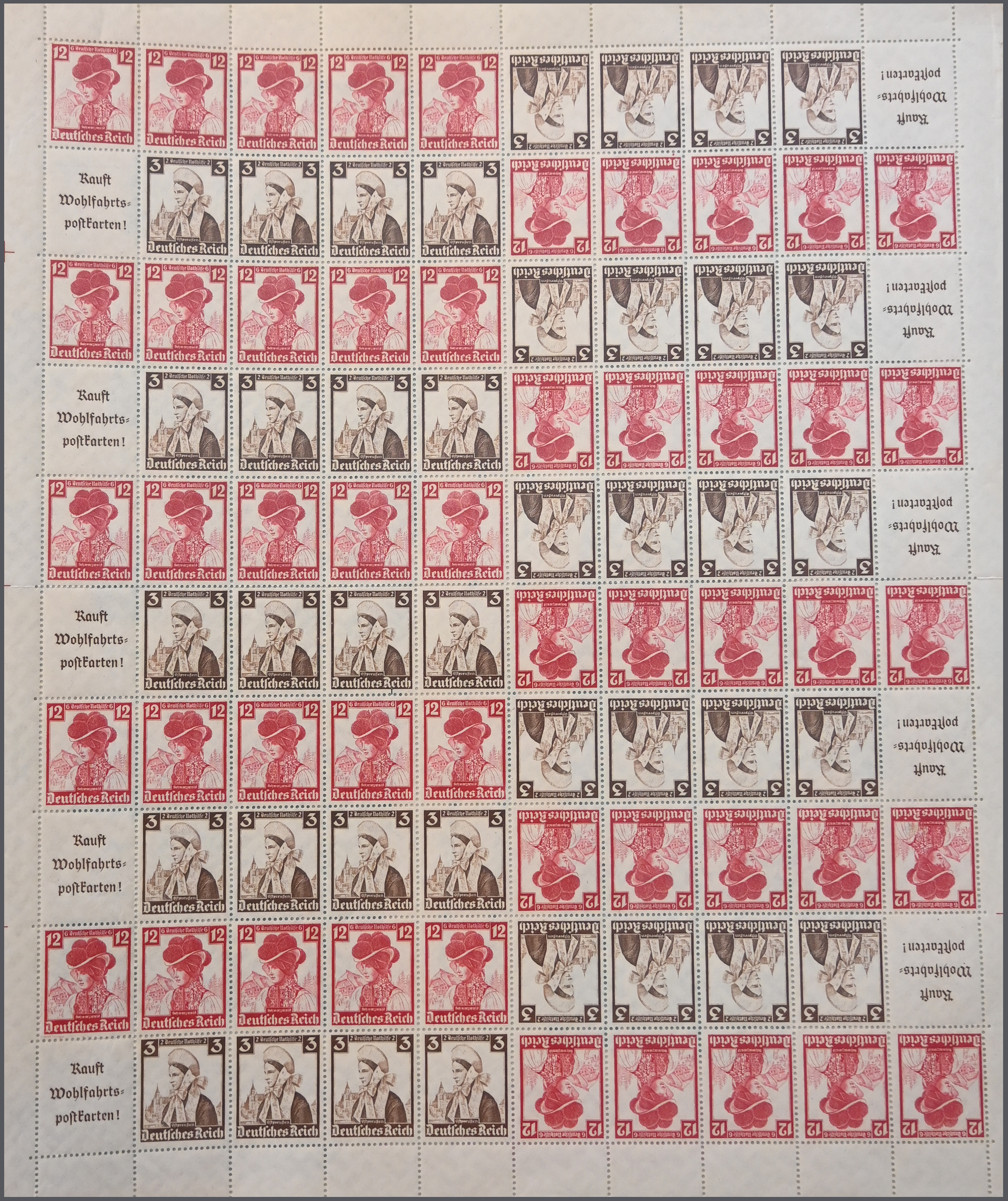 1938/1945, zwei Bogenmappen mit postfrischen Bogen/-teilen, dabei etliche plattenfehlerträchtige Marken wie Postkameradschaft, alles ungesichtet.