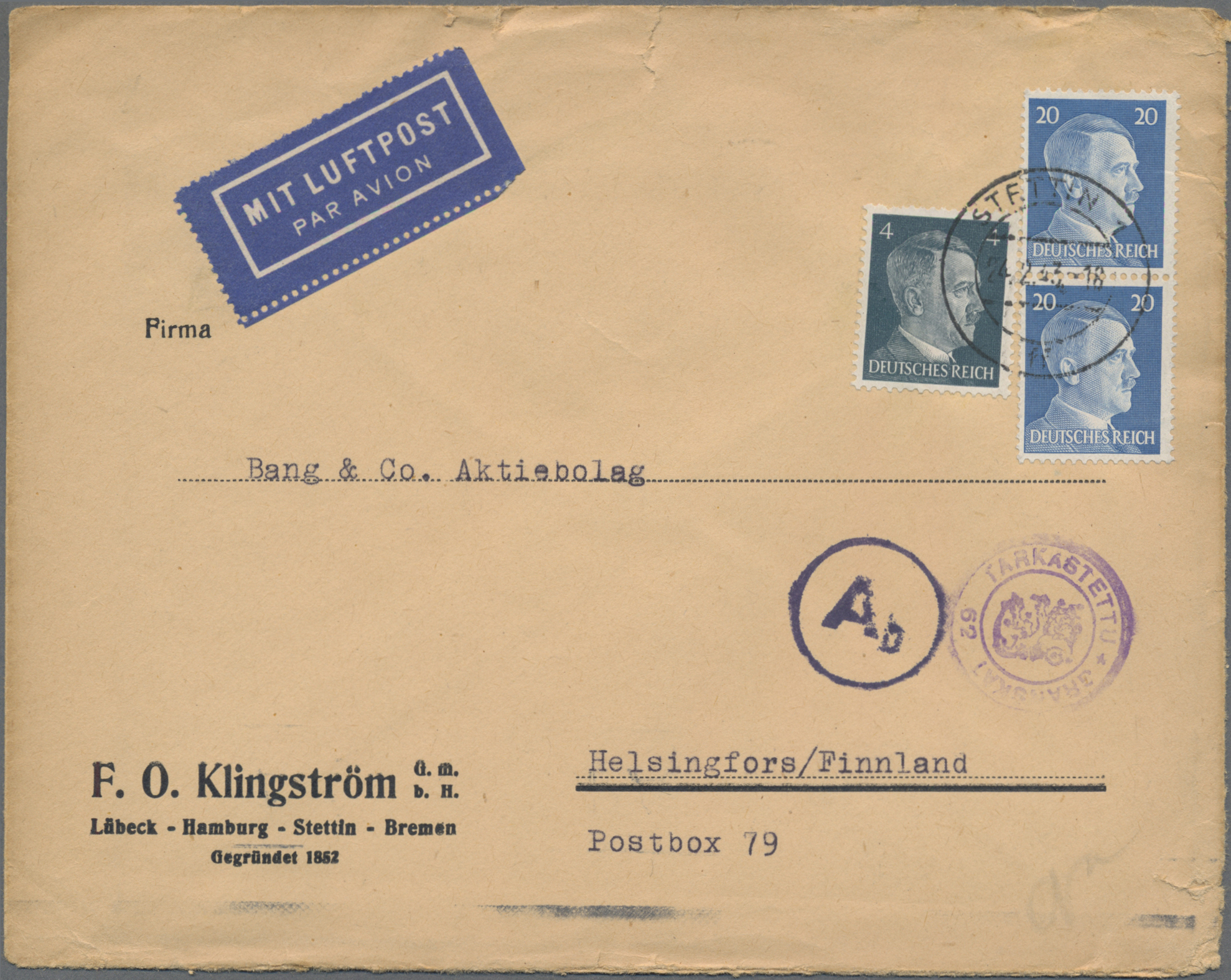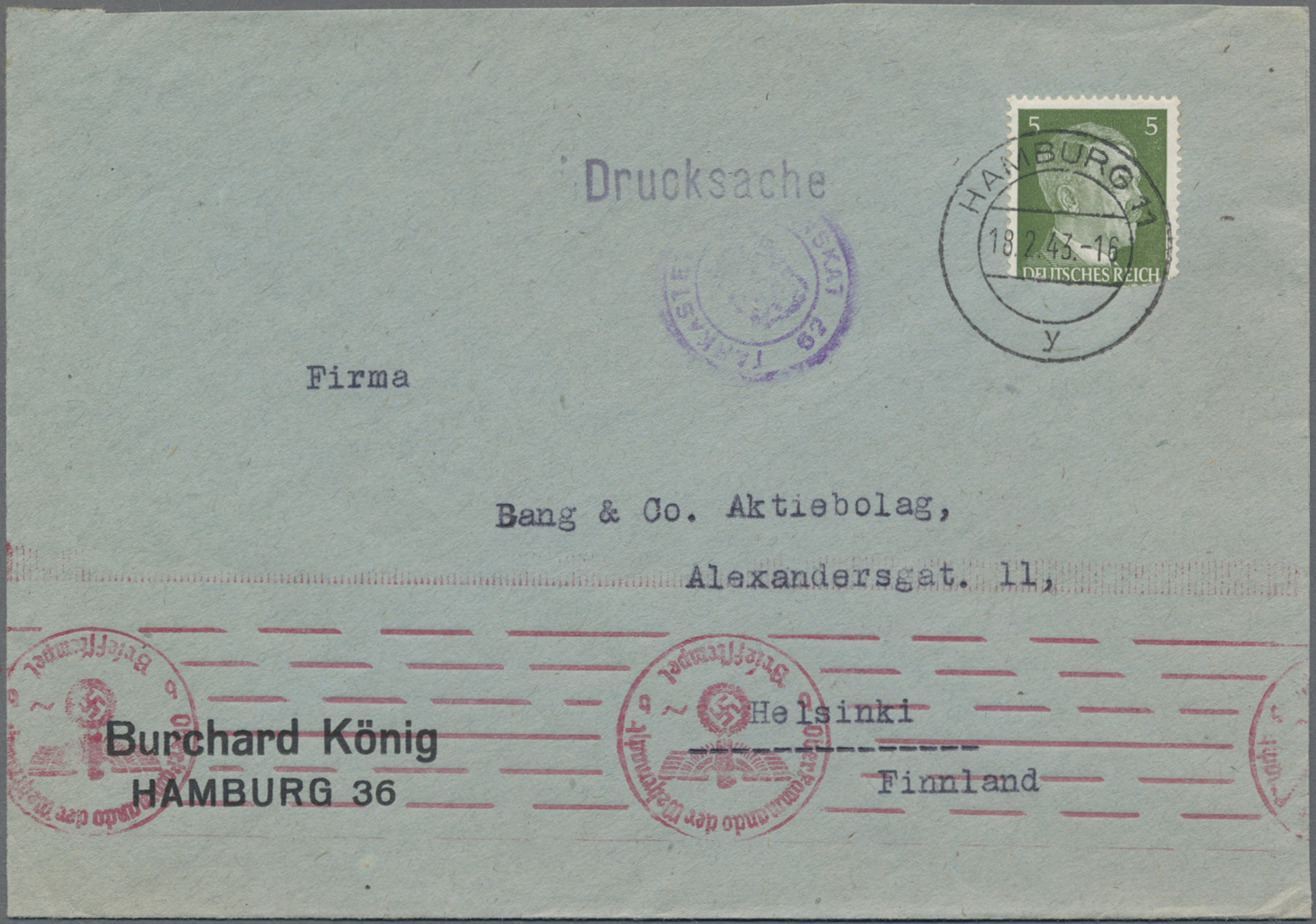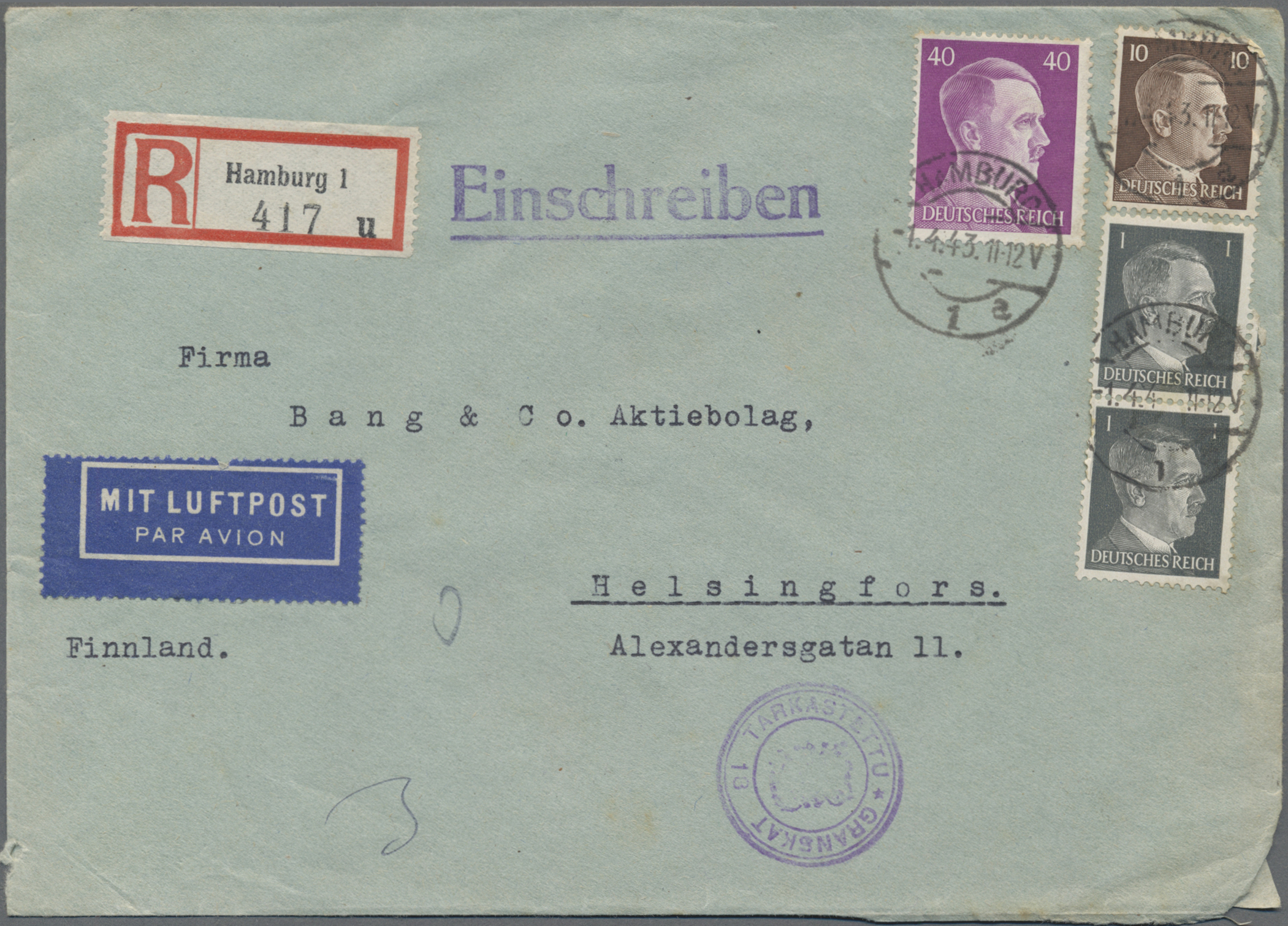 1943, 25 Firmenbriefe nach Finnland mit Sonderporto, dabei viel Luftpost, auch R-Briefe, jeder Beleg mit Zensur, oft zweiseitig geöffnet und teils kleine