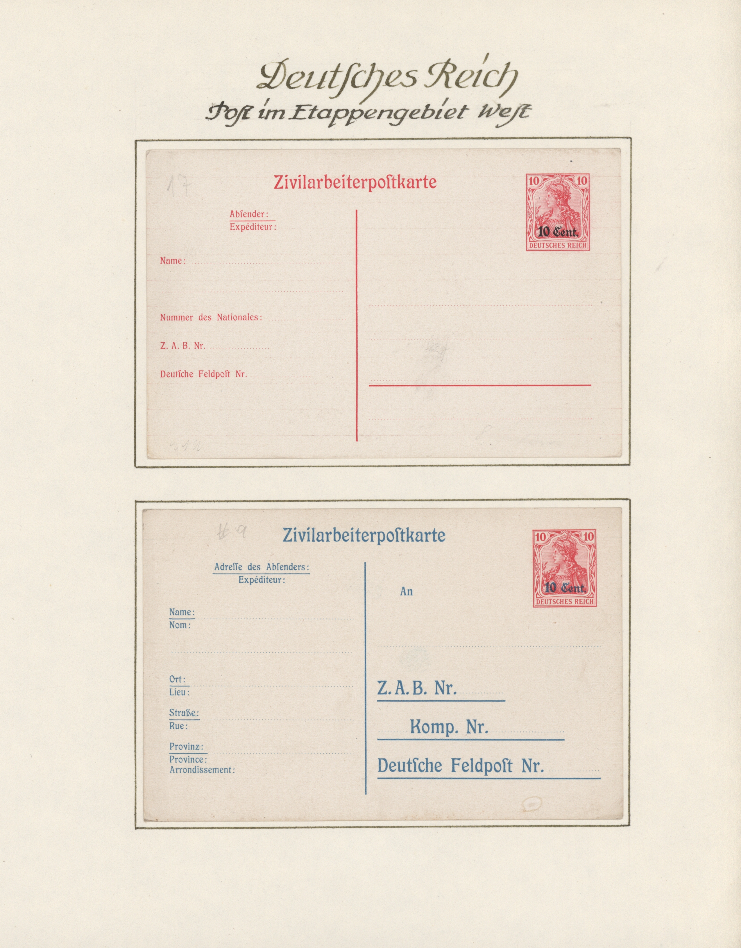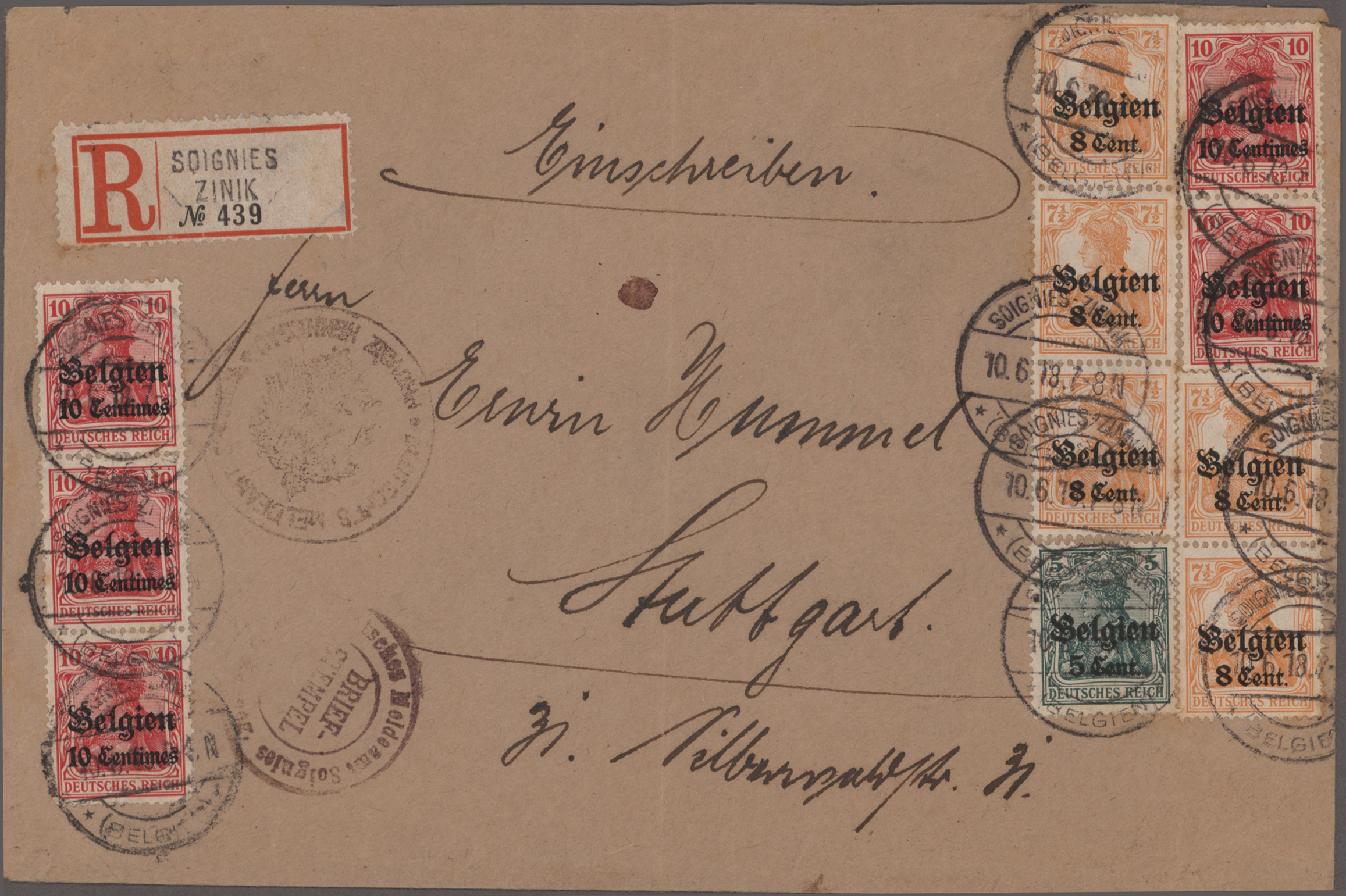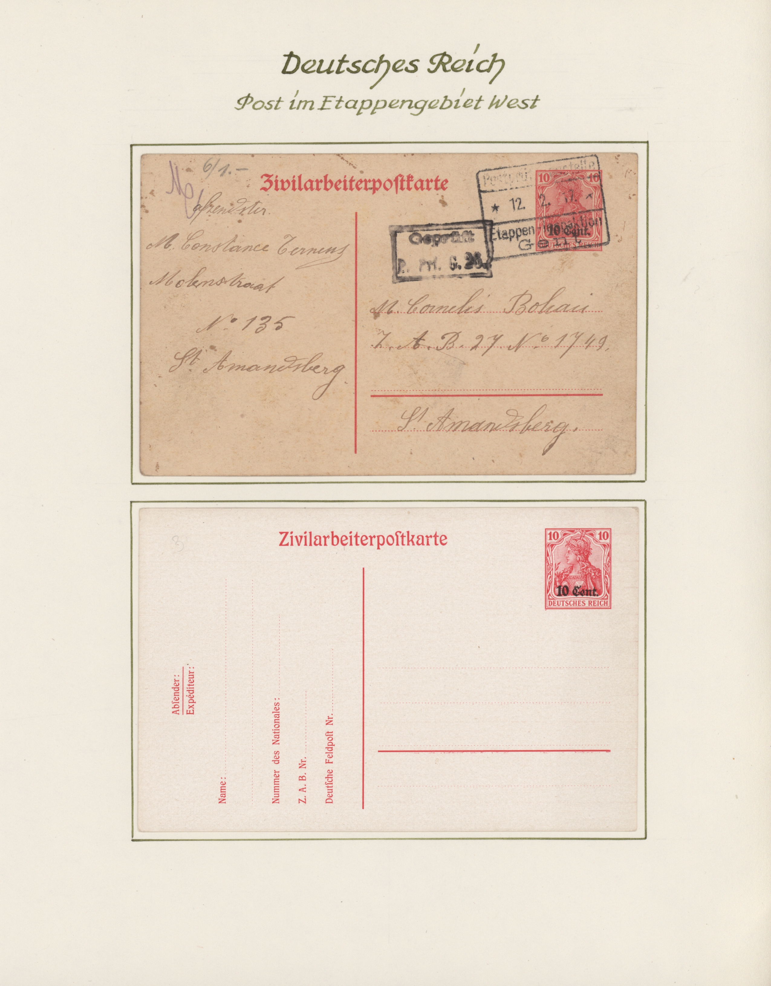 1914/1918, Händlerbestand Belege Etappengebiet West, Oberb. Ost, Dt. Post Polen sowie Rumänien. Dabei Ganzsachen, phil. Belege, Feldpost, auch Bedarf. Lt. Angabe 423 Stück mit einer Einzelauszeichnung von 5.730.- €.