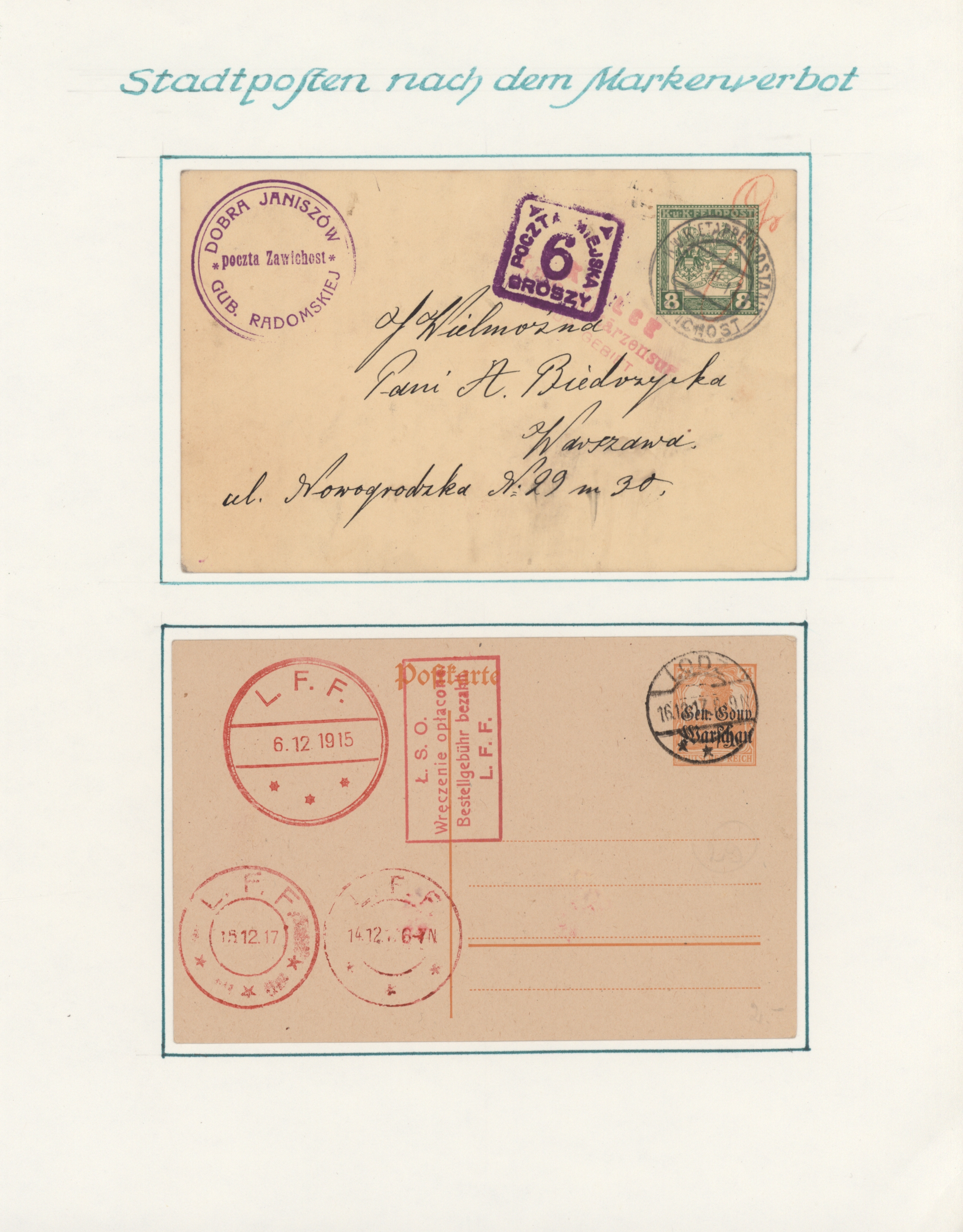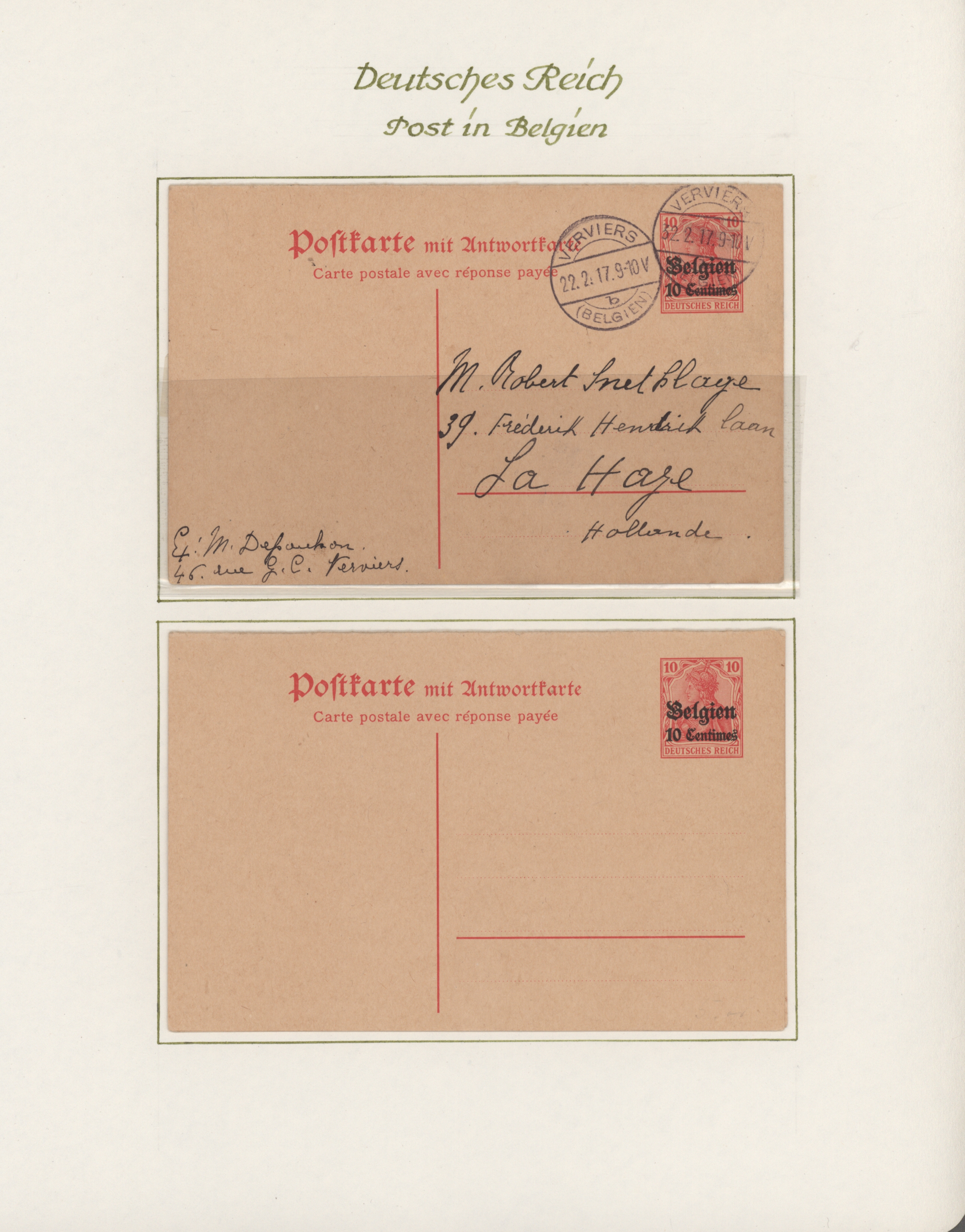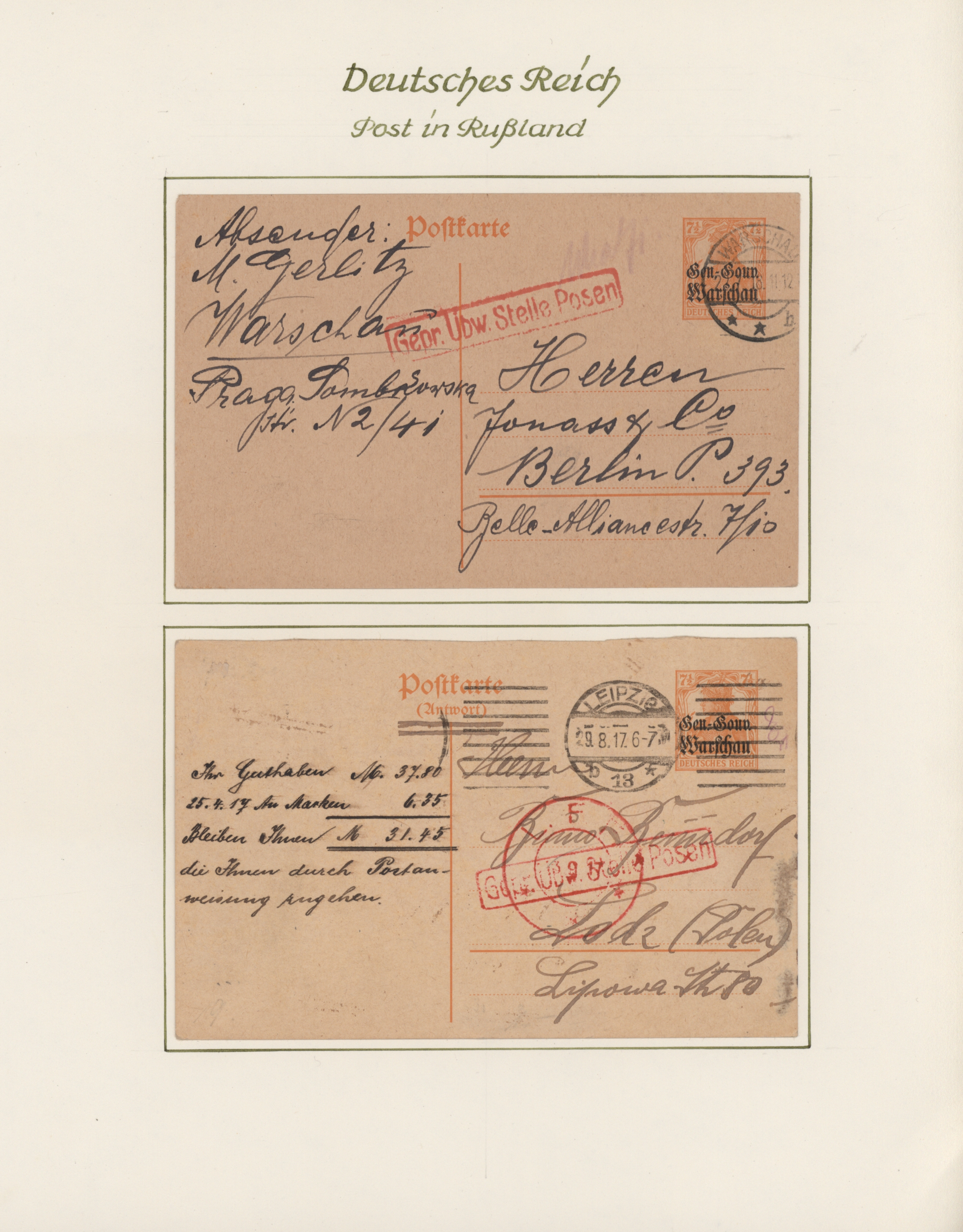 1914/1918, Händlerbestand Belege Etappengebiet West, Oberb. Ost, Dt. Post Polen sowie Rumänien. Dabei Ganzsachen, phil. Belege, Feldpost, auch Bedarf. Lt. Angabe 423 Stück mit einer Einzelauszeichnung von 5.730.- €.