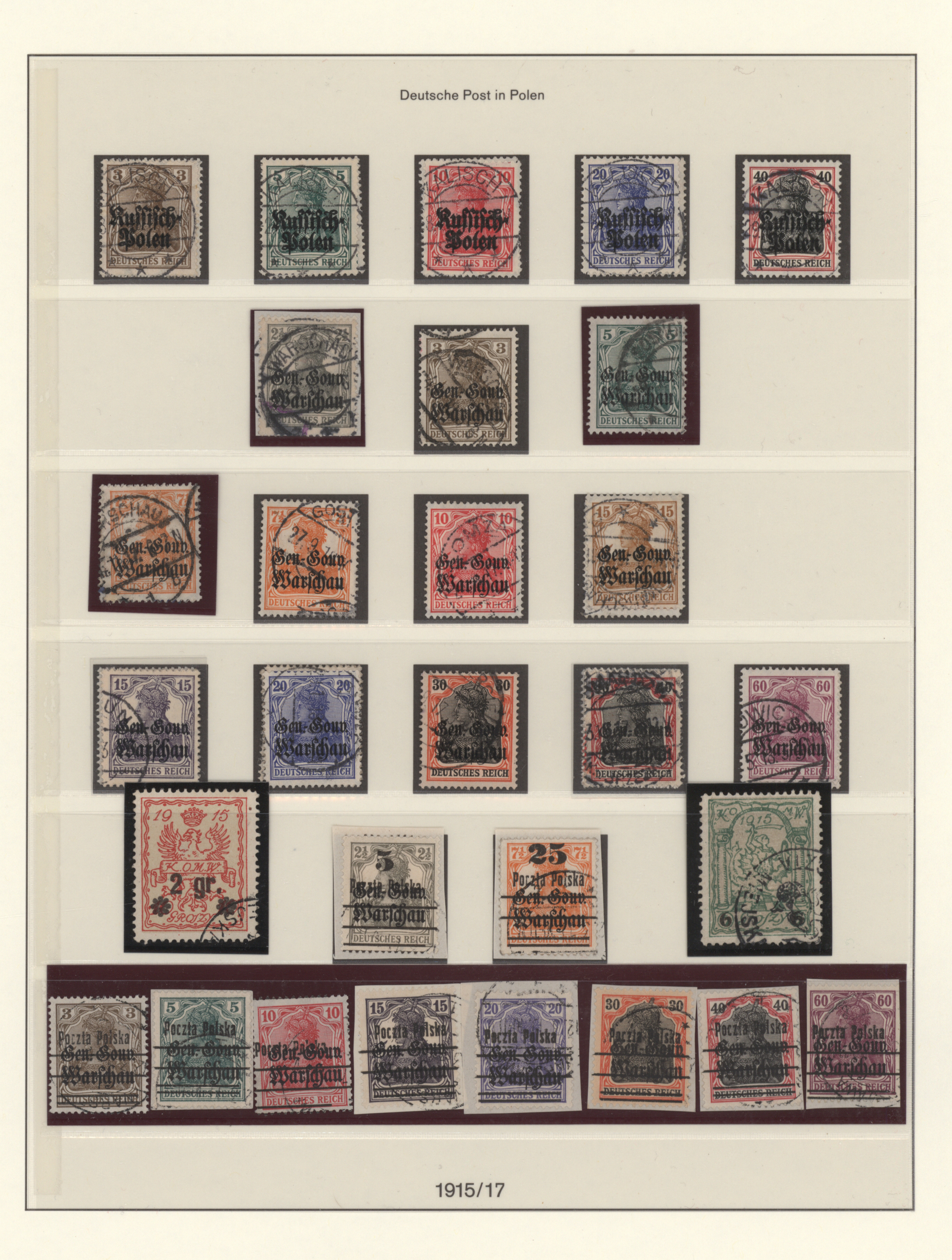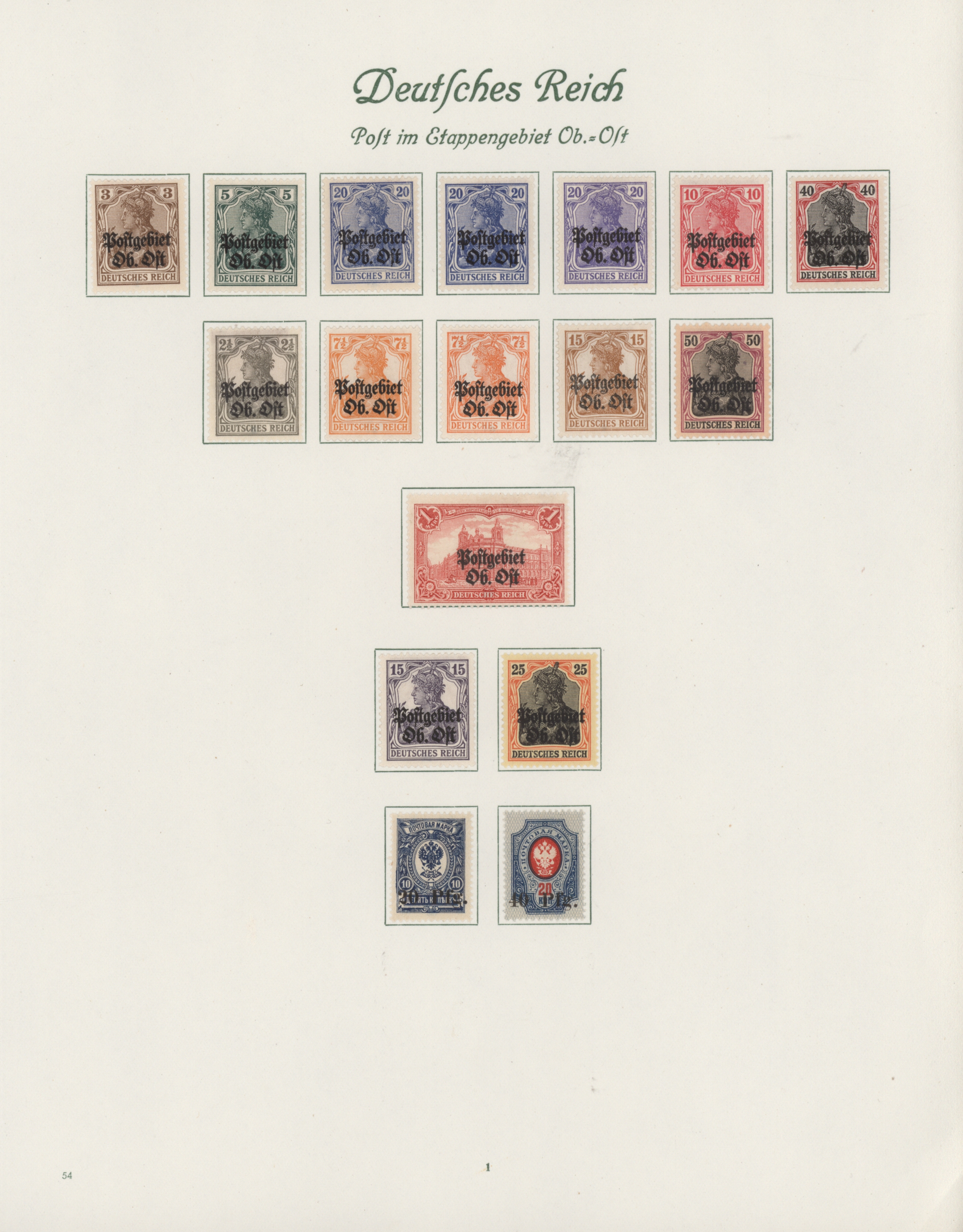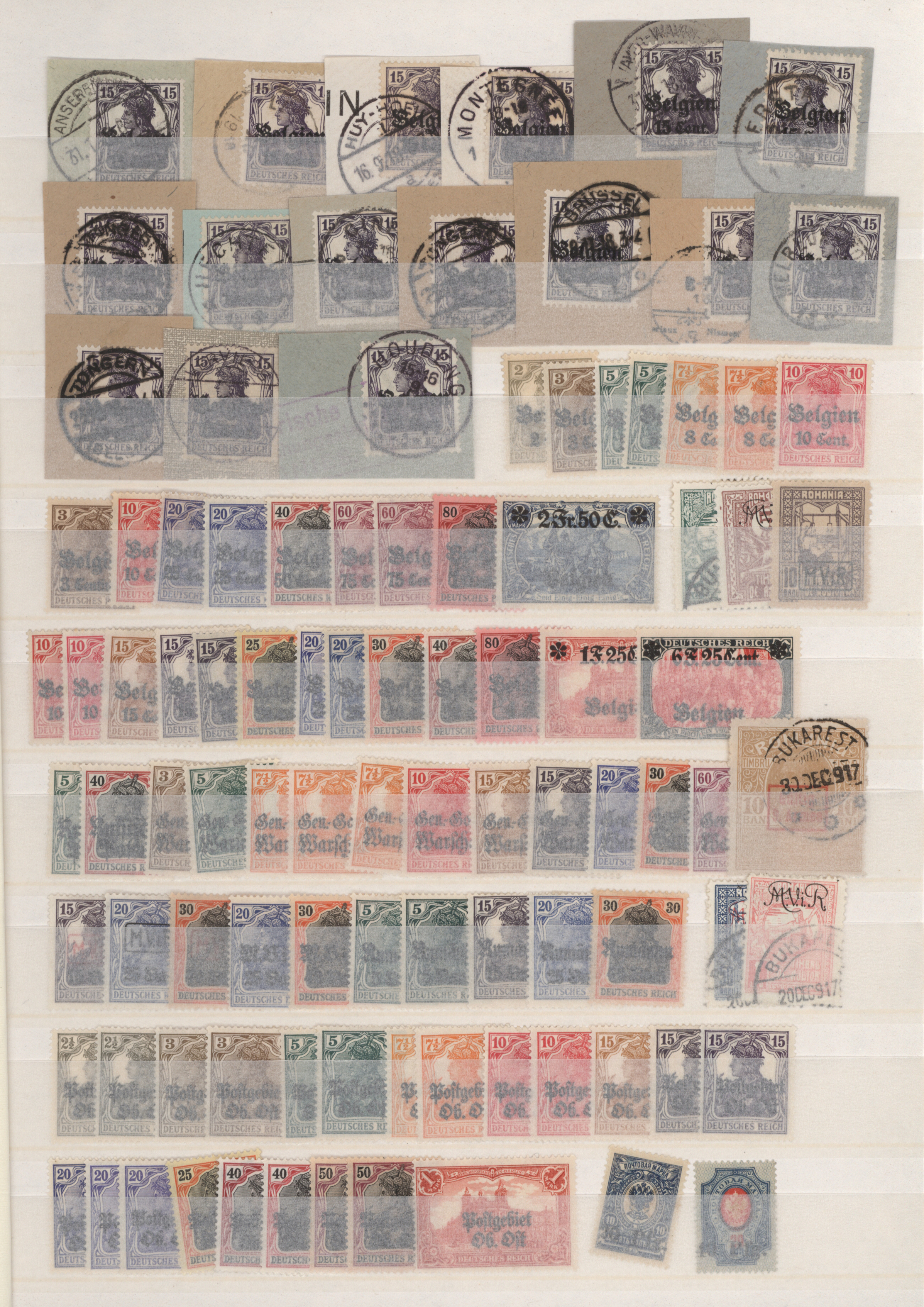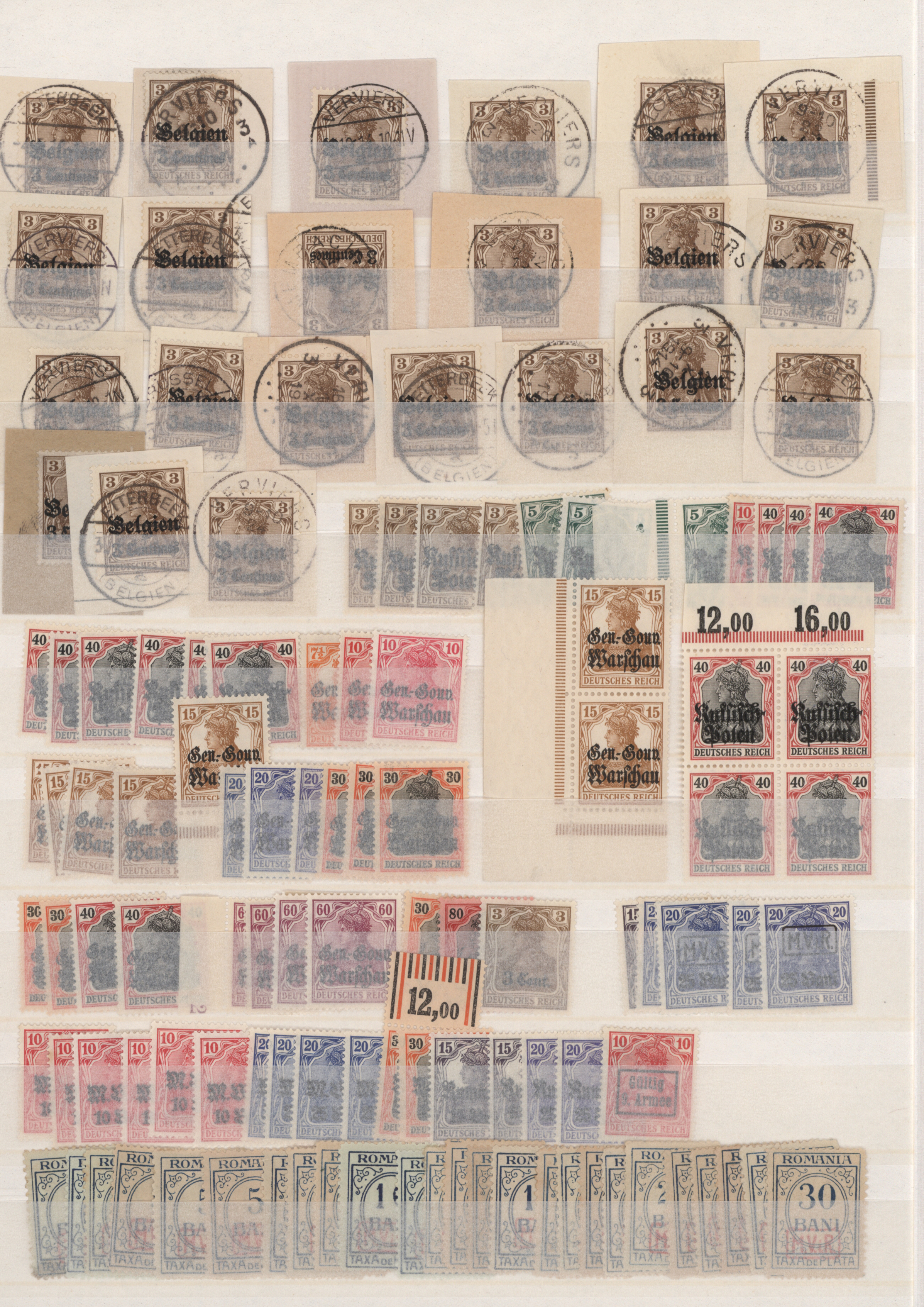 1914/1919, gestempelte und ungebrauchte Sammlung mit auch über 70 Briefen, Karten und Ganzachen, dabei Belgien, Etappe West, Rumänien, Polen (incl. Stadtpost und frühe Unabhängigkeit, teils falsch) sowei Ober Ost.