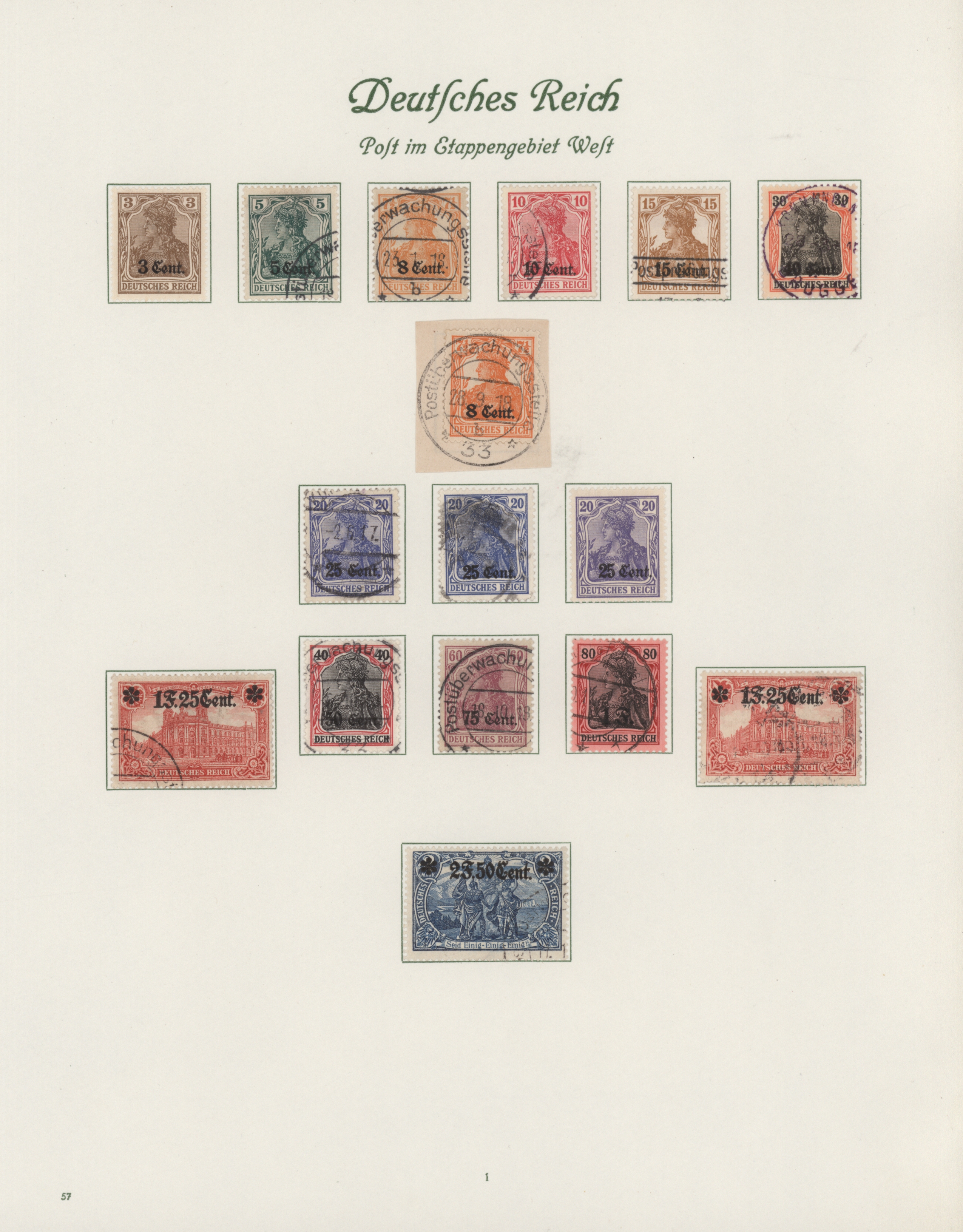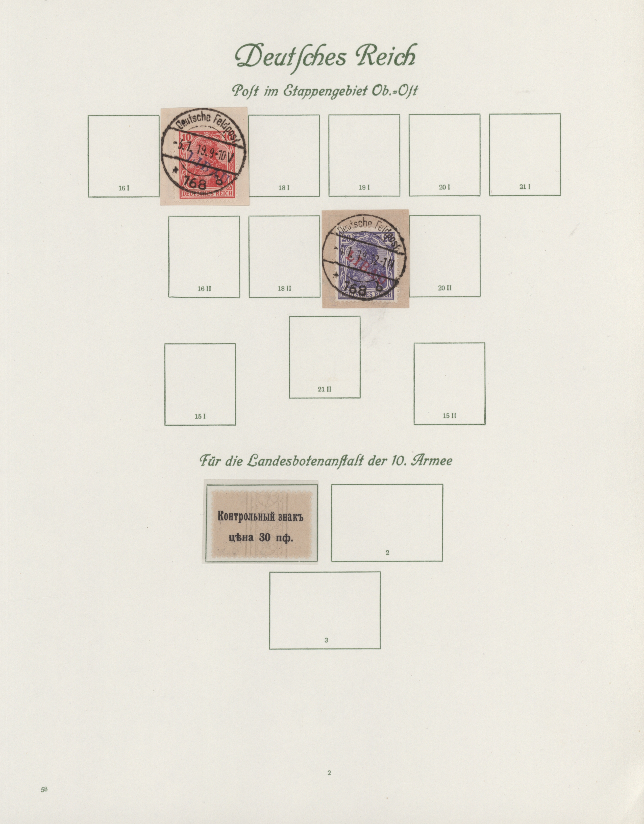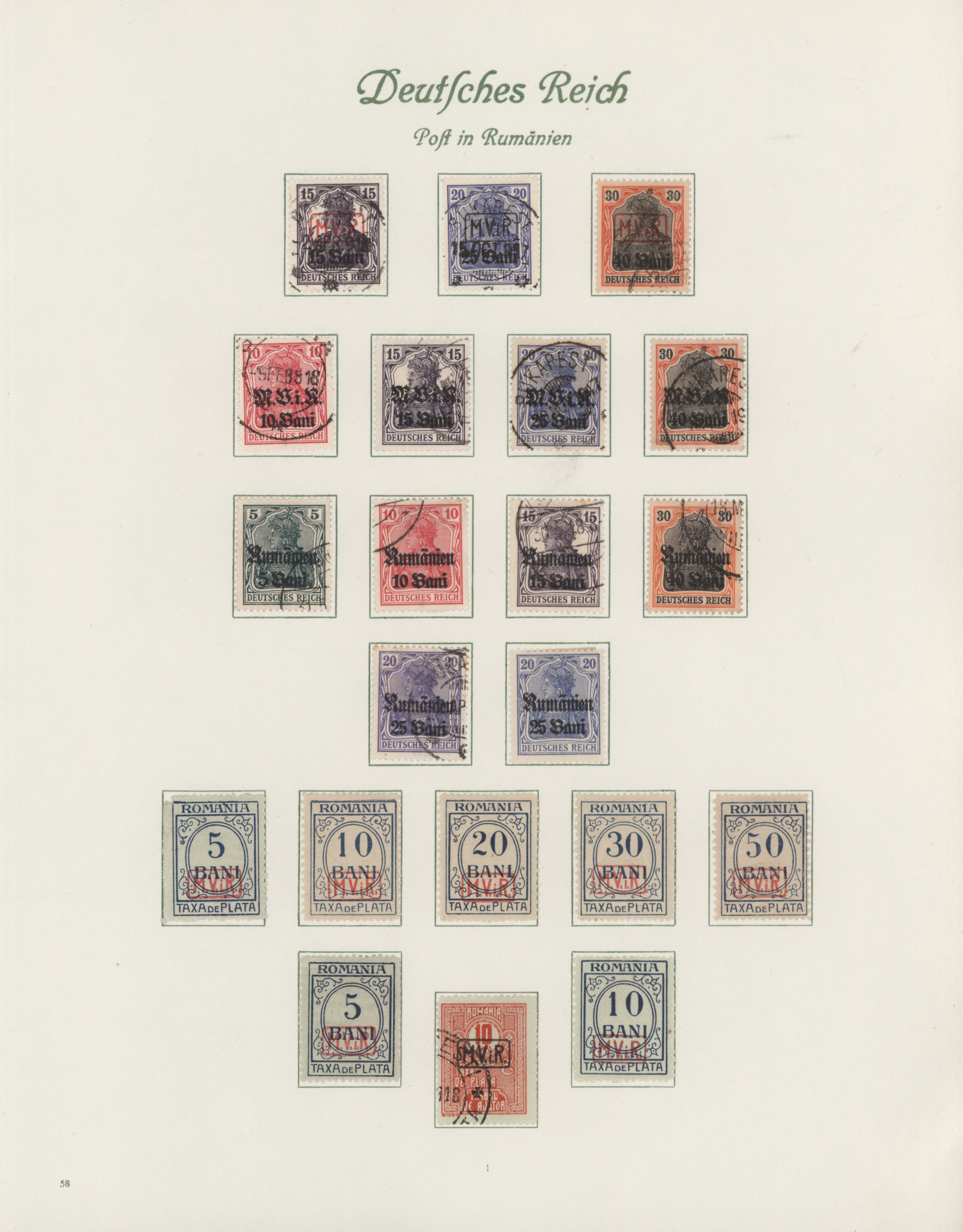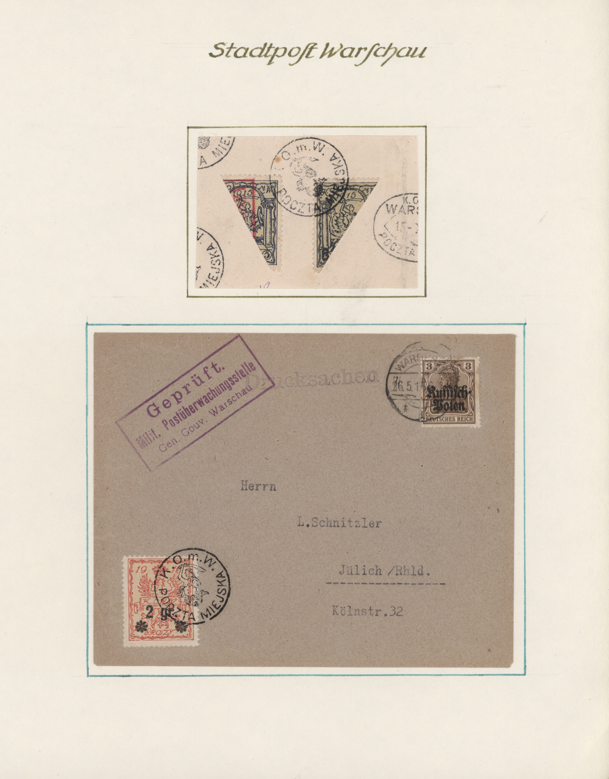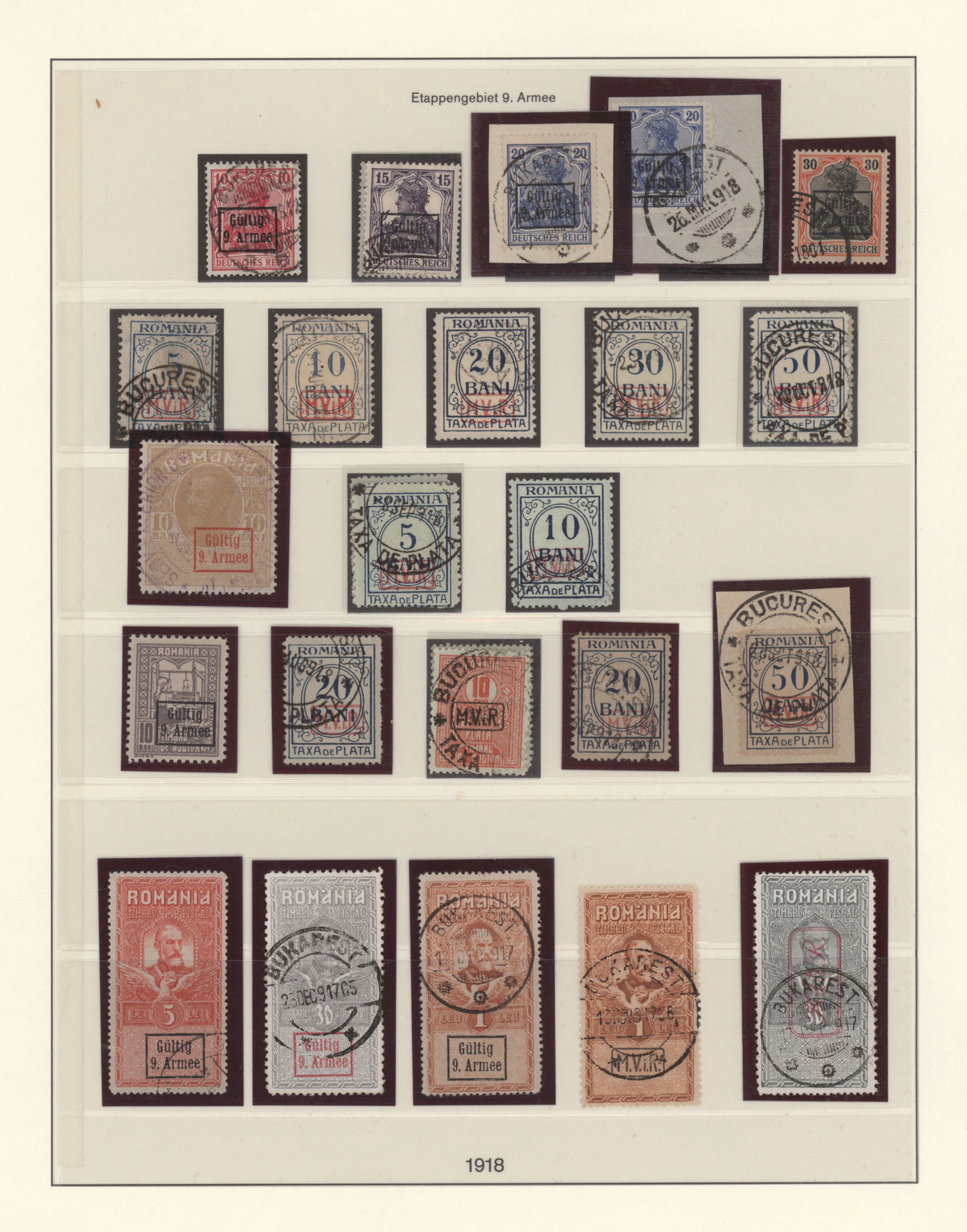 1914/1919, gestempelte und ungebrauchte Sammlung mit auch über 70 Briefen, Karten und Ganzachen, dabei Belgien, Etappe West, Rumänien, Polen (incl. Stadtpost und frühe Unabhängigkeit, teils falsch) sowei Ober Ost.