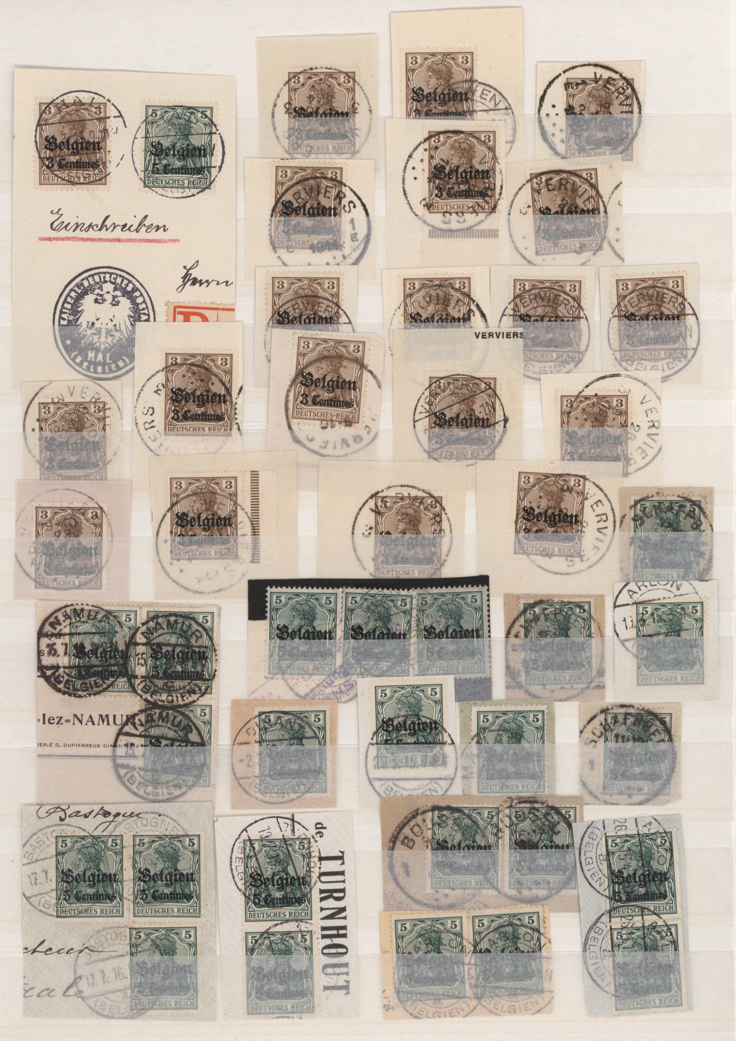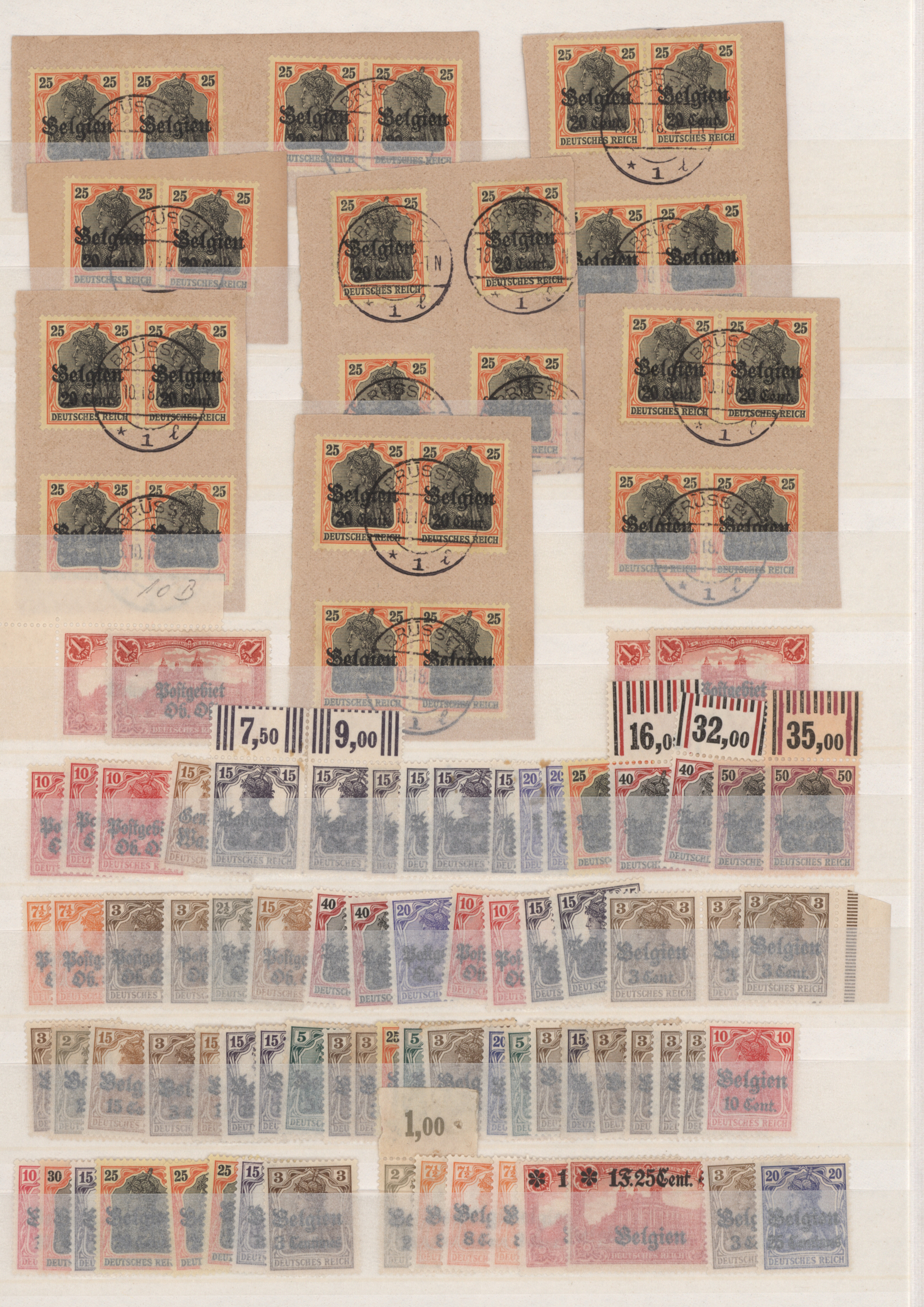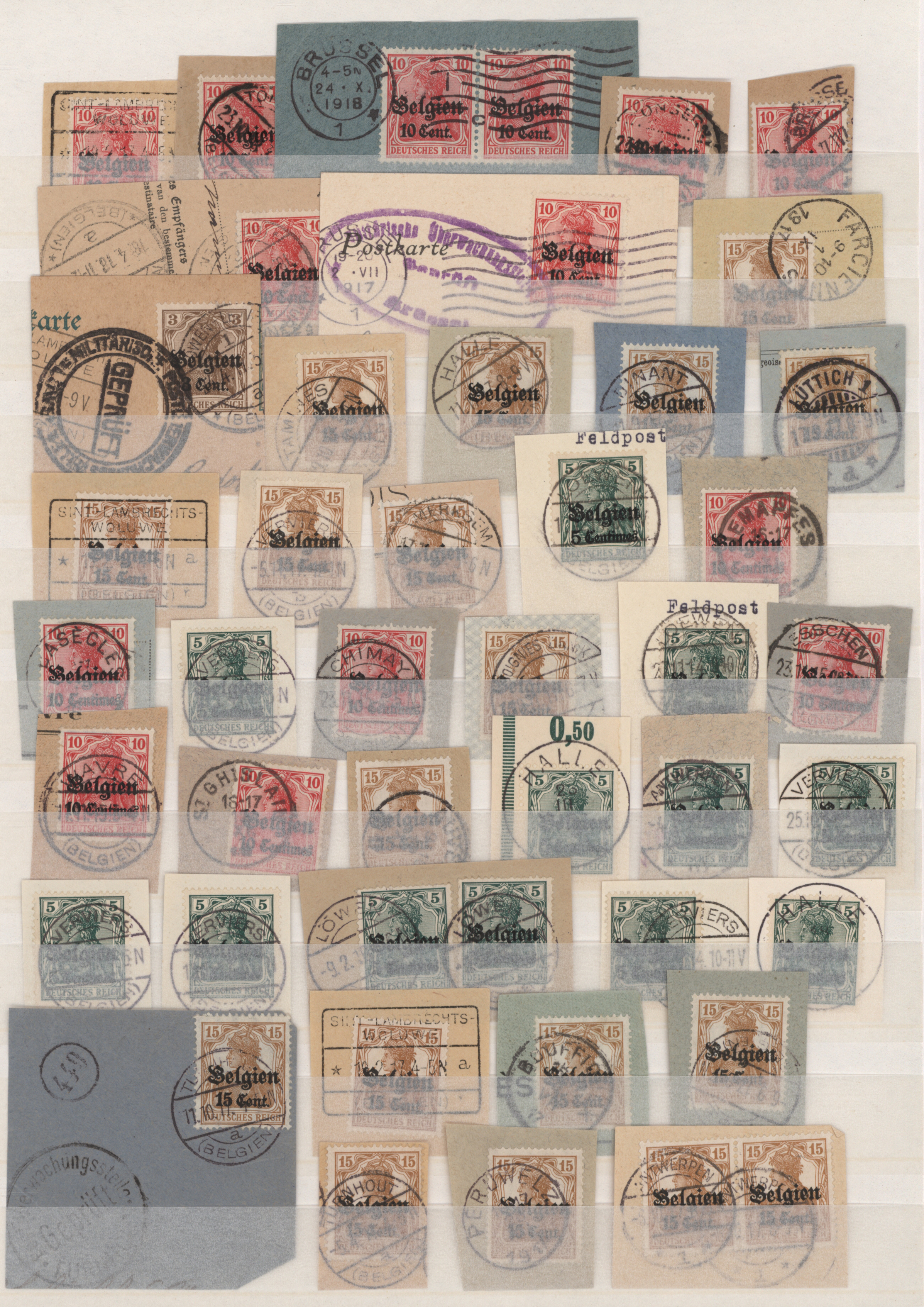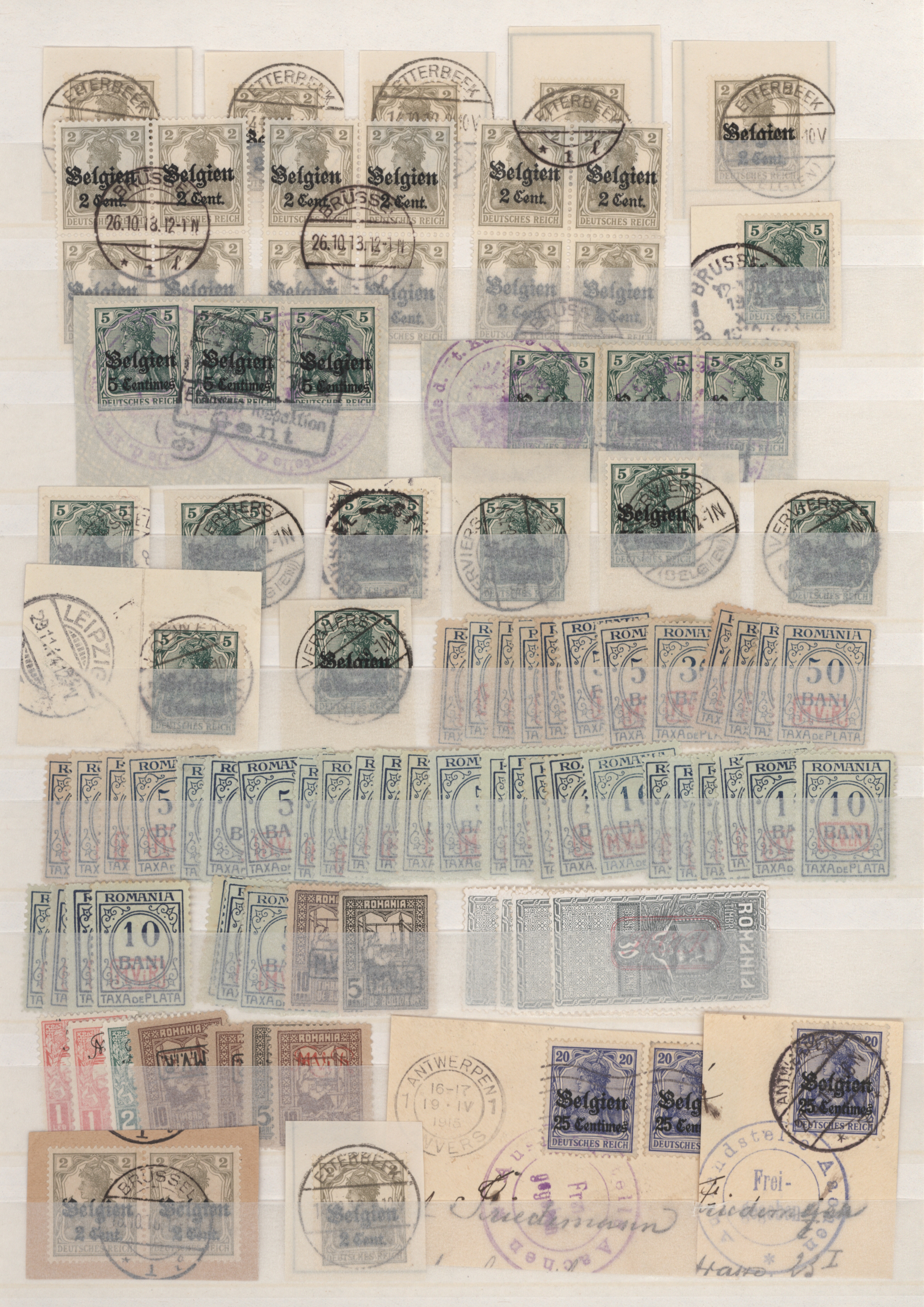 1914/1918, uriger Alt-Posten in Tüten/auf Steckseiten mit Schwerpunkt bei Belgien, aber auch Ober Ost, Rumänien, alles in guter Vielfalt, Briefstücke, Einheiten, Stempel, etc.