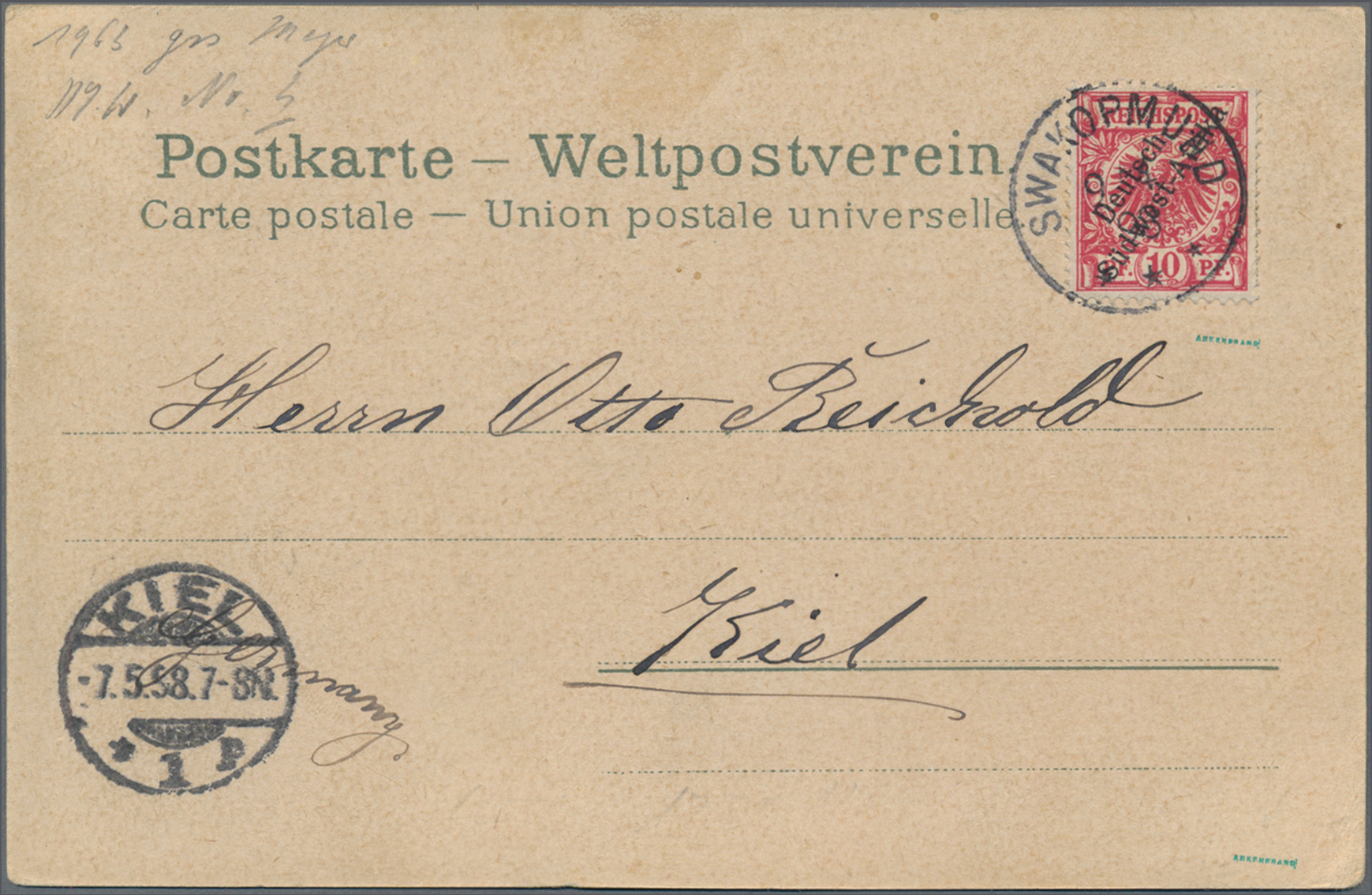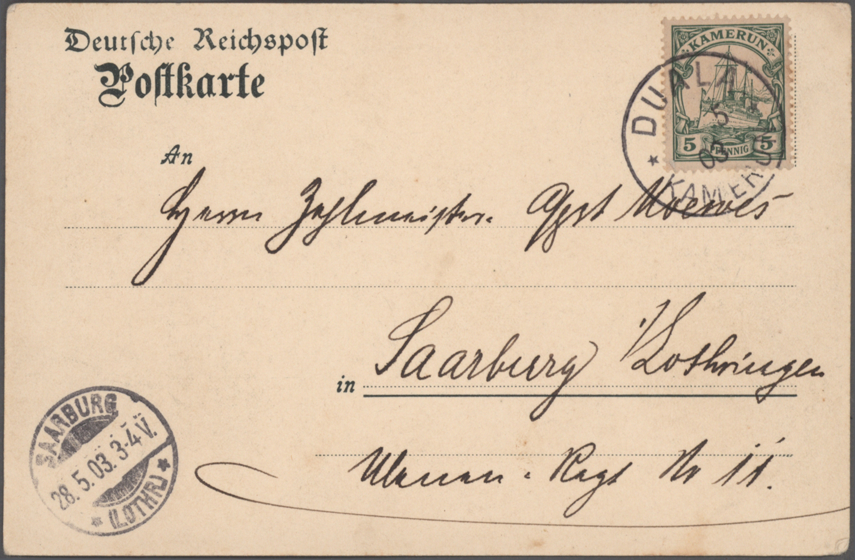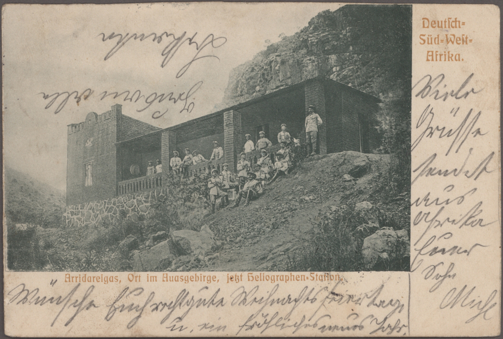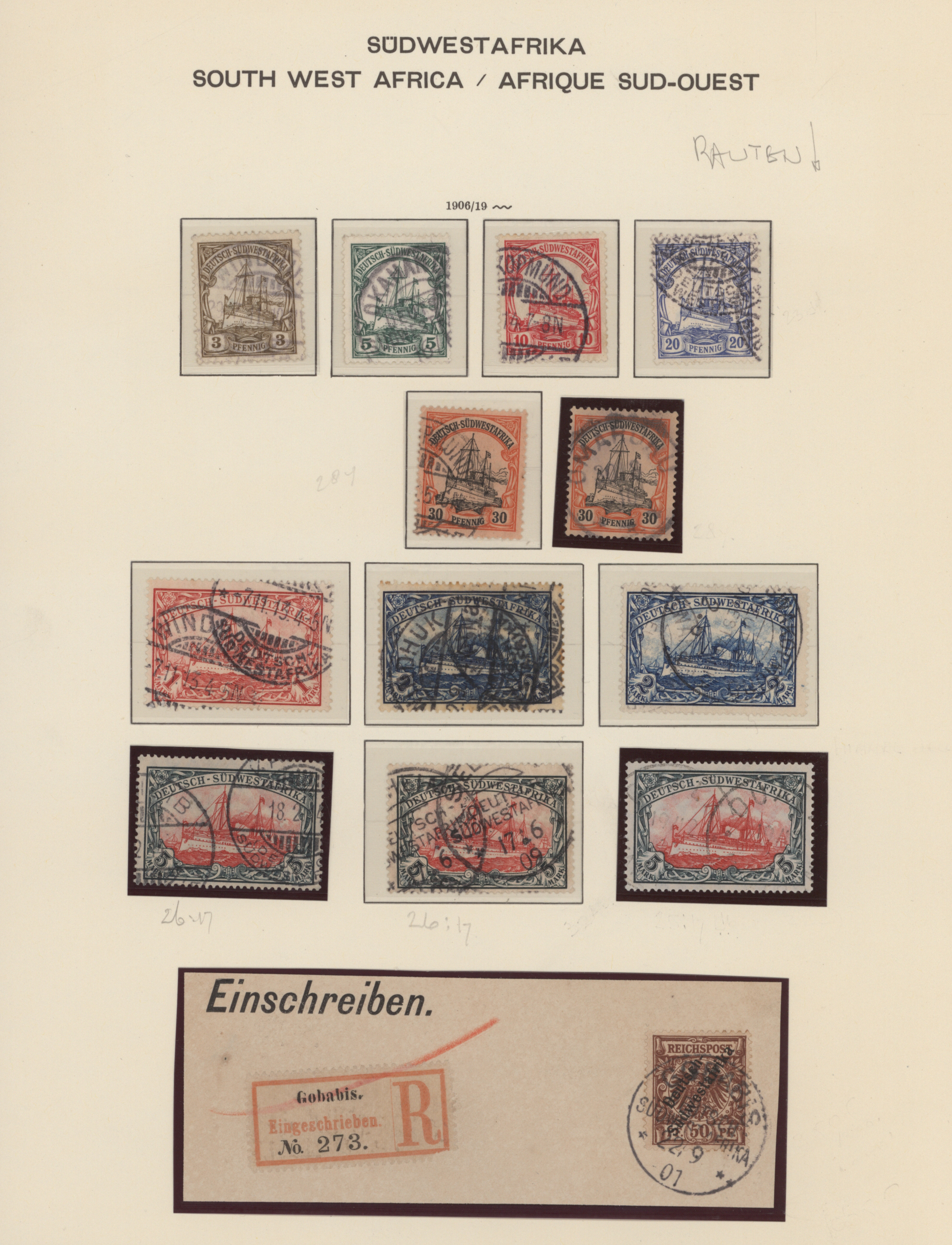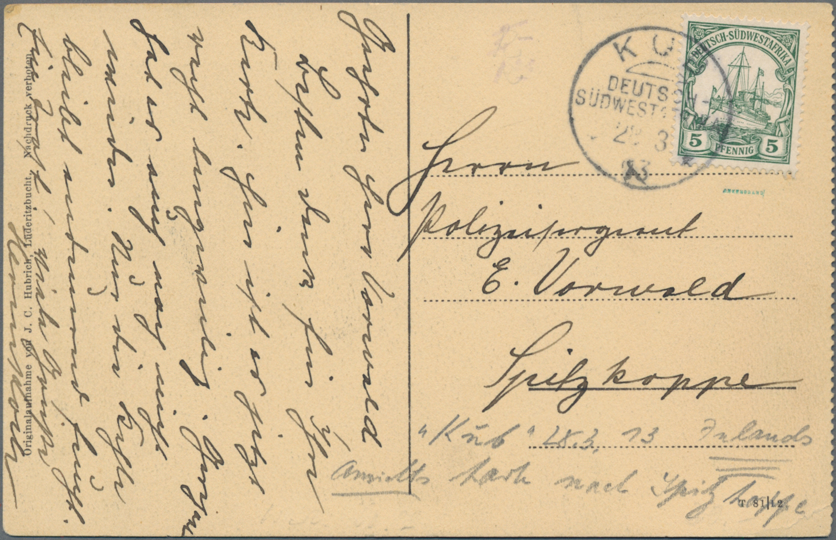 1898/1914, 22 Belege mit einigen Ansichtskarten, dabei Karte nach Kamerun und Brief mit 5 Pf (Paar) und 10 Pf Kaiseryacht mit Stempel "OTJOSONDDU D-SWA" nach Wiesbaden etc. Teils etwas unterschiedlich erhalten, jedoch interessantes Los.