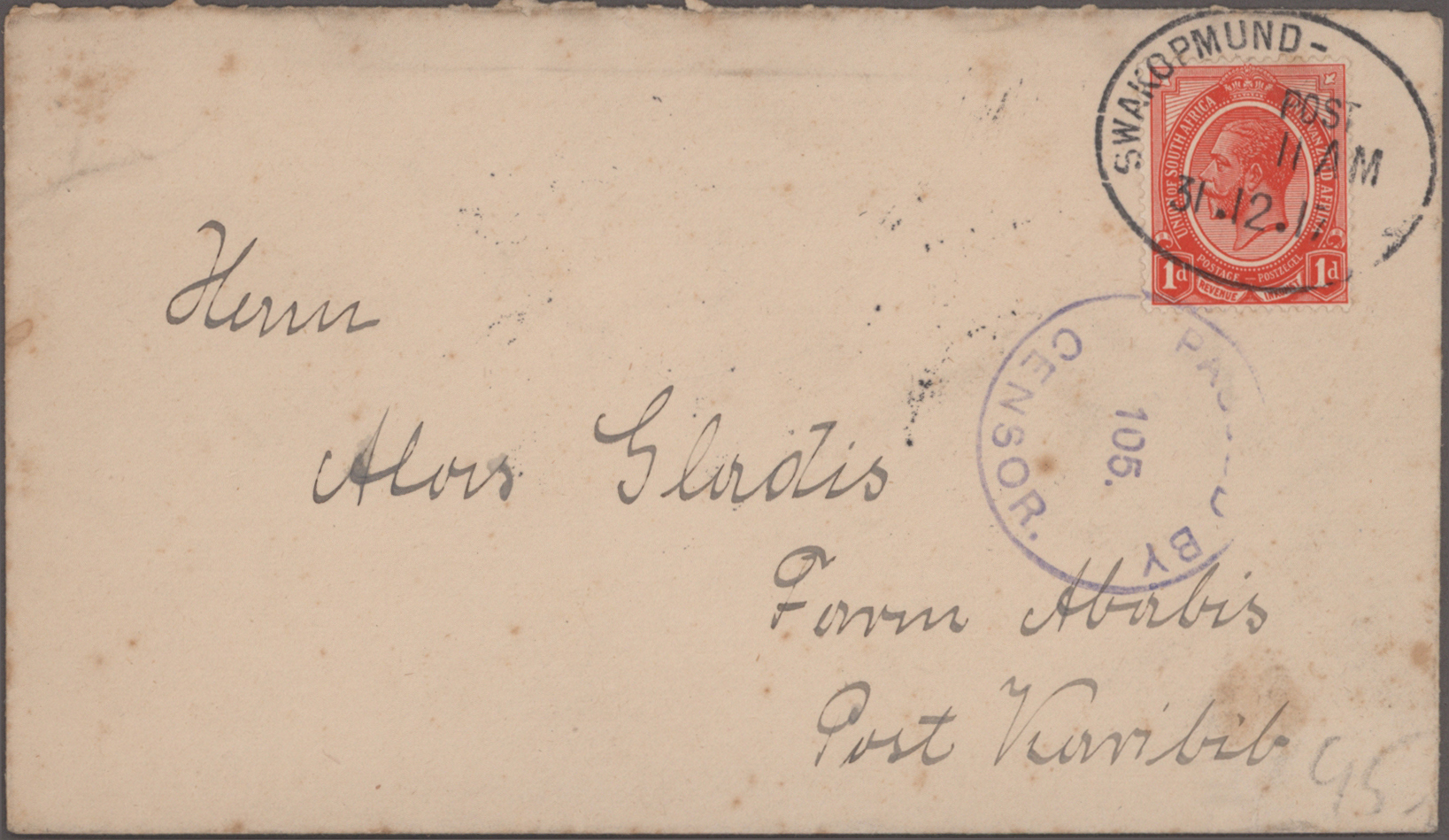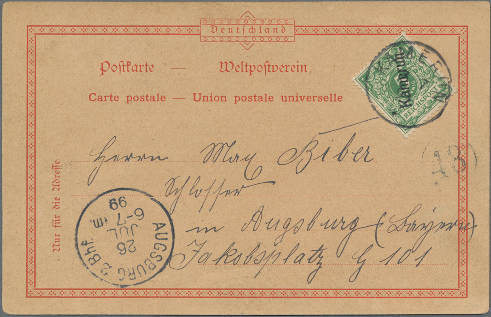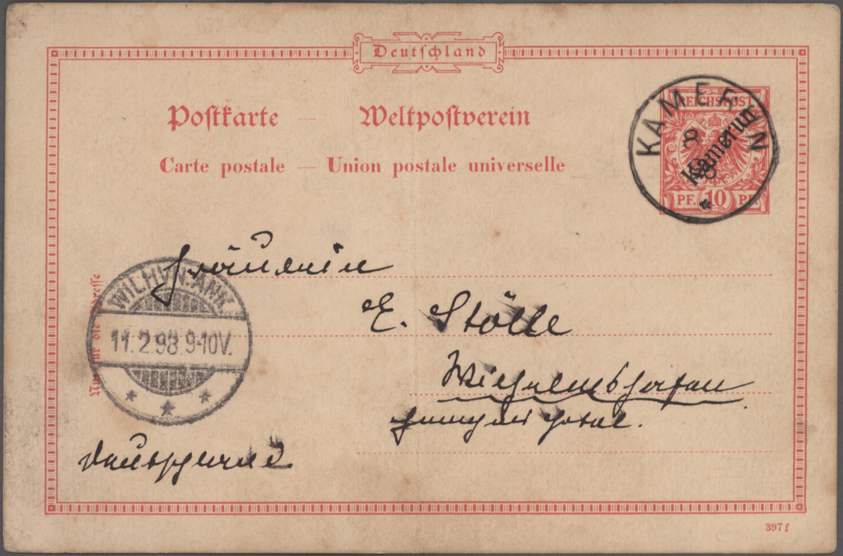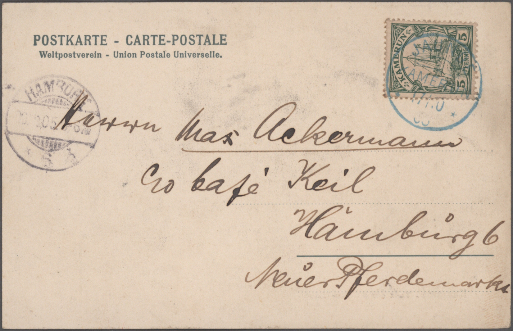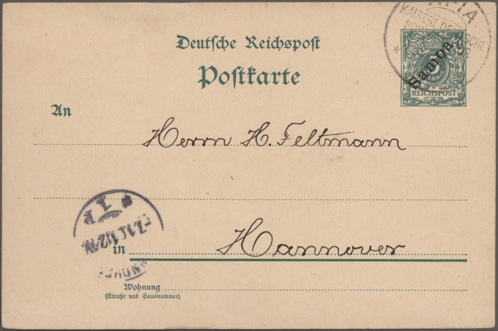 1898/1914, 22 Belege mit einigen Ansichtskarten, dabei Karte nach Kamerun und Brief mit 5 Pf (Paar) und 10 Pf Kaiseryacht mit Stempel "OTJOSONDDU D-SWA" nach Wiesbaden etc. Teils etwas unterschiedlich erhalten, jedoch interessantes Los.