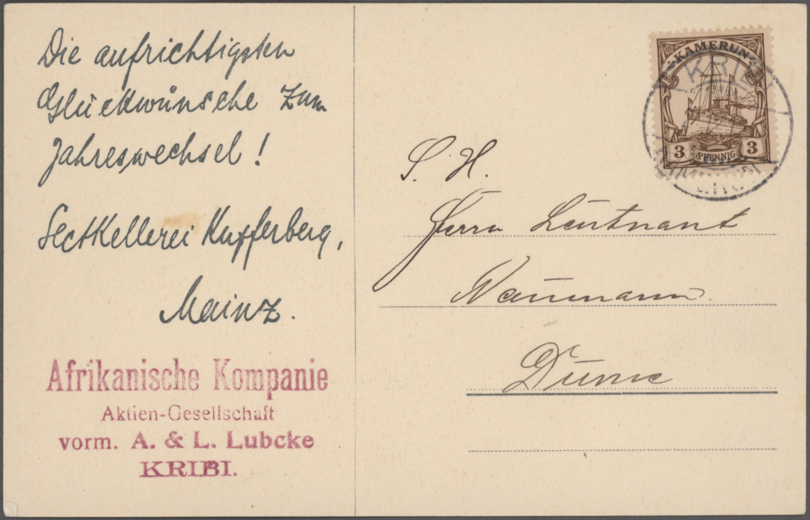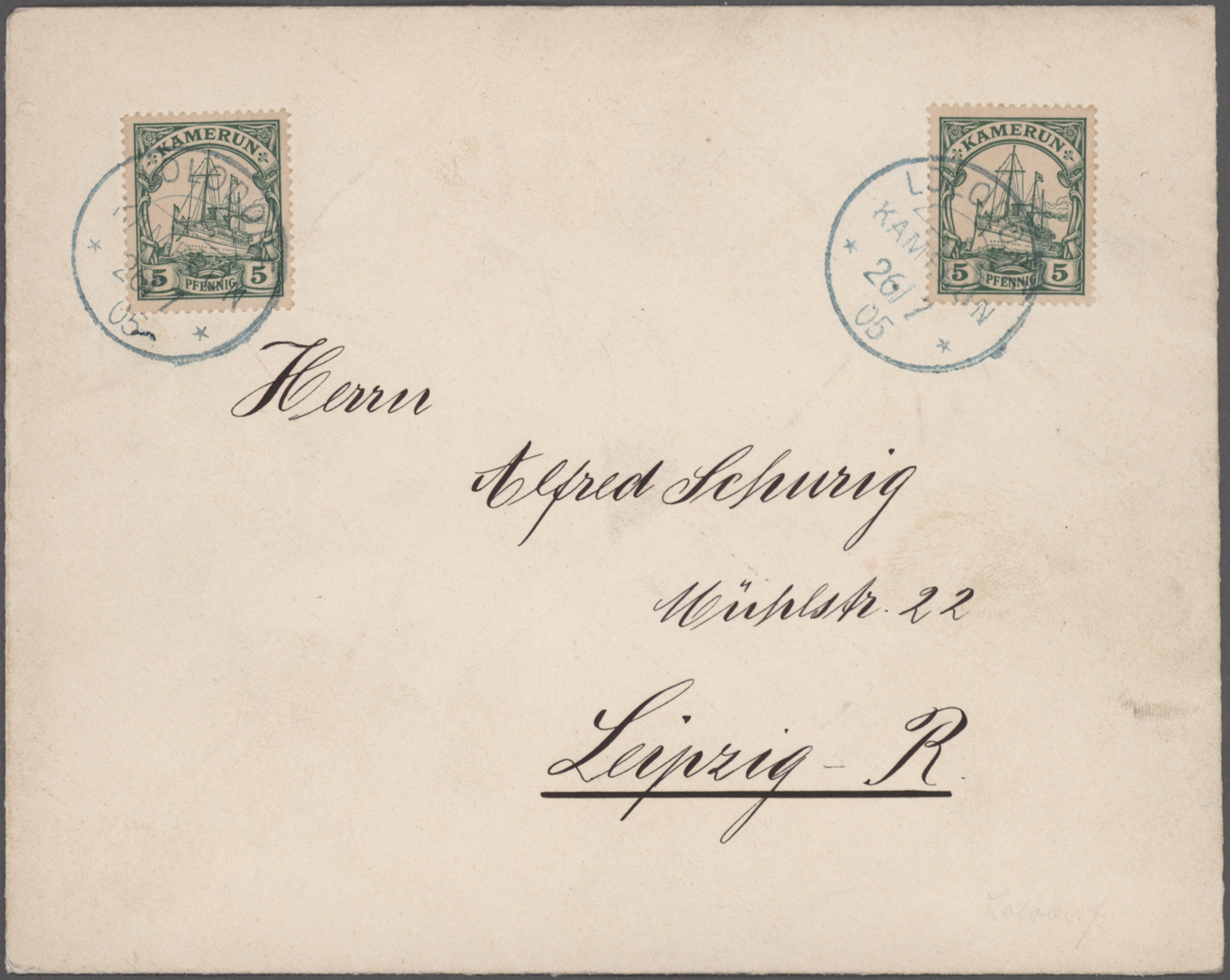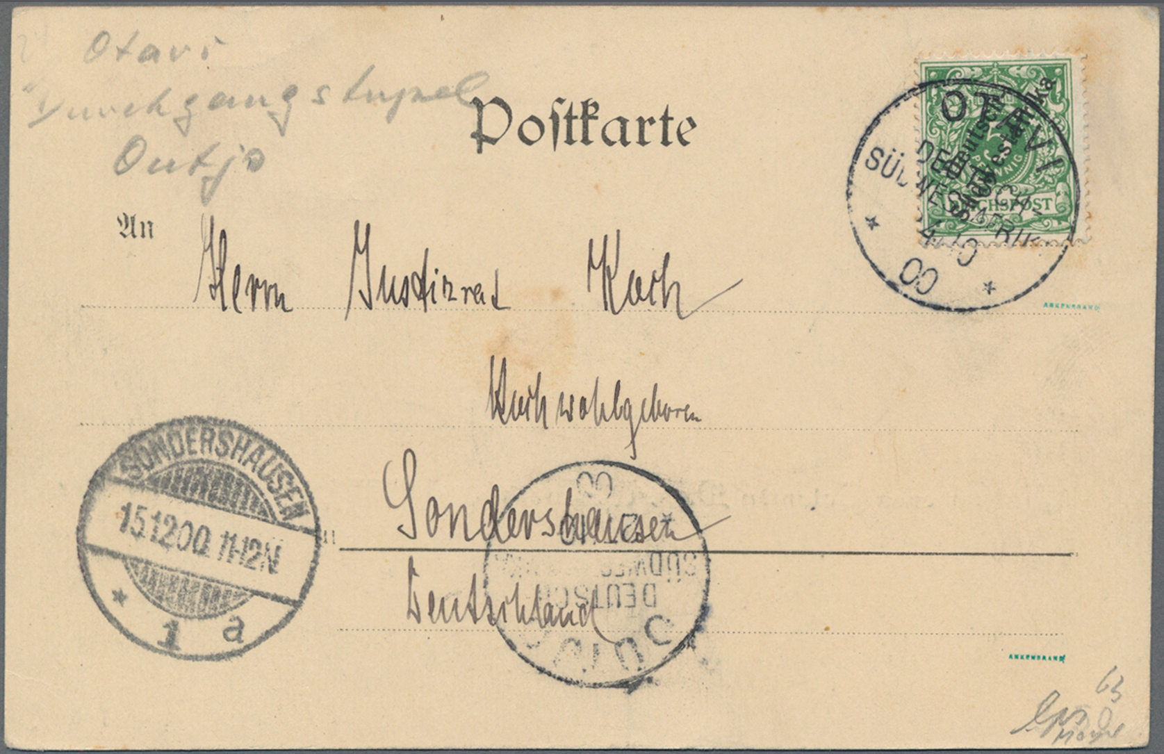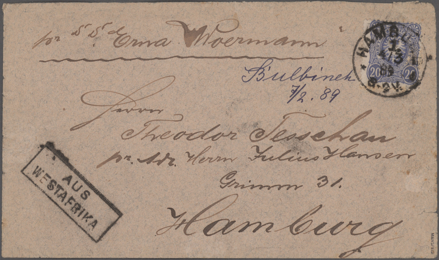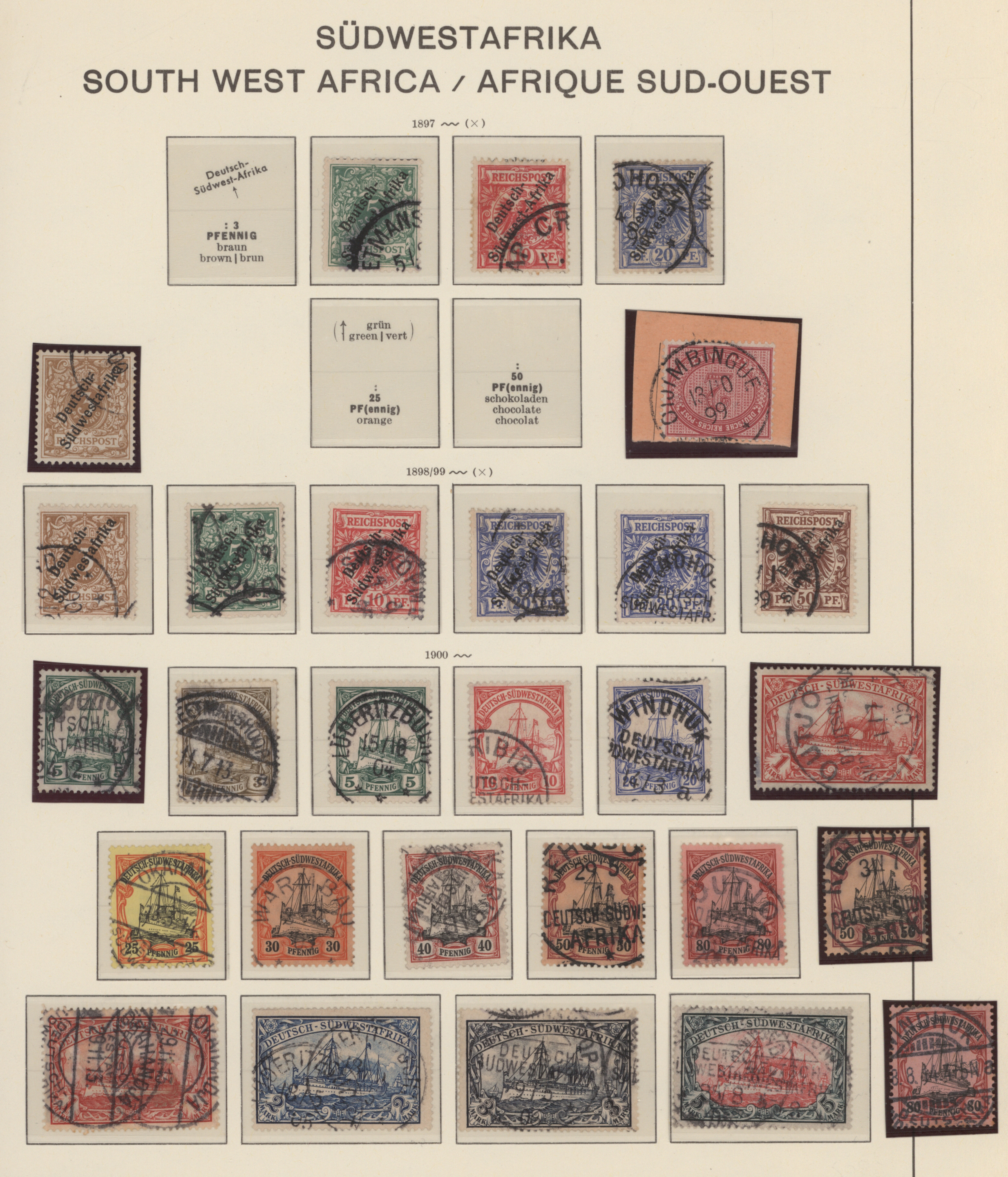 1898/1914, 22 Belege mit einigen Ansichtskarten, dabei Karte nach Kamerun und Brief mit 5 Pf (Paar) und 10 Pf Kaiseryacht mit Stempel "OTJOSONDDU D-SWA" nach Wiesbaden etc. Teils etwas unterschiedlich erhalten, jedoch interessantes Los.