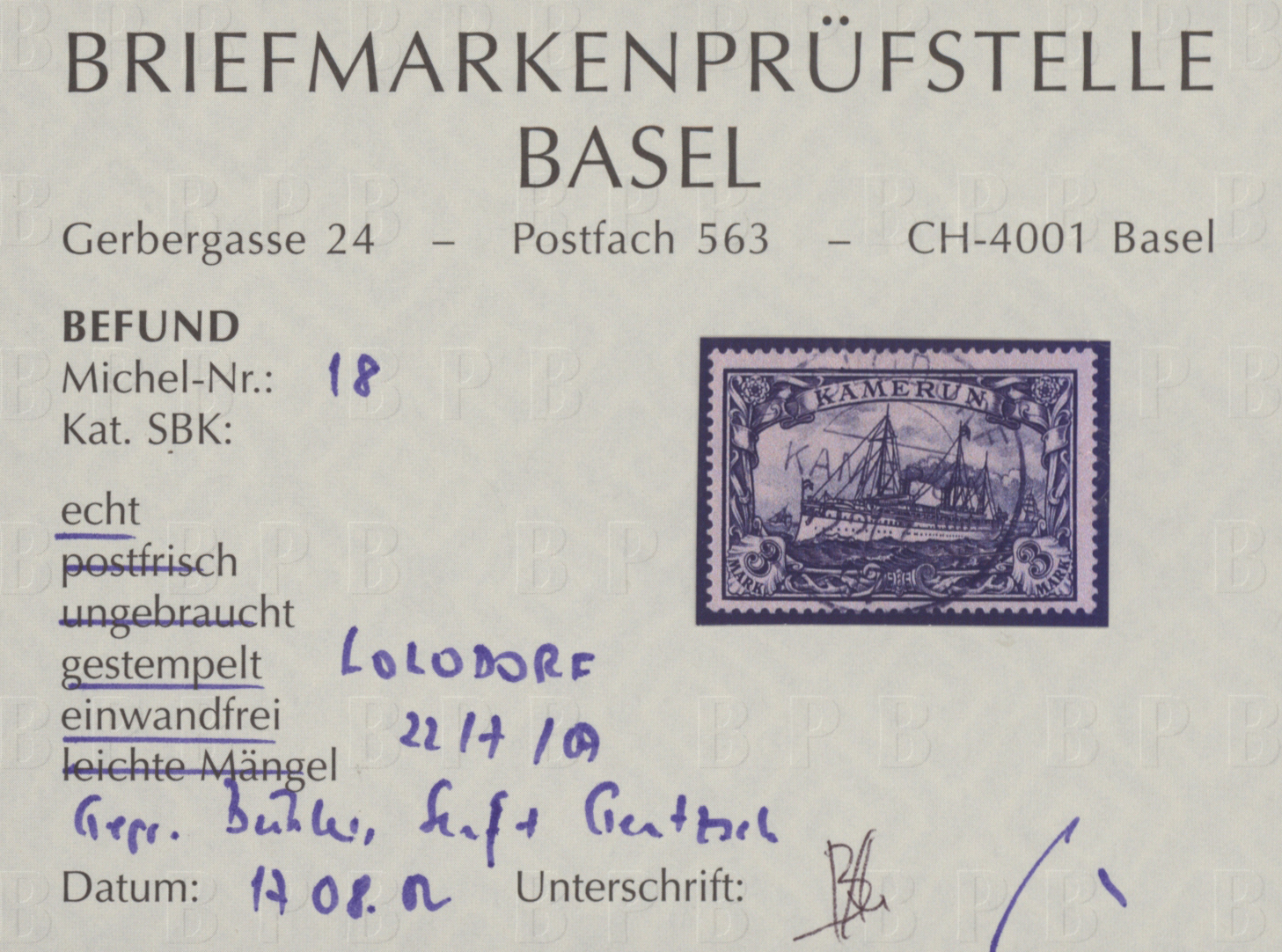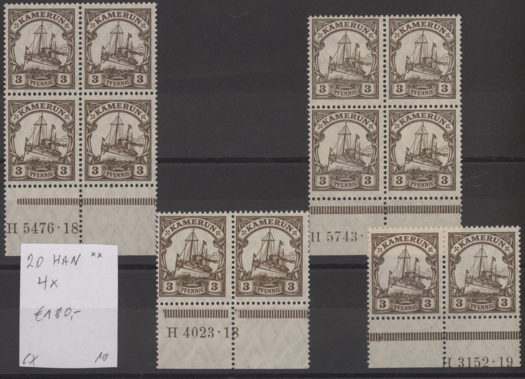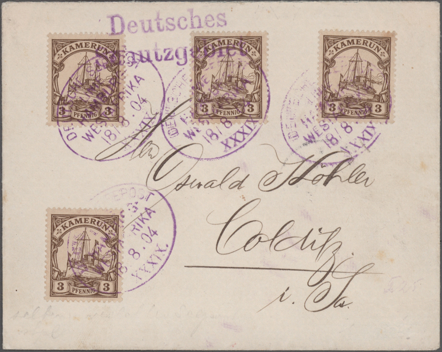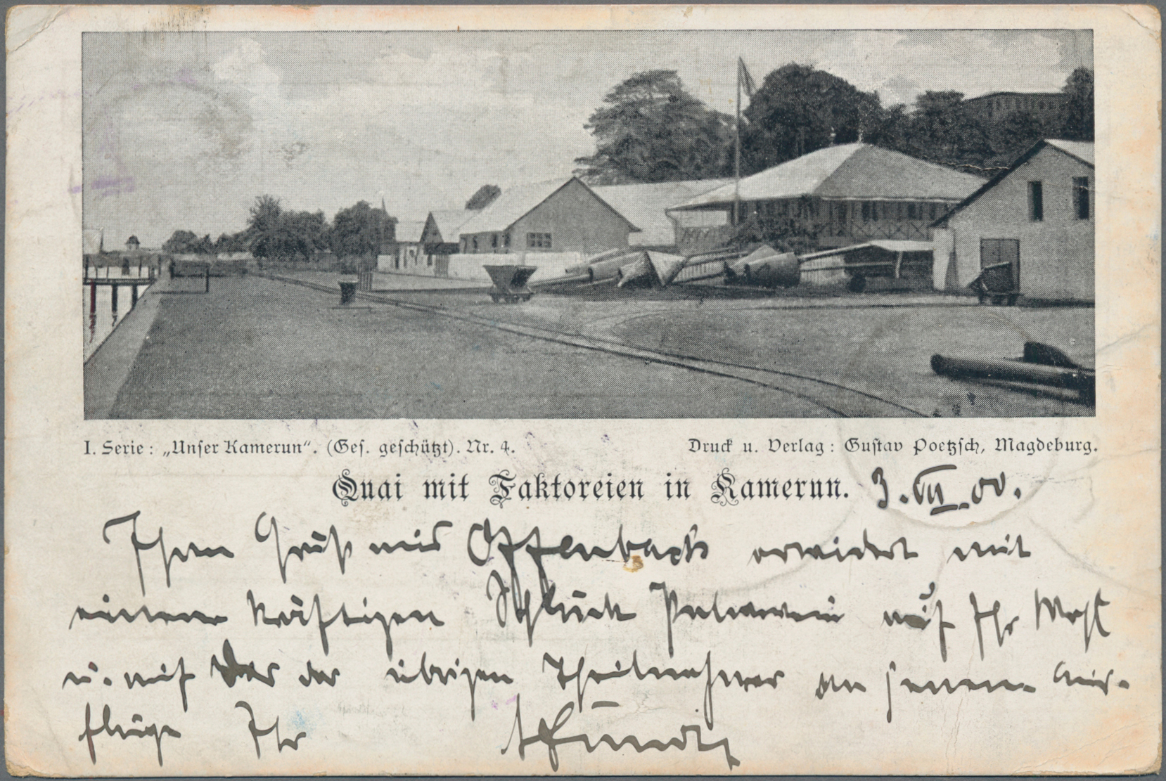 1898/1912, Partie von neun Briefen und Karten, dabei Kamerun MiNr. 3d im 14er-Block (!) auf R-Brief (Attest Jäschke-Lantelme BPP), Schiffpost, farbige Stempel, etc.