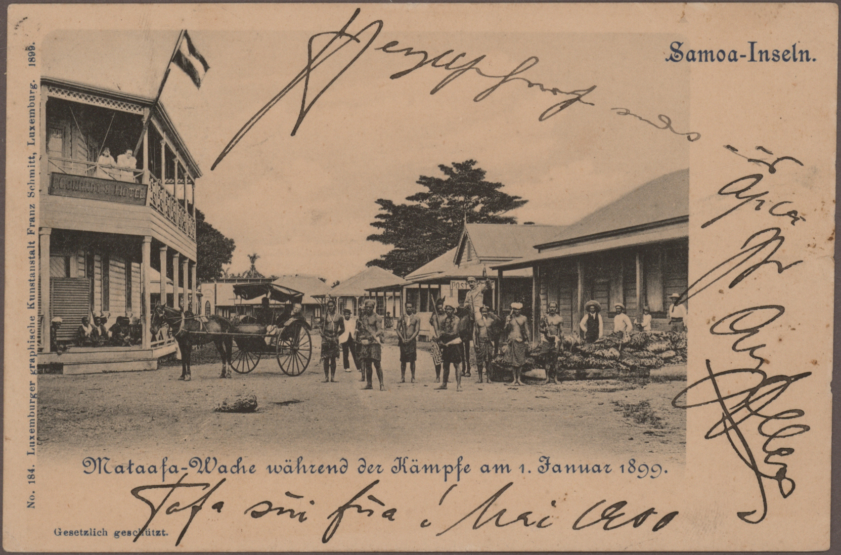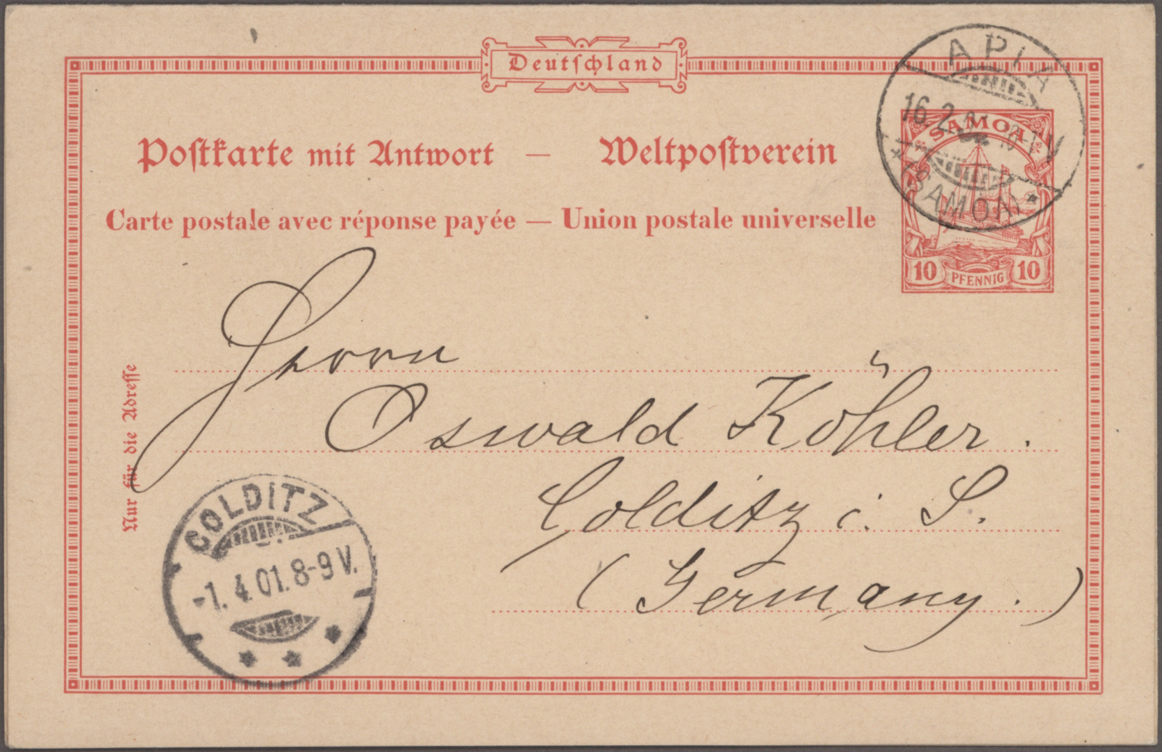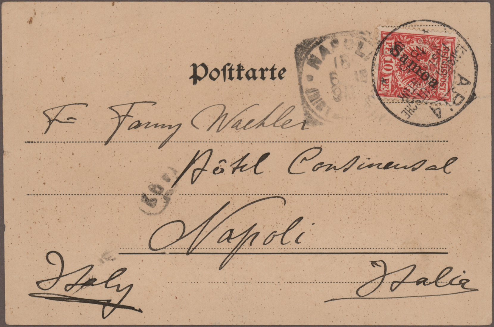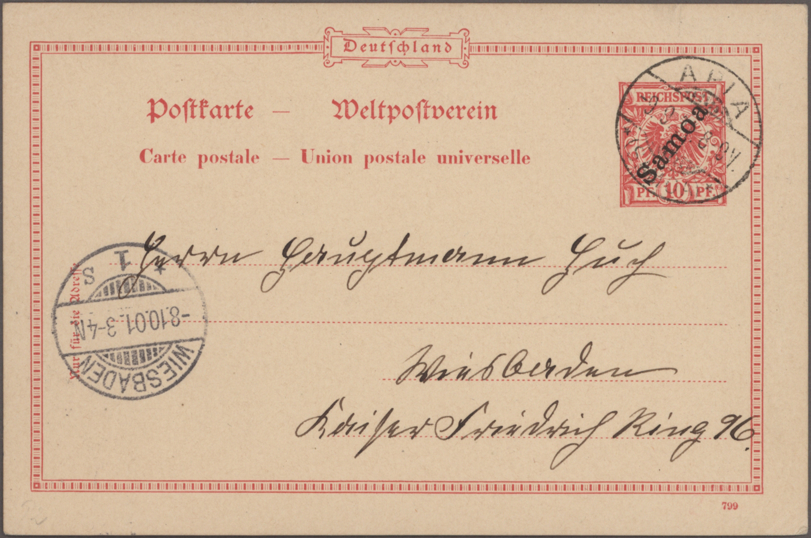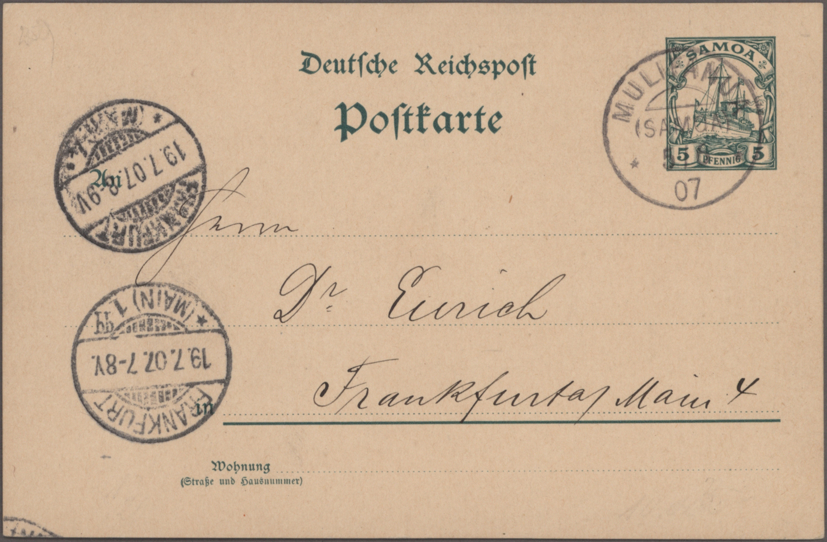 1889/1907, 11 interessante Belege, dabei MSP #3 und 60, Davis-Letter-Card (Adresse teils radiert), Einschreibebrief von Apia nach München und Ansichtskarten etc. Teils etwas unterschiedlich erhalten. Wir empfehlen Besichtigung.