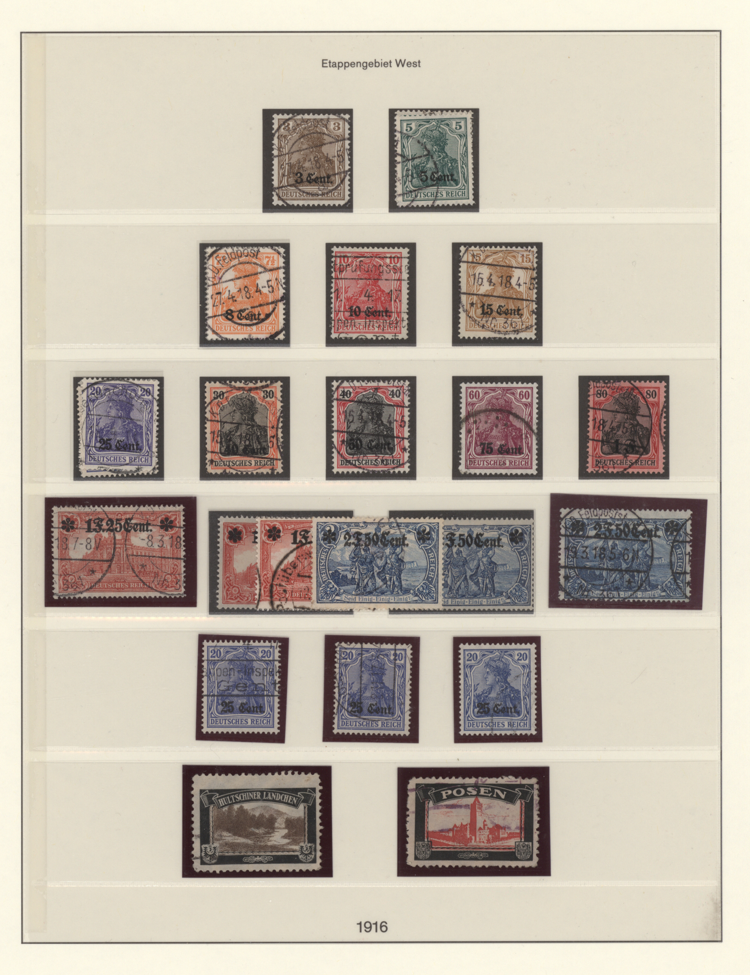 1914/1921, gestempelte und ungebrauchte Sammlung teils mehrfach auf Lindner-Vordruck zusammengetragen, dabei Belgien, Etappe West, Ober Ost, Polen, Rumänien, ferner noch Belgische Besatzungspost in Deutschland.